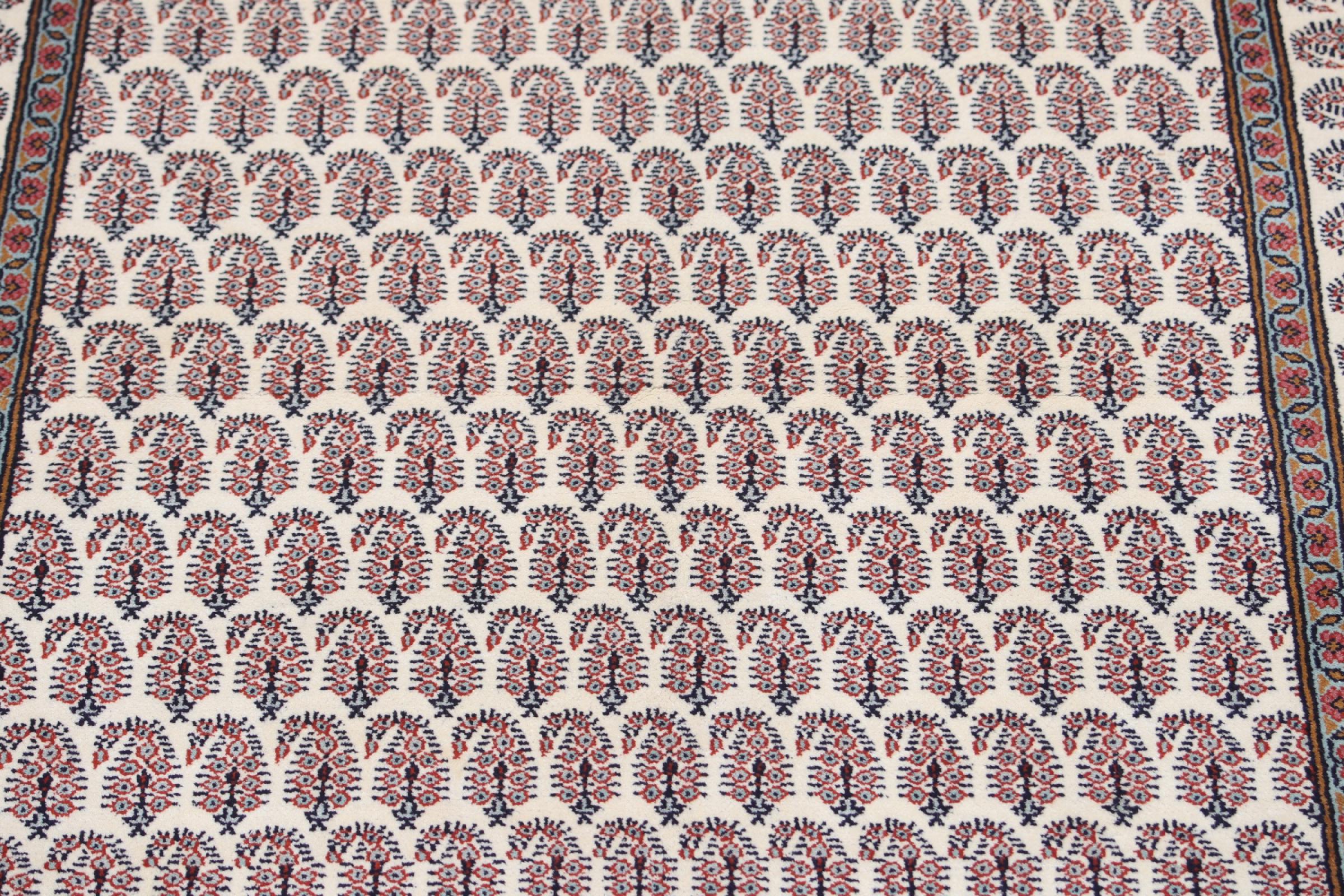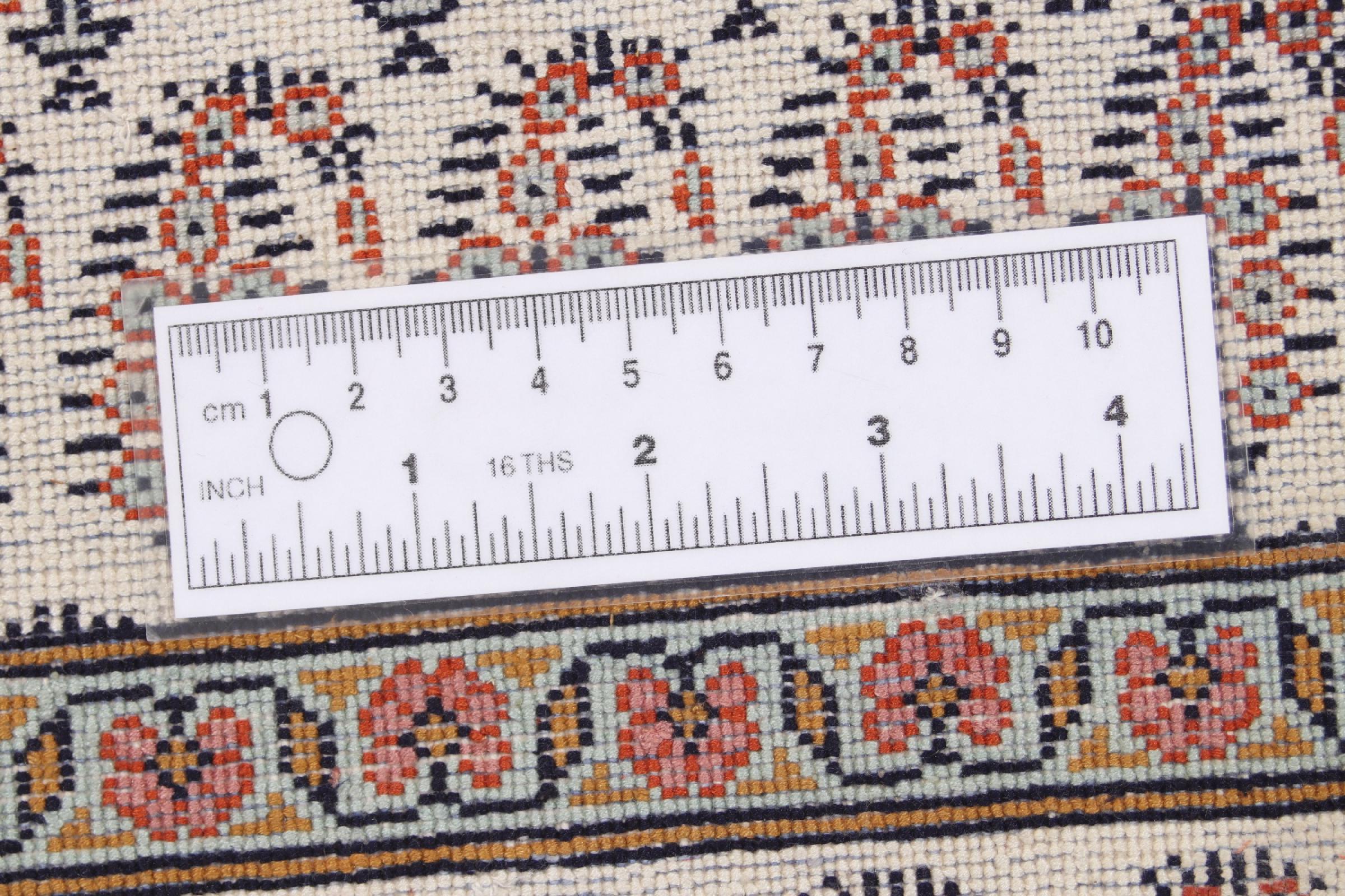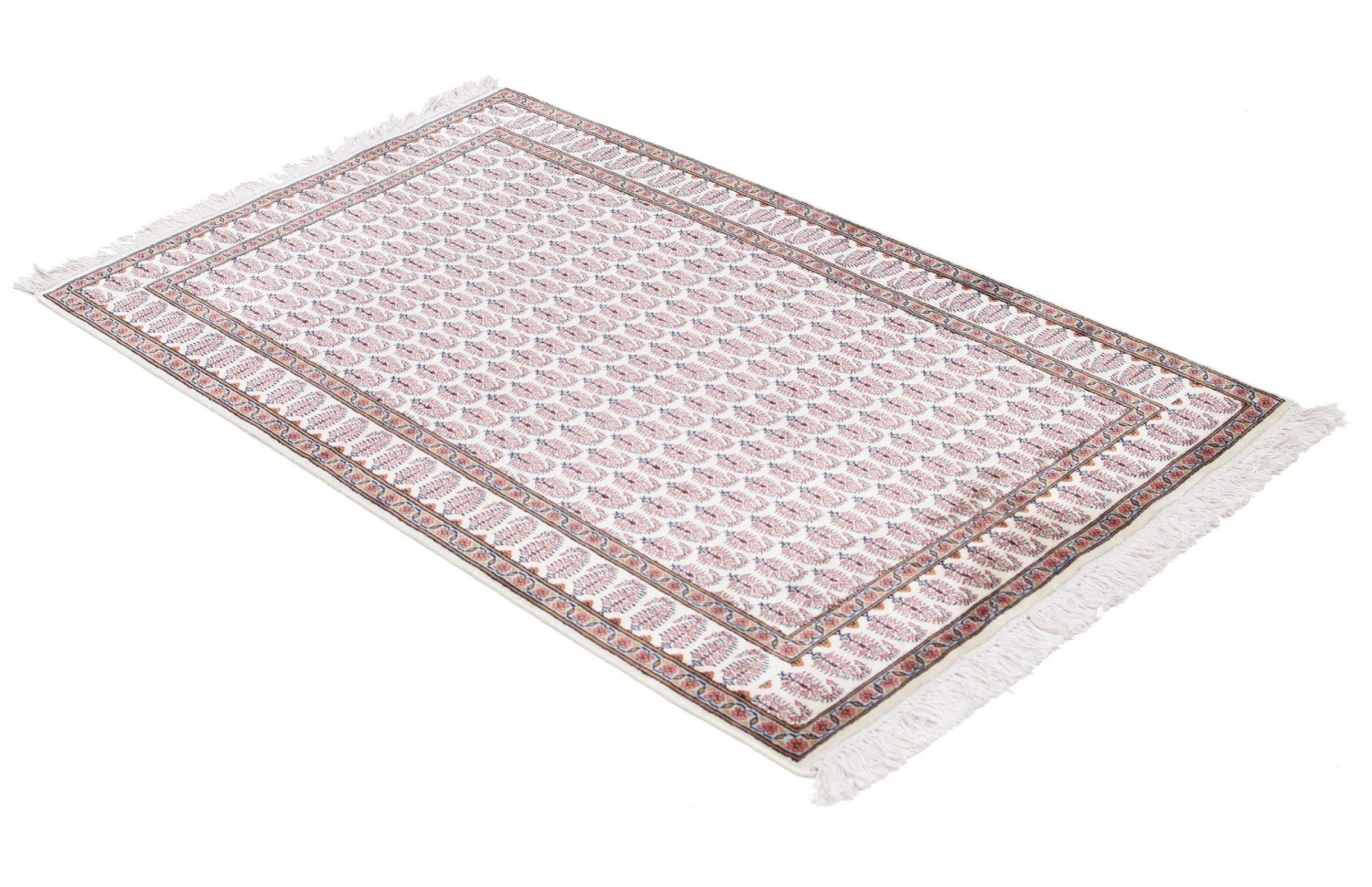 Dette håndknyttede silketæppe fra Kashmir afspejler de indiske tæppevæveres dygtighed. Ikke alene er det lavet af ren silke, men knudetætheden er så fin, at kun meget erfarne vævere kan skabe sådan et værk. Den fine natursilke er et fascinerende highlight. Den er ikke bare særlig blød at røre ved, men lader også farverne skinne i en lang række facetter. Afhængigt af lysindfaldet kommer der helt nye detaljer og farver til syne, som vil blive ved med at imponere i mange år fremover. Man kan se på et tæppe som dette i timevis og glemme alt om tid - en oplevelse, der ikke kan indfanges på et foto.