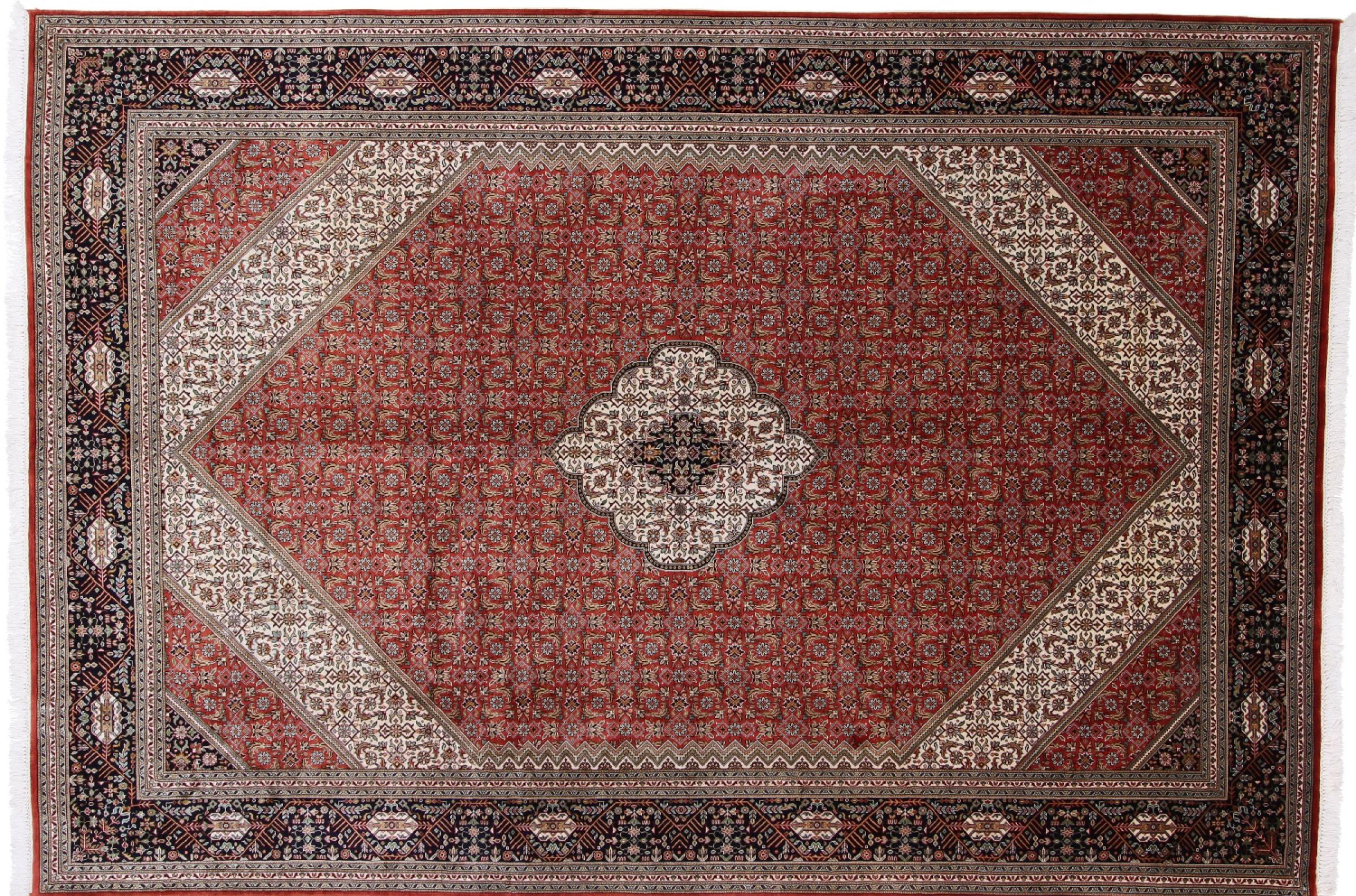 Tæppe-nr.: 173470056847 Størrelse: 293x202 cm Tykkelse: ca. 5 mm Knuder: 700 000 / m² Forarbejdelse: Knyttet i hånden Luv: Silke Kæde: Bomuld Oprindelse: Indien Alder: Ny Vægt: ca. 15 kg Antal på lager: Unik - Kun 1 tilbage på lager