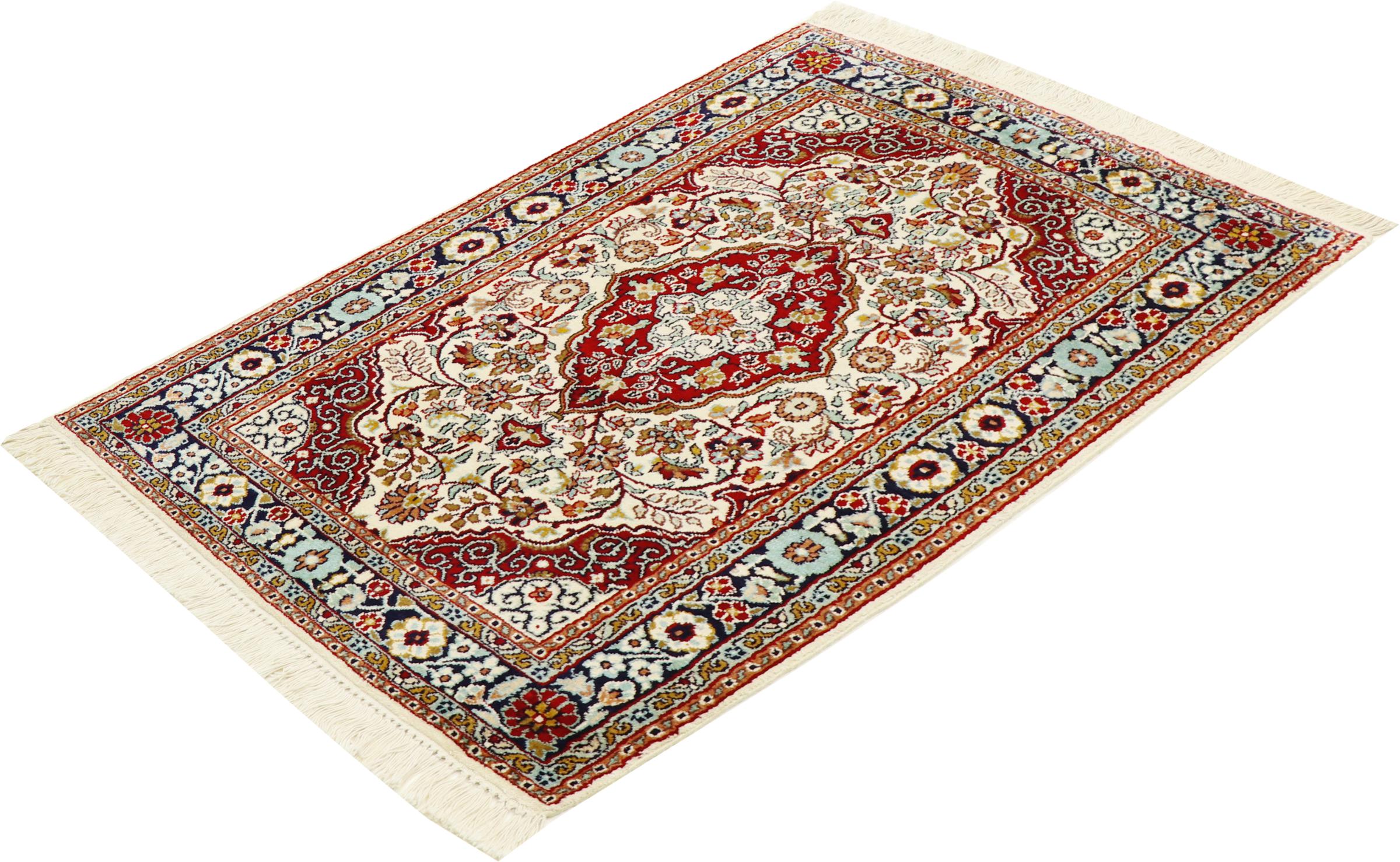 Tæppe-nr.: 303459002840976 Størrelse: 121x78 cm Tykkelse: ca. 5 mm Knuder: 440 000 - 490 000 / m² Forarbejdelse: Knyttet i hånden Luv: Silke Kæde: Bomuld Oprindelse: Indien Alder: Ny Vægt: ca. 3 kg Antal på lager: Unik - Kun 1 tilbage på lager