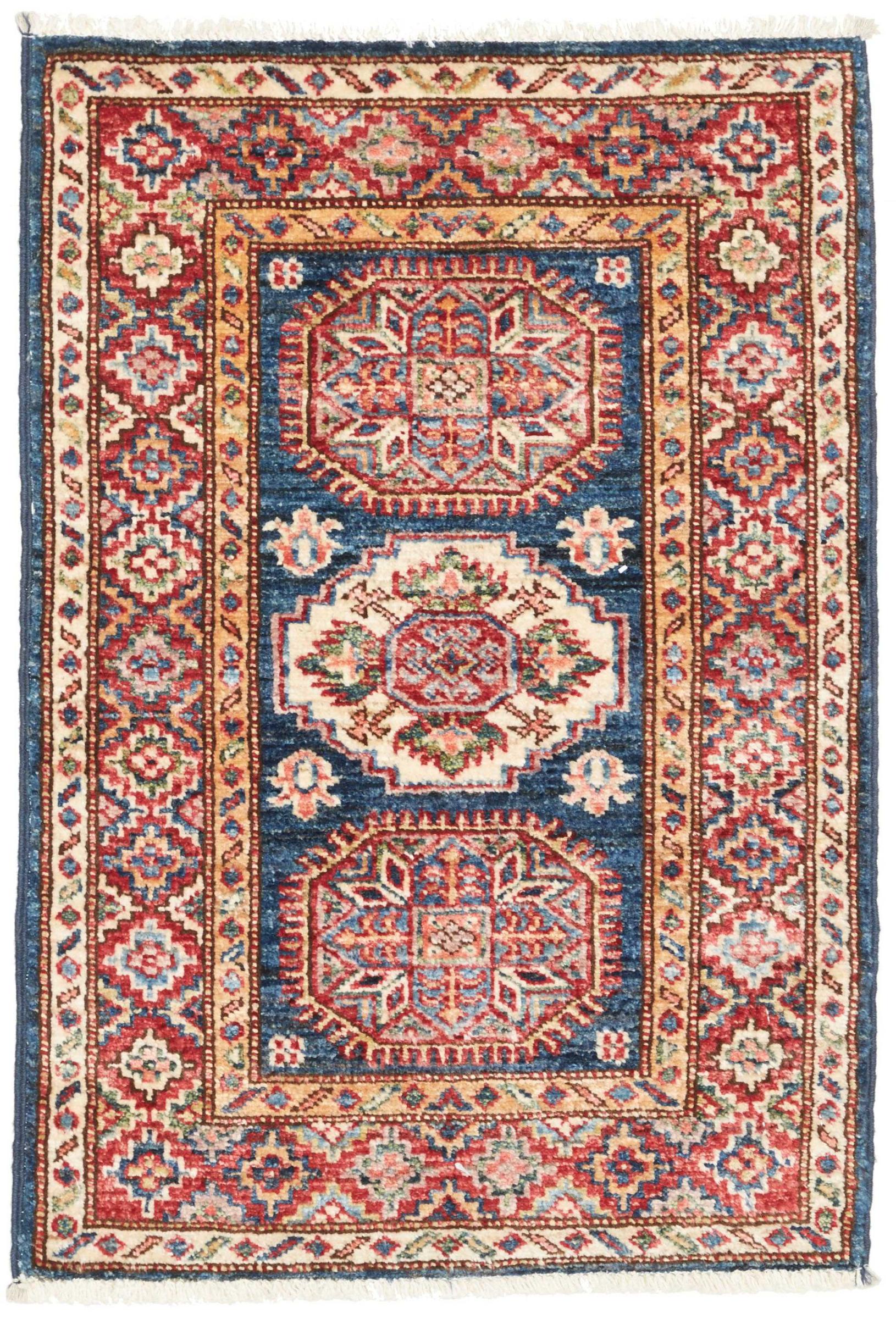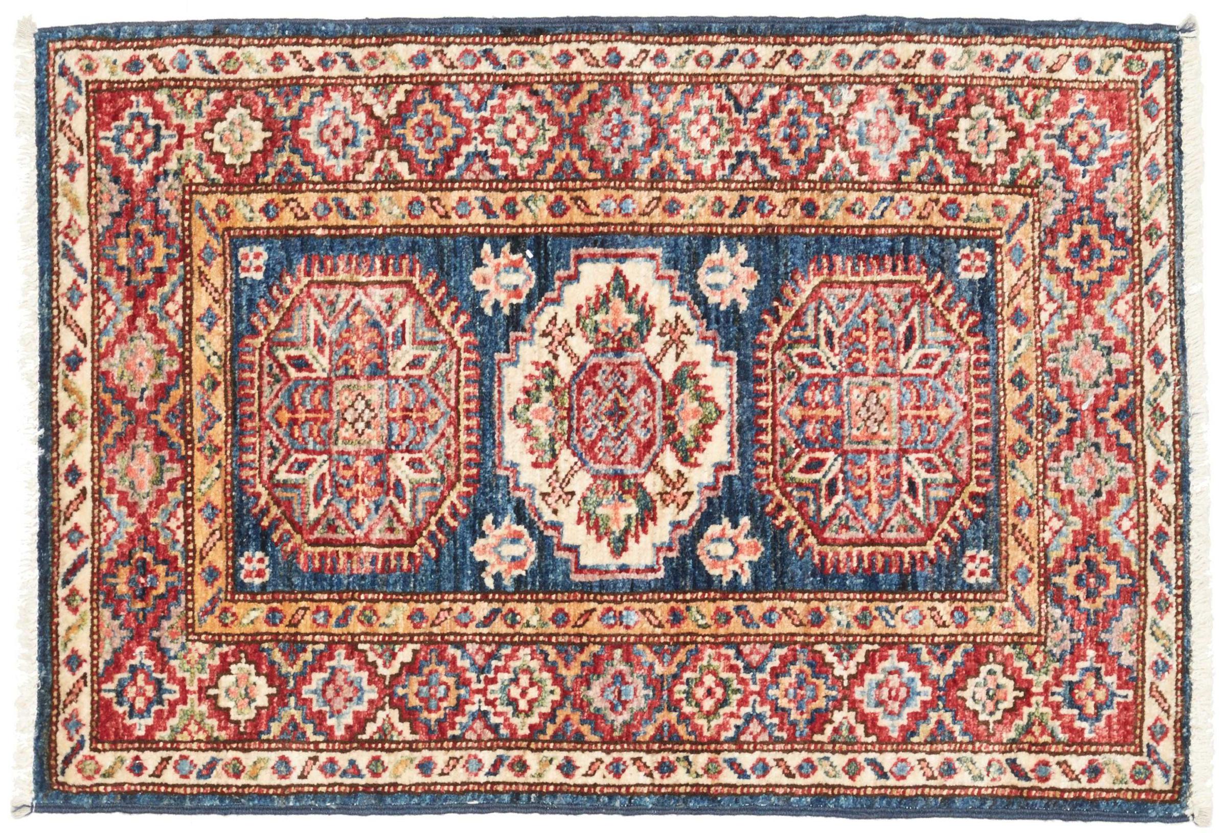 Dette håndknyttede Kazak er håndknyttet i stil med kaukasiske tæpper og imponerer med sin høje robusthed og levende farver. Det afspejler således kulturen i Kaukasus i en smuk komposition. En kultur, der i århundreder har mestret kunsten at væve tæpper og præsenterer den for omverdenen med charmerende enkle former i imponerende levende farver.