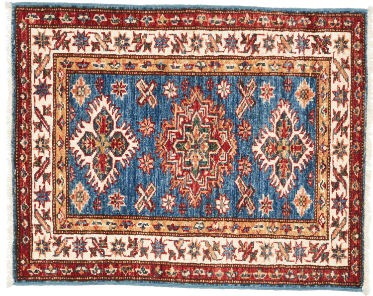 Dette håndknyttede Kazak er håndknyttet i stil med kaukasiske tæpper og imponerer med sin høje robusthed og levende farver. Det afspejler således kulturen i Kaukasus i en smuk komposition. En kultur, der i århundreder har mestret kunsten at væve tæpper og præsenterer den for omverdenen med charmerende enkle former i imponerende levende farver.