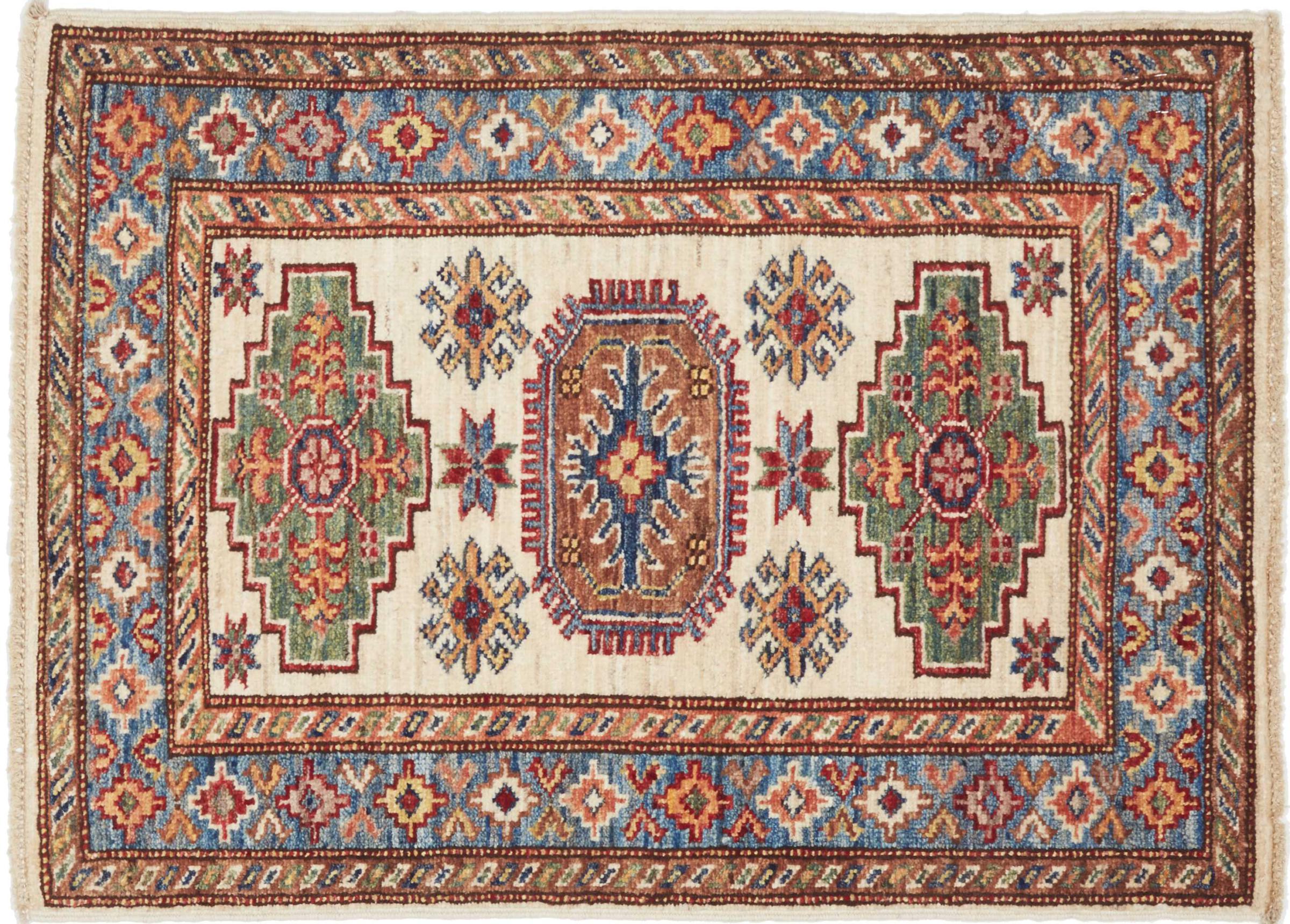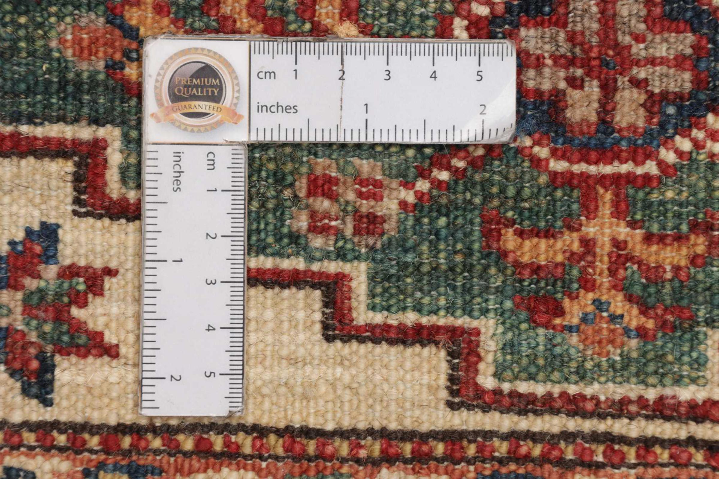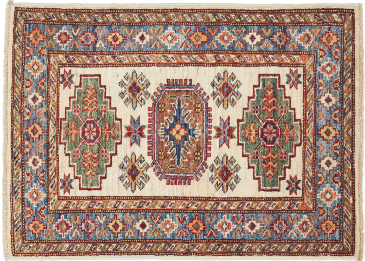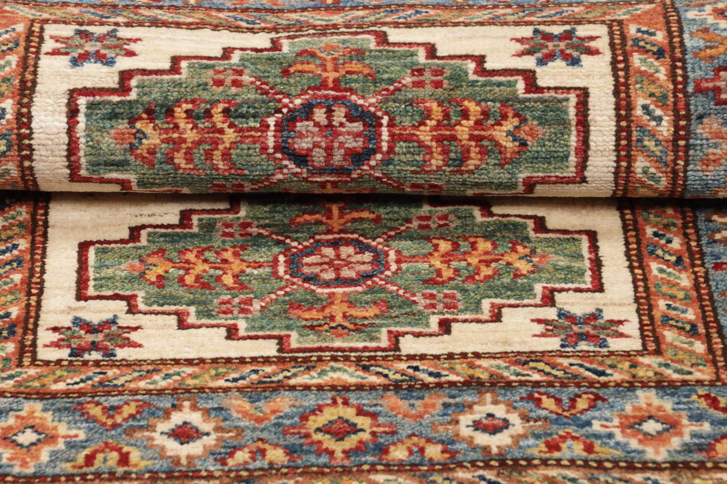 Dette håndknyttede Kazak er håndknyttet i stil med kaukasiske tæpper og imponerer med sin høje robusthed og levende farver. Det afspejler således kulturen i Kaukasus i en smuk komposition. En kultur, der i århundreder har mestret kunsten at væve tæpper og præsenterer den for omverdenen med charmerende enkle former i imponerende levende farver.