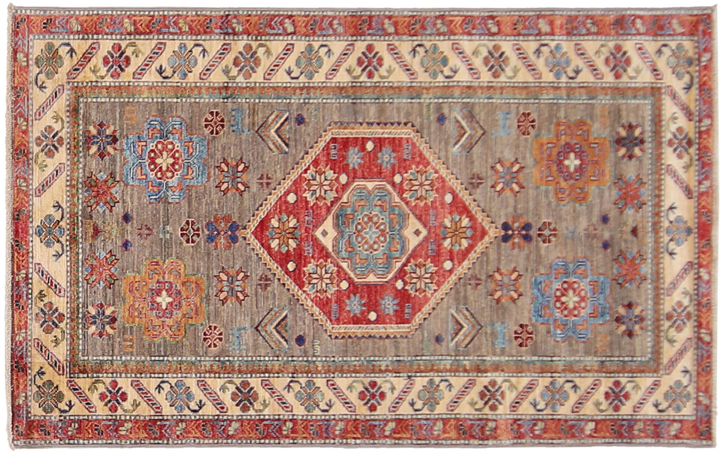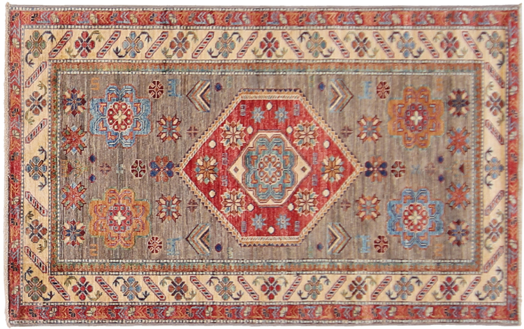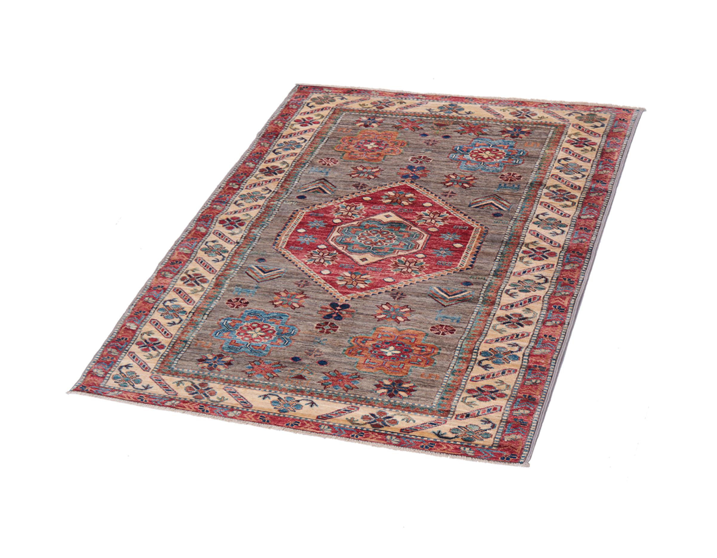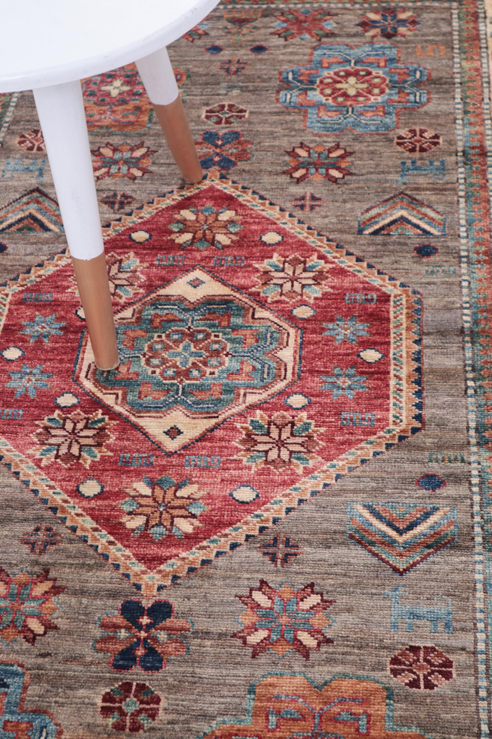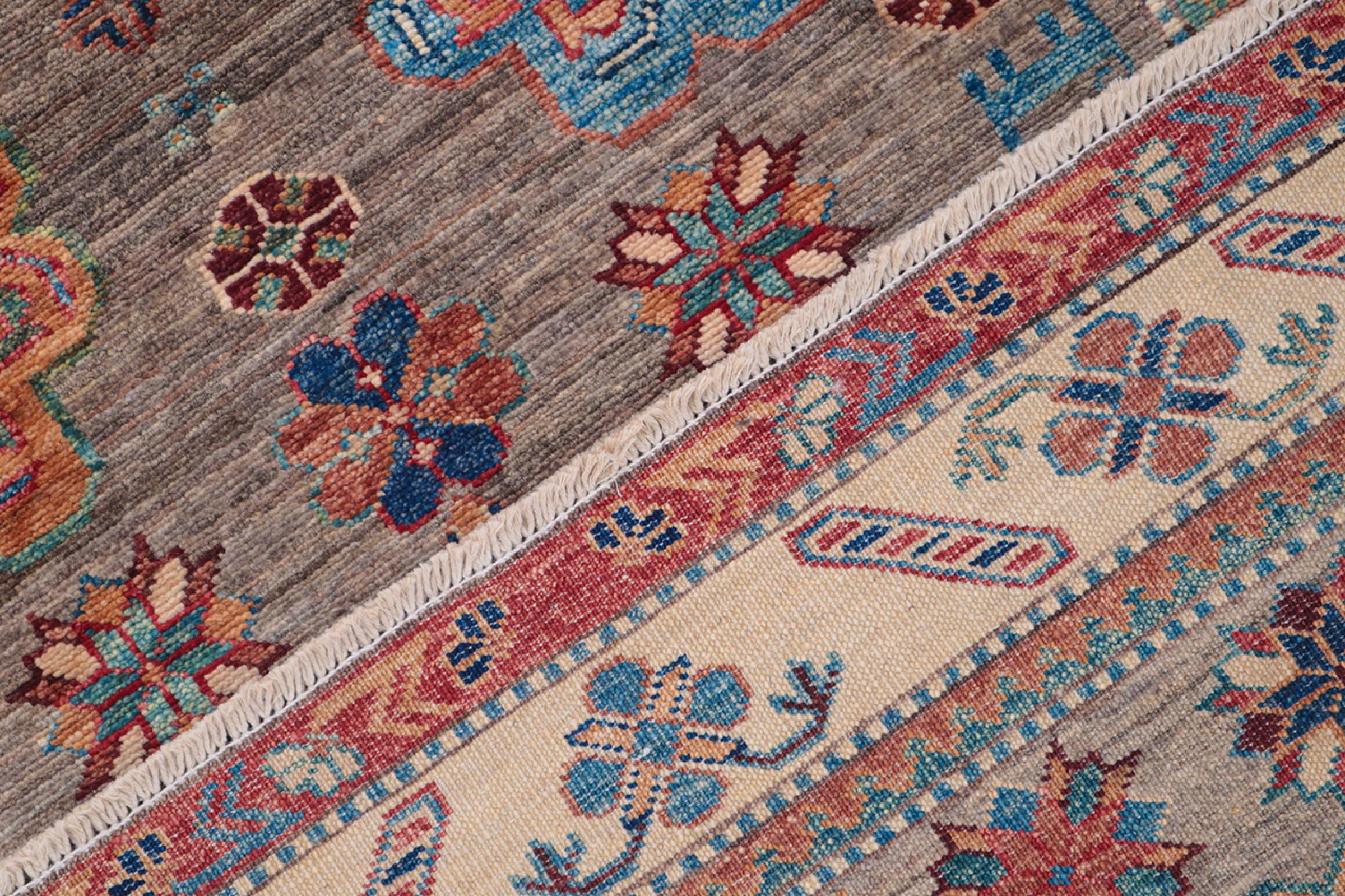 Dette håndknyttede Kazak er håndknyttet i stil med kaukasiske tæpper og imponerer med sin høje robusthed og levende farver. Det afspejler således kulturen i Kaukasus i en smuk komposition. En kultur, der i århundreder har mestret kunsten at væve tæpper og præsenterer den for omverdenen med charmerende enkle former i imponerende levende farver.