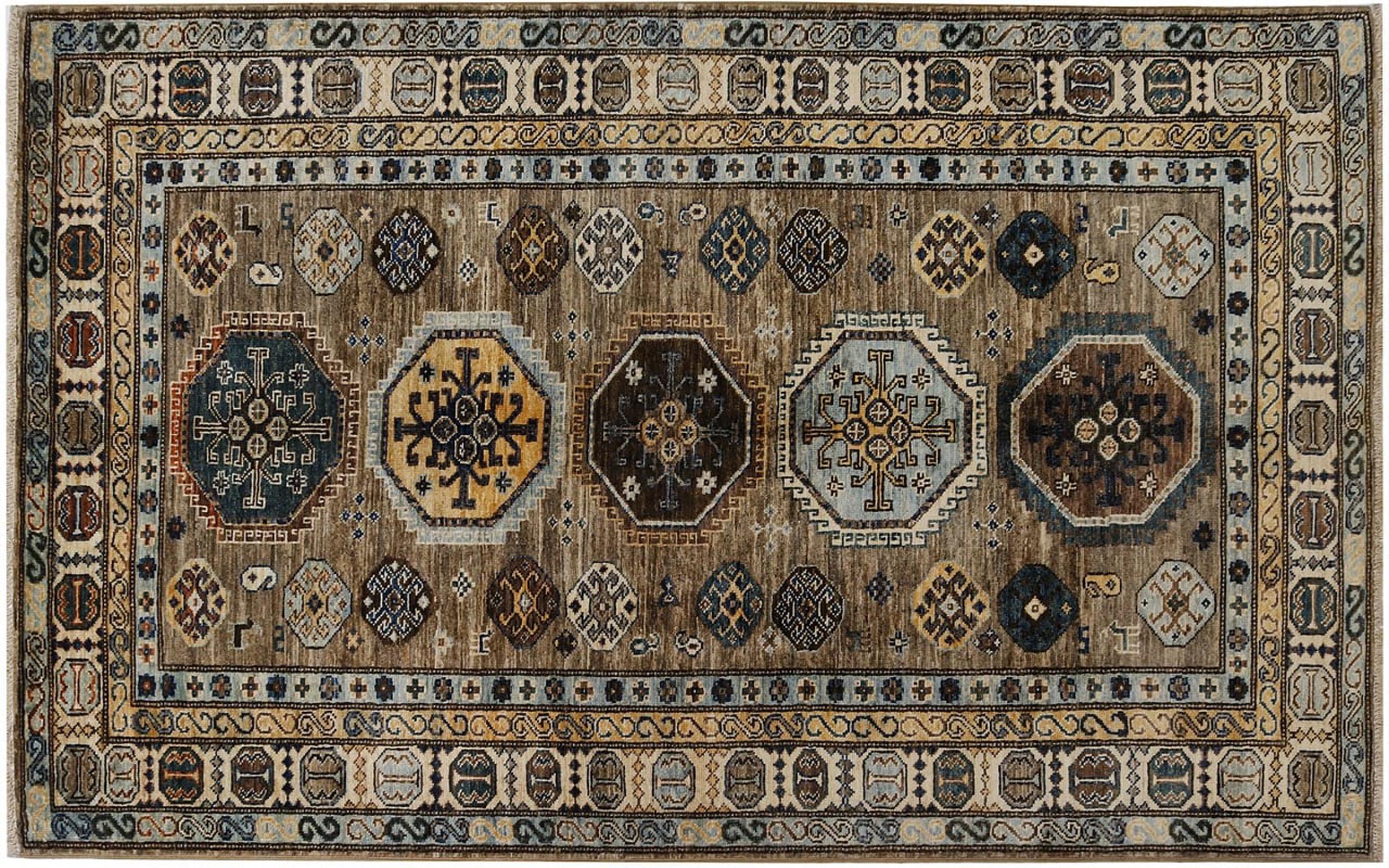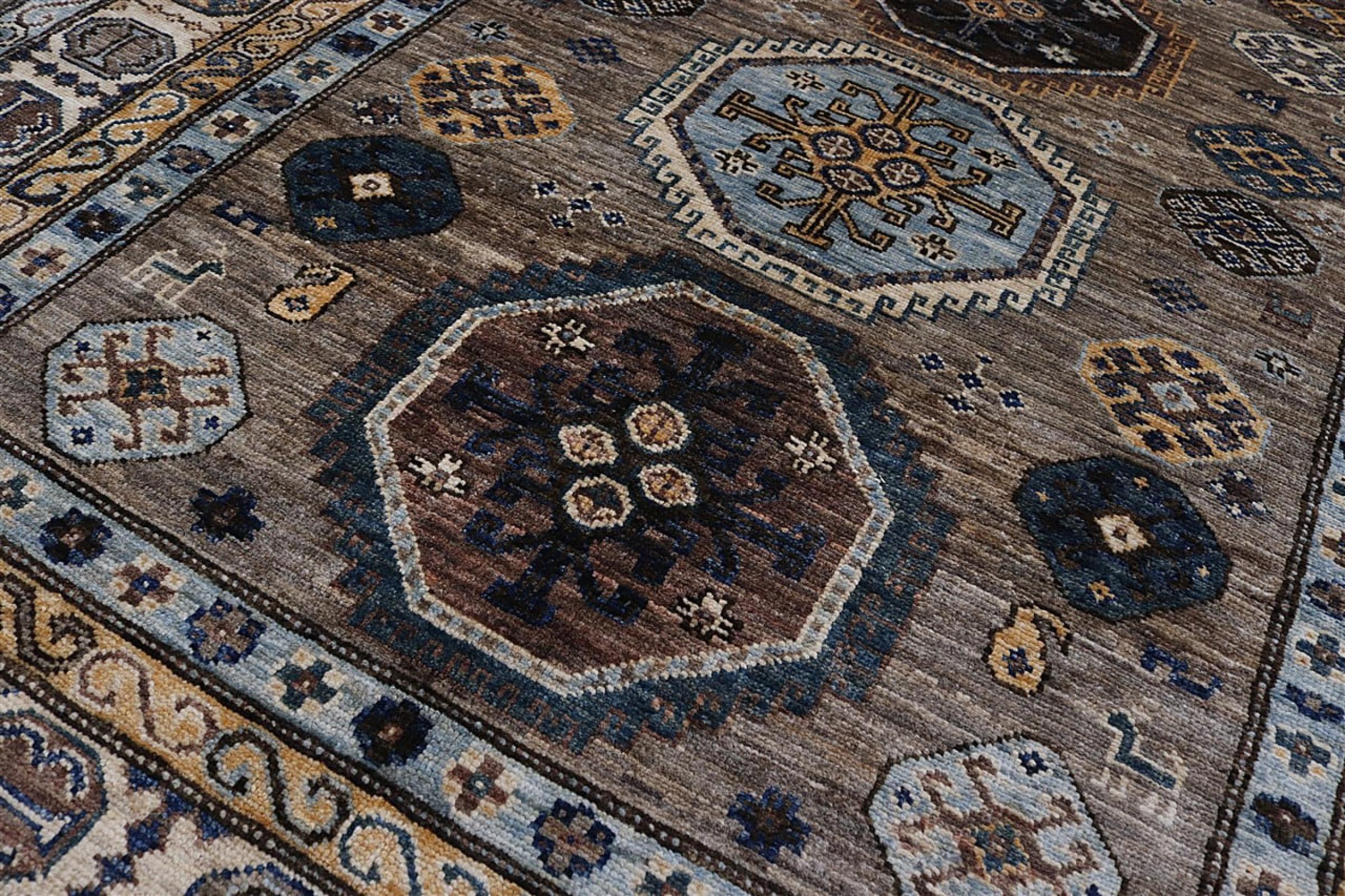 Dette håndknyttede Kazak er håndknyttet i stil med kaukasiske tæpper og imponerer med sin høje robusthed og levende farver. Det afspejler således kulturen i Kaukasus i en smuk komposition. En kultur, der i århundreder har mestret kunsten at væve tæpper og præsenterer den for omverdenen med charmerende enkle former i imponerende levende farver.