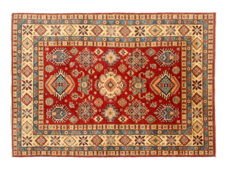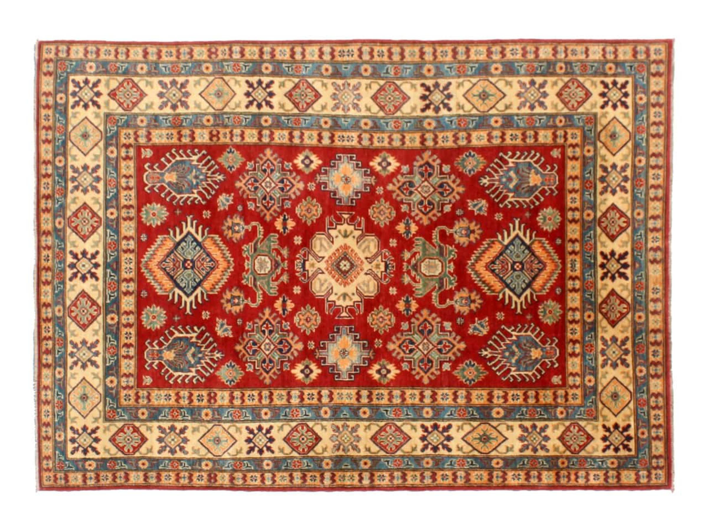 Dette håndknyttede Kazak er håndknyttet i stil med kaukasiske tæpper og imponerer med sin høje robusthed og levende farver. Det afspejler således kulturen i Kaukasus i en smuk komposition. En kultur, der i århundreder har mestret kunsten at væve tæpper og præsenterer den for omverdenen med charmerende enkle former i imponerende levende farver.