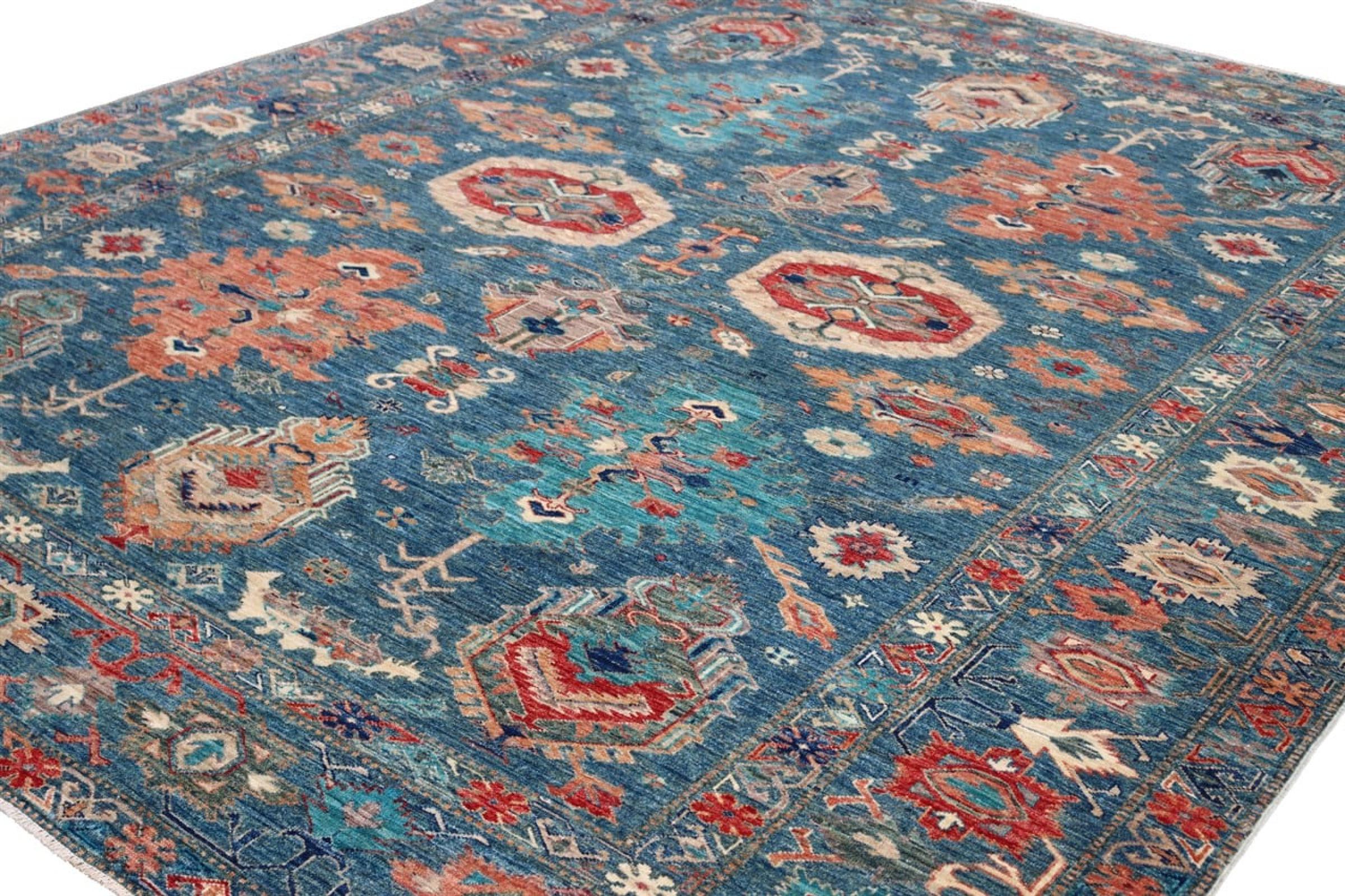 Dette håndknyttede Kazak er håndknyttet i stil med kaukasiske tæpper og imponerer med sin høje robusthed og levende farver. Det afspejler således kulturen i Kaukasus i en smuk komposition. En kultur, der i århundreder har mestret kunsten at væve tæpper og præsenterer den for omverdenen med charmerende enkle former i imponerende levende farver.