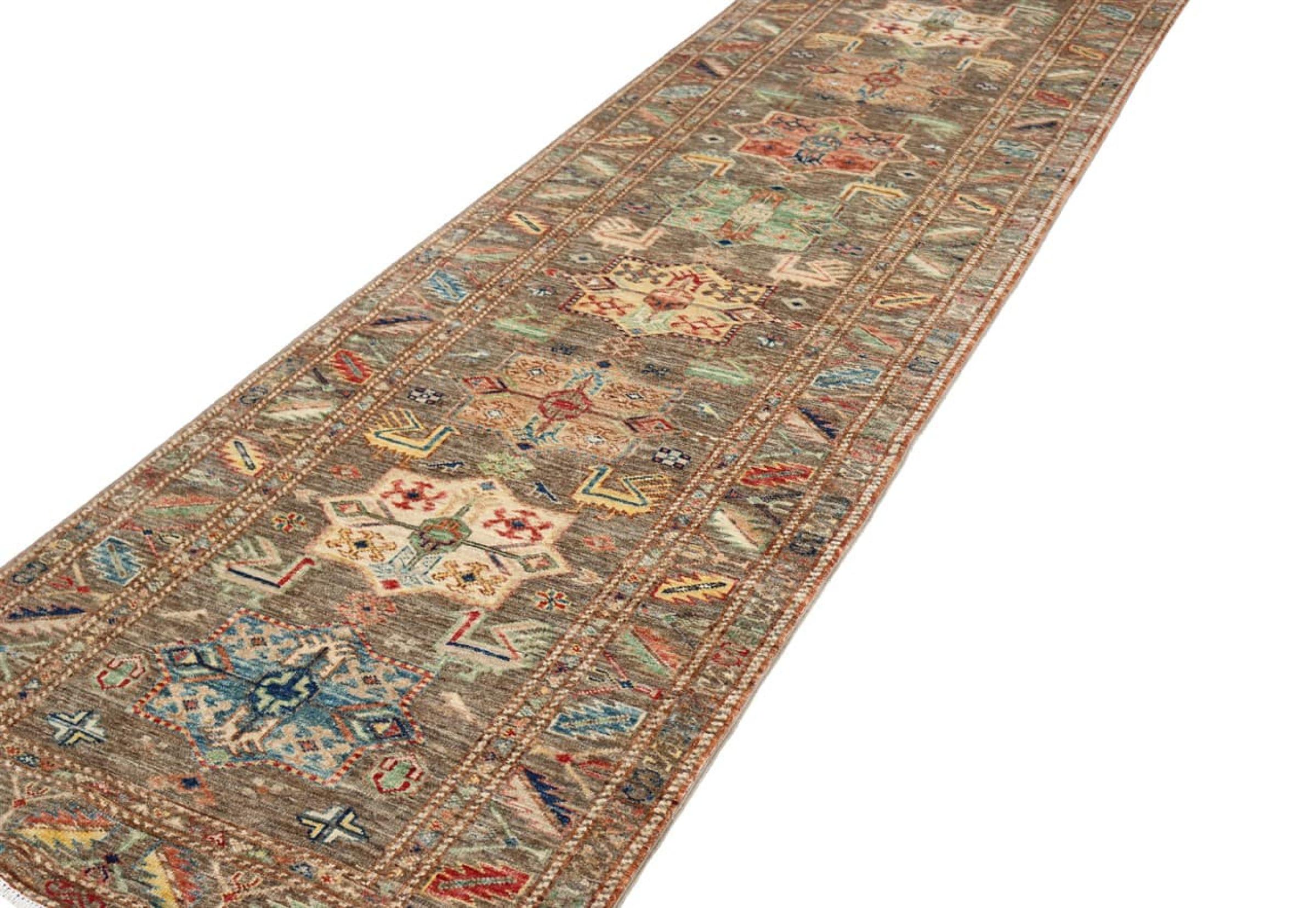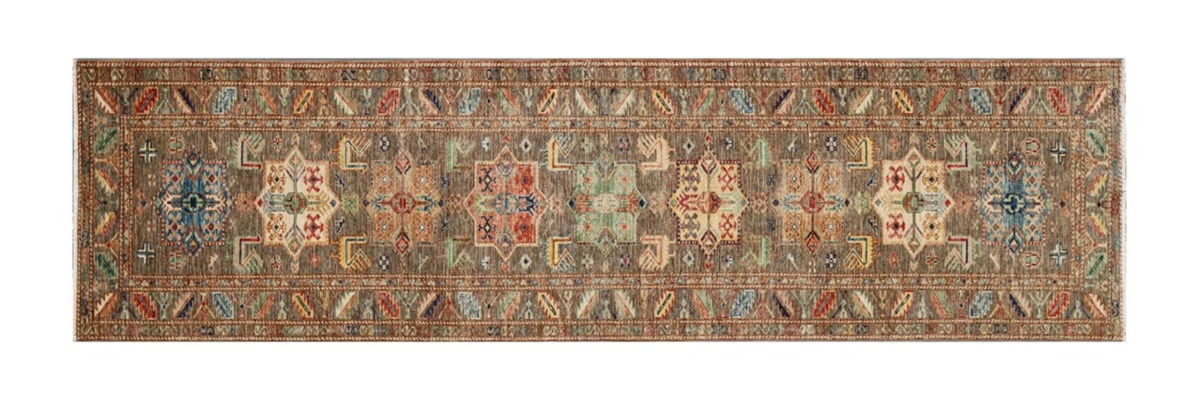 Tæppe-nr.: 299306002902385 Størrelse: 304x82 cm Tykkelse: ca. 5 mm Knuder: 120 000 - 150 000 / m² Forarbejdelse: Knyttet i hånden Luv: Håndspunden uld Kæde: Bomuld Oprindelse: Afghanistan Alder: Ny Vægt: ca. 6 kg Antal på lager: Unik - Kun 1 tilbage på lager