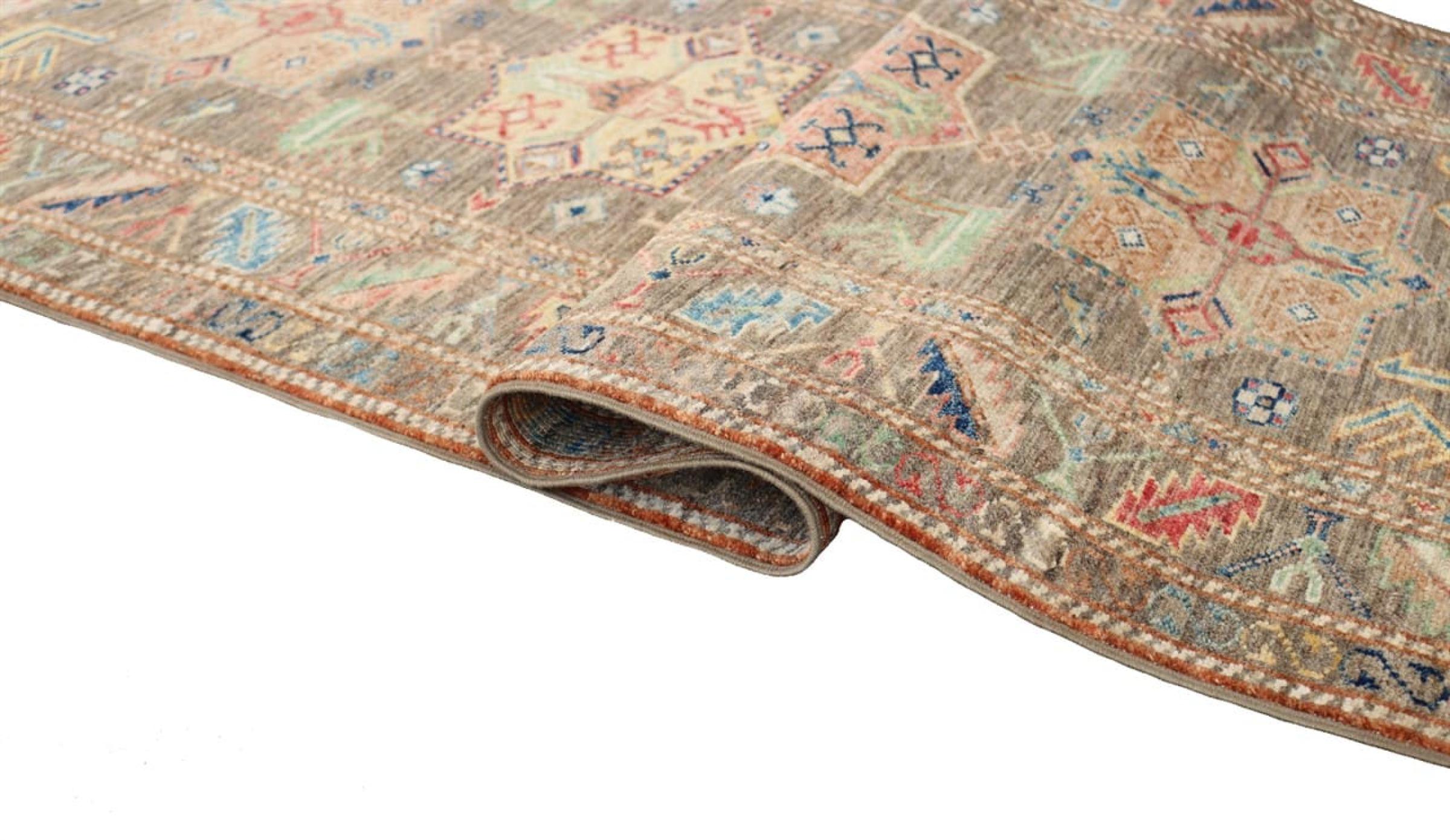Dette håndknyttede Kazak er håndknyttet i stil med kaukasiske tæpper og imponerer med sin høje robusthed og levende farver. Det afspejler således kulturen i Kaukasus i en smuk komposition. En kultur, der i århundreder har mestret kunsten at væve tæpper og præsenterer den for omverdenen med charmerende enkle former i imponerende levende farver.