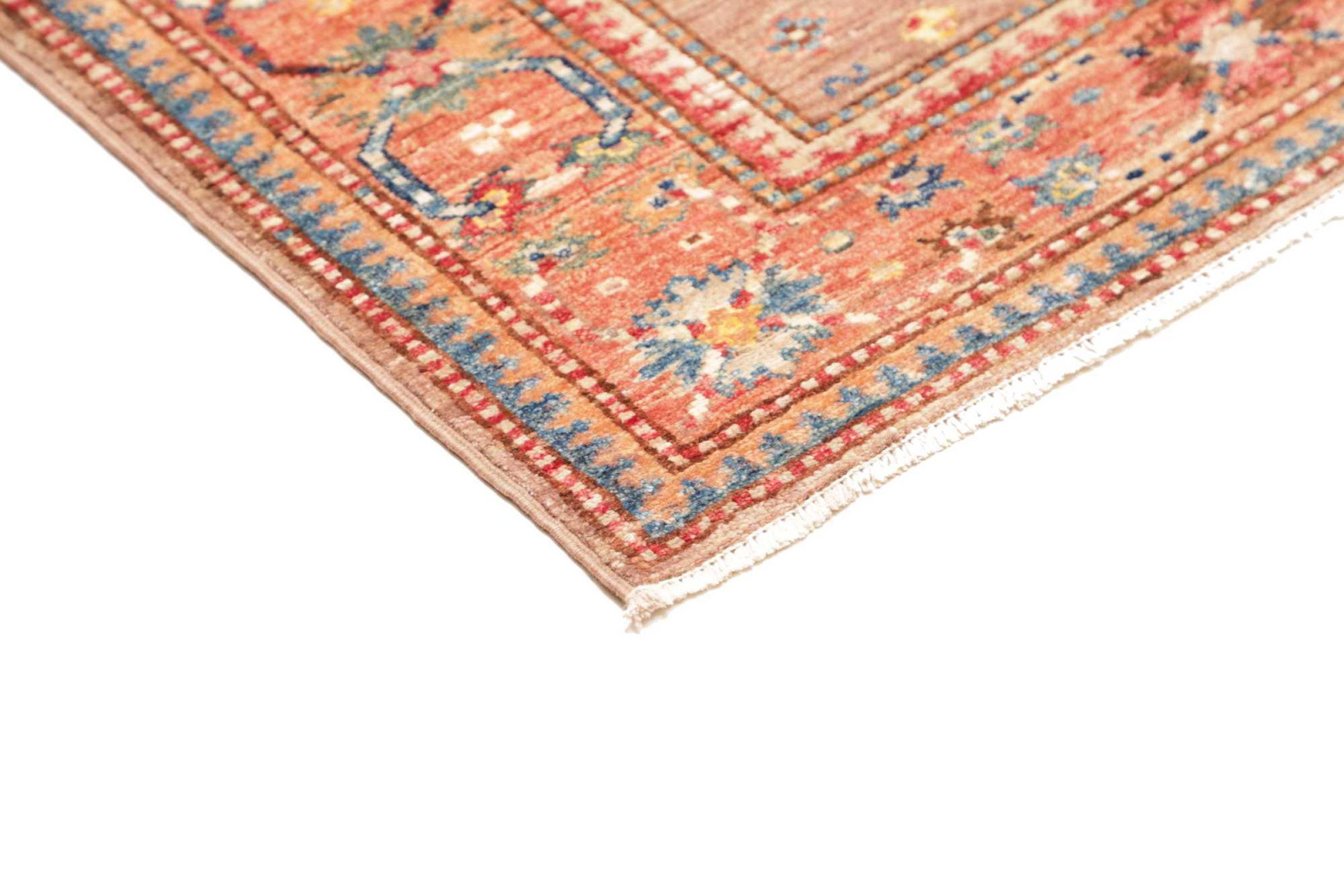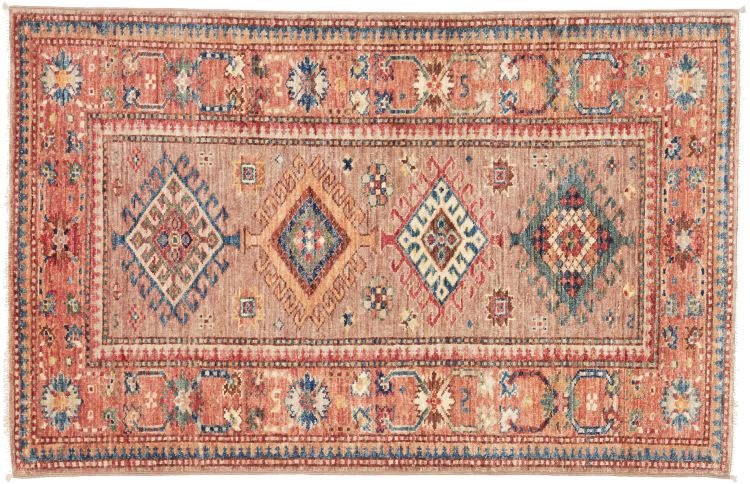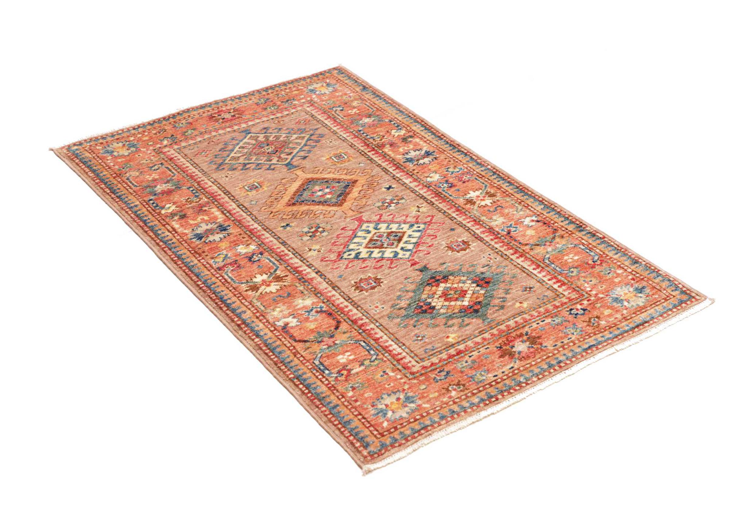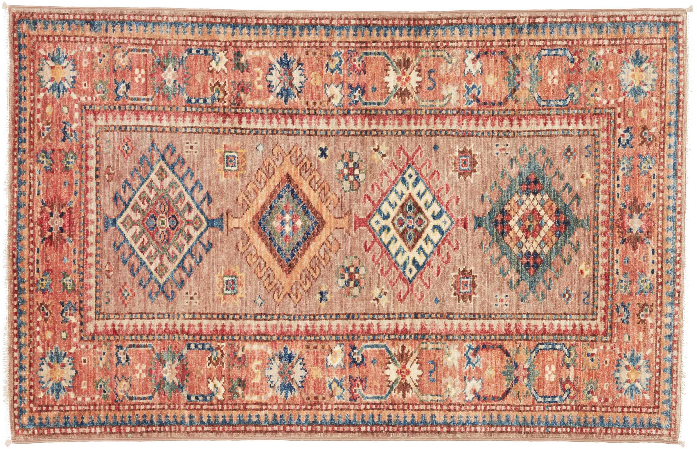 Dette håndknyttede Kazak er håndknyttet i stil med kaukasiske tæpper og imponerer med sin høje robusthed og levende farver. Det afspejler således kulturen i Kaukasus i en smuk komposition. En kultur, der i århundreder har mestret kunsten at væve tæpper og præsenterer den for omverdenen med charmerende enkle former i imponerende levende farver.
