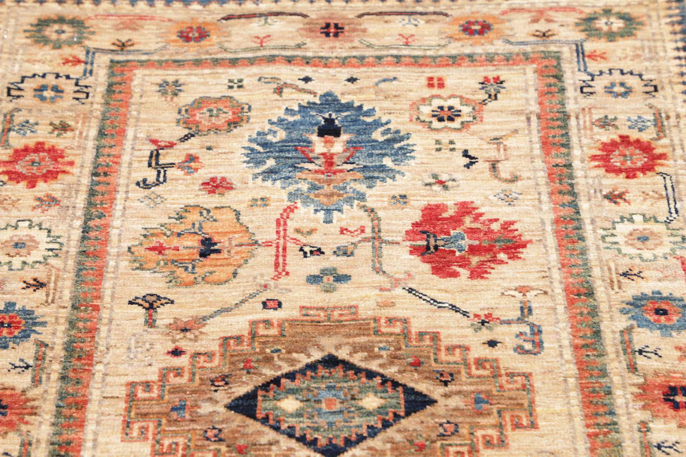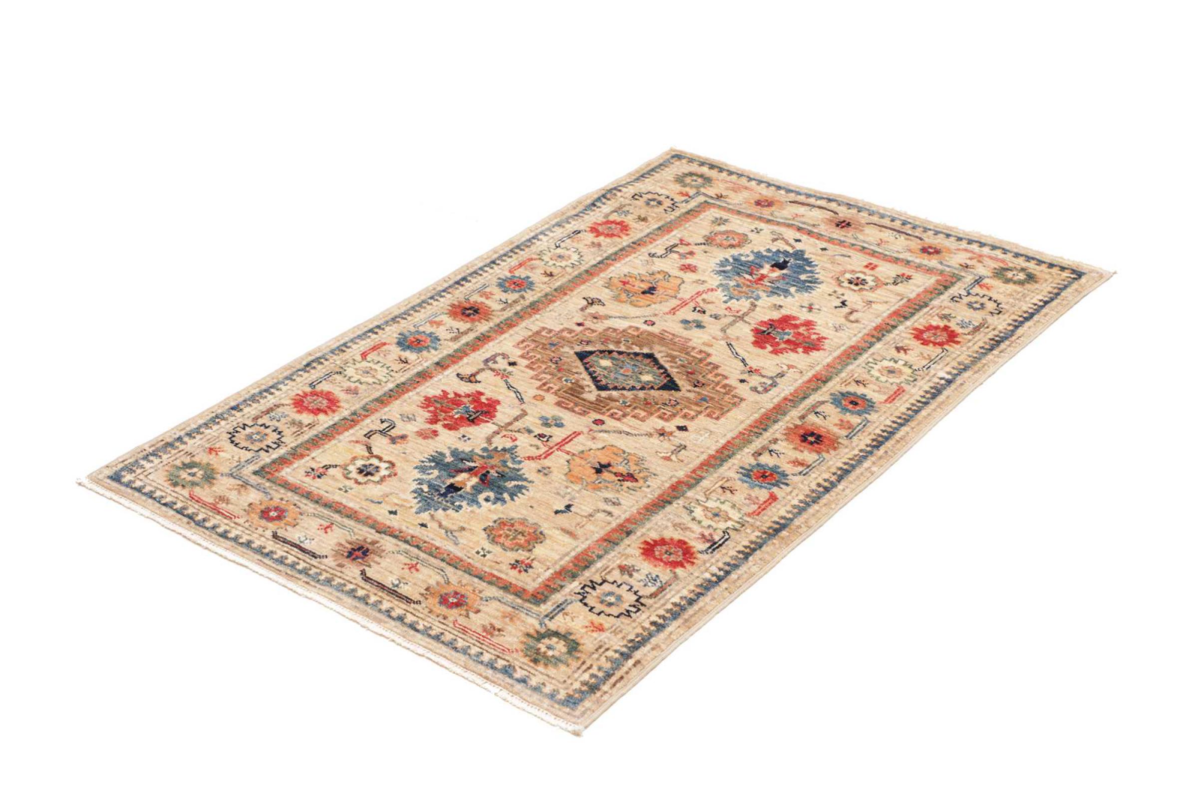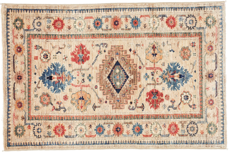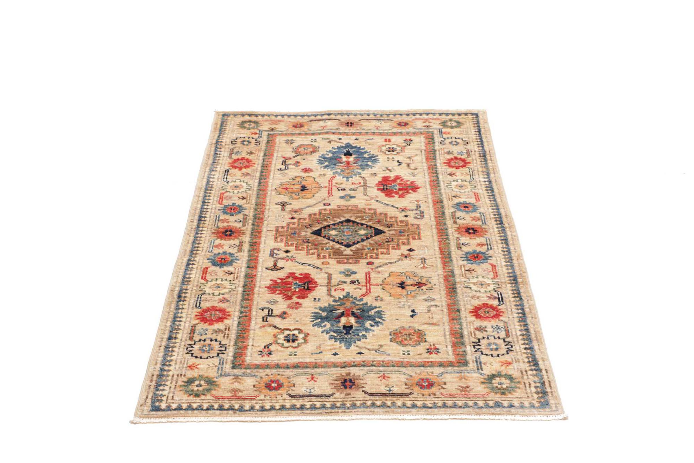 Dette håndknyttede Kazak er håndknyttet i stil med kaukasiske tæpper og imponerer med sin høje robusthed og levende farver. Det afspejler således kulturen i Kaukasus i en smuk komposition. En kultur, der i århundreder har mestret kunsten at væve tæpper og præsenterer den for omverdenen med charmerende enkle former i imponerende levende farver.