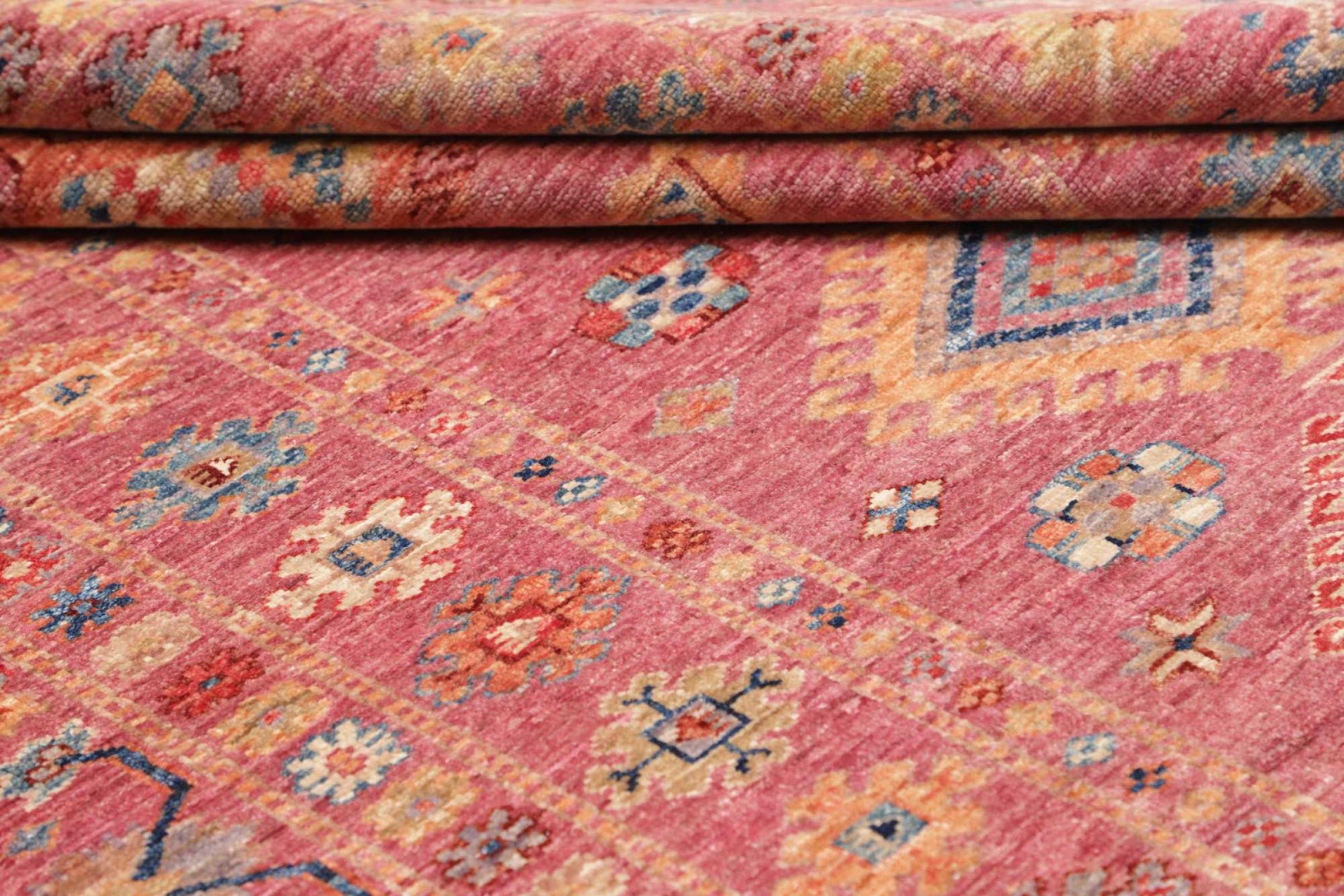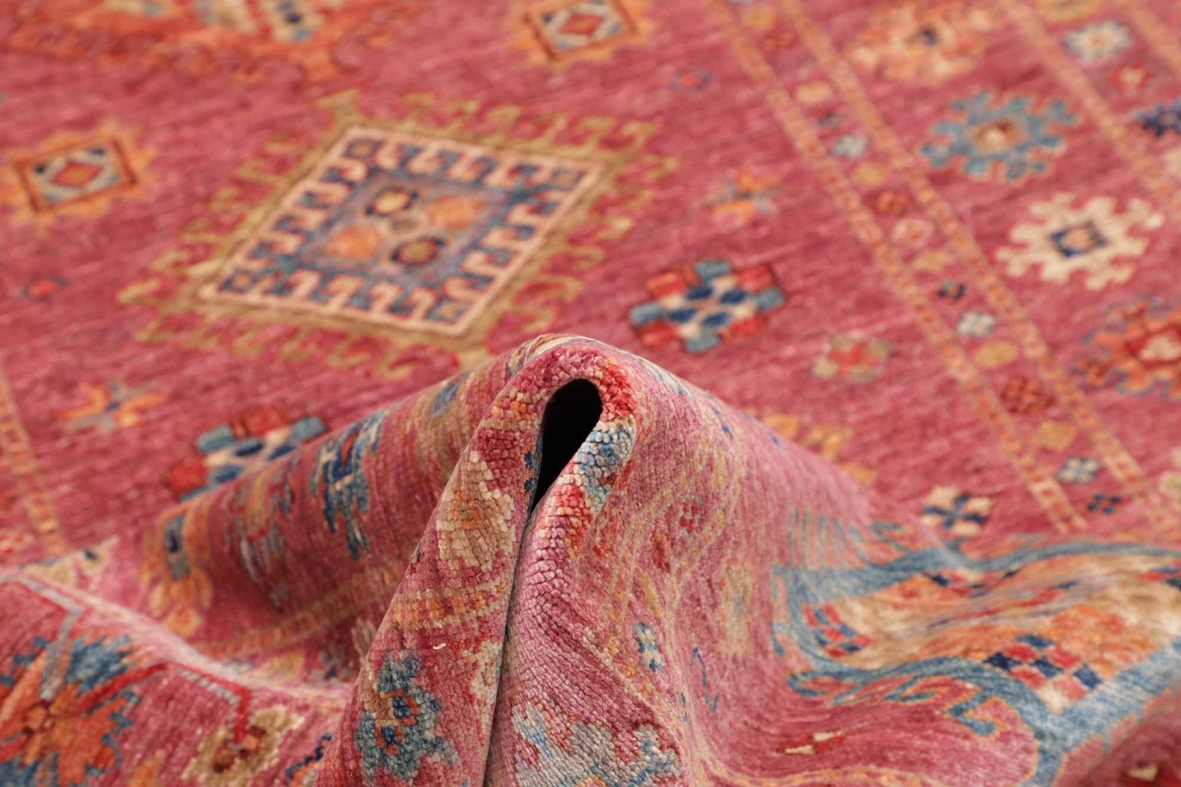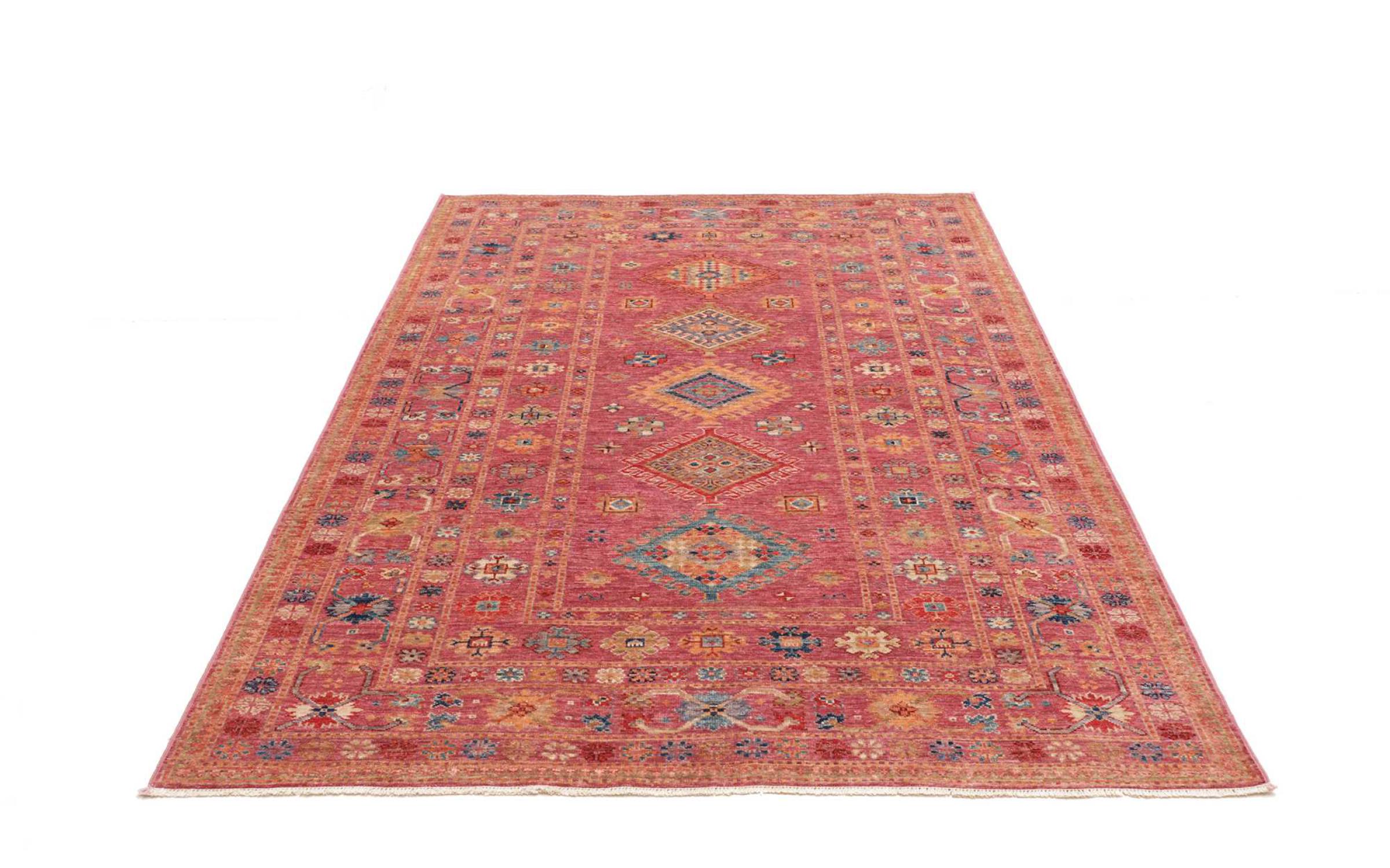 Dette håndknyttede Kazak er håndknyttet i stil med kaukasiske tæpper og imponerer med sin høje robusthed og levende farver. Det afspejler således kulturen i Kaukasus i en smuk komposition. En kultur, der i århundreder har mestret kunsten at væve tæpper og præsenterer den for omverdenen med charmerende enkle former i imponerende levende farver.