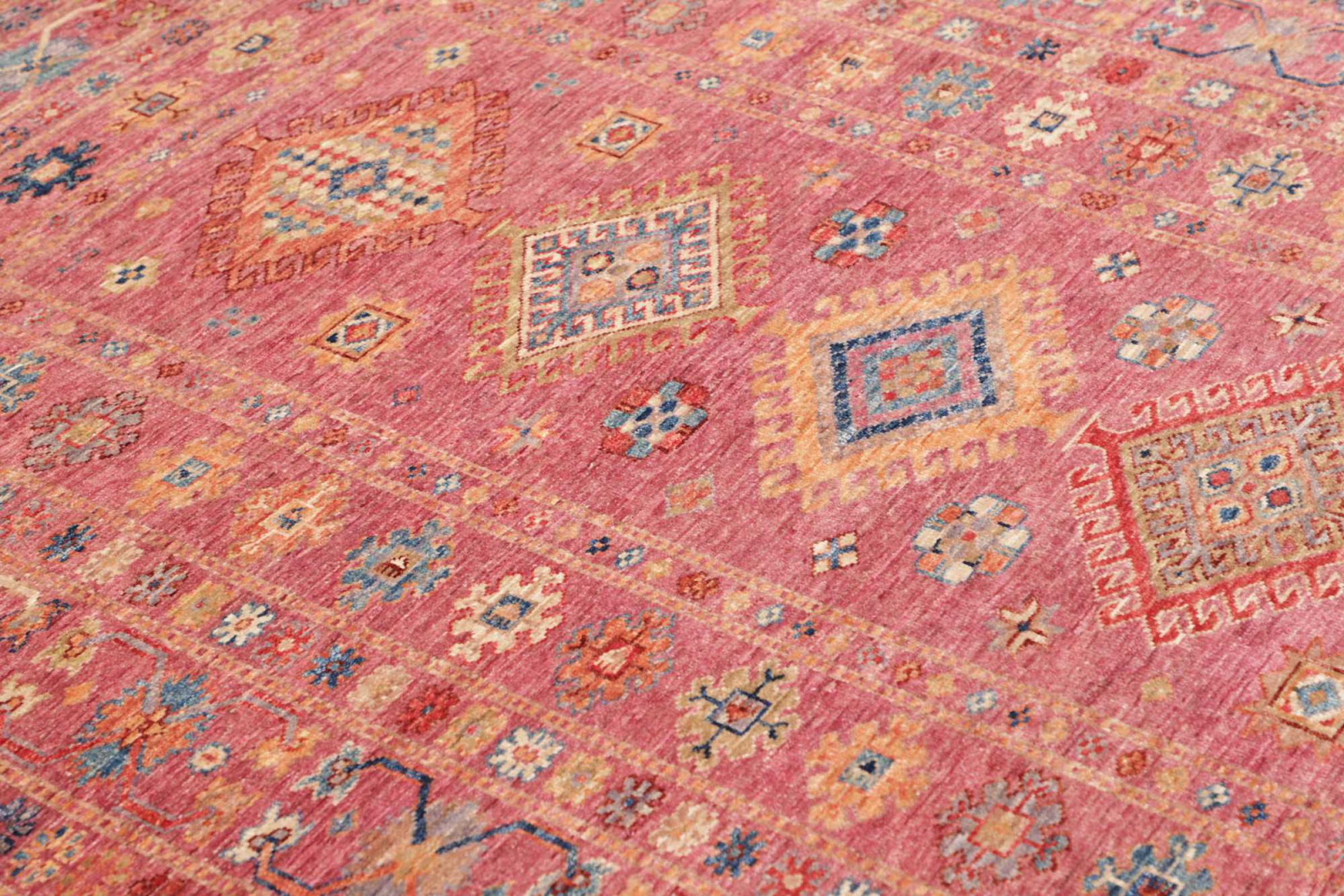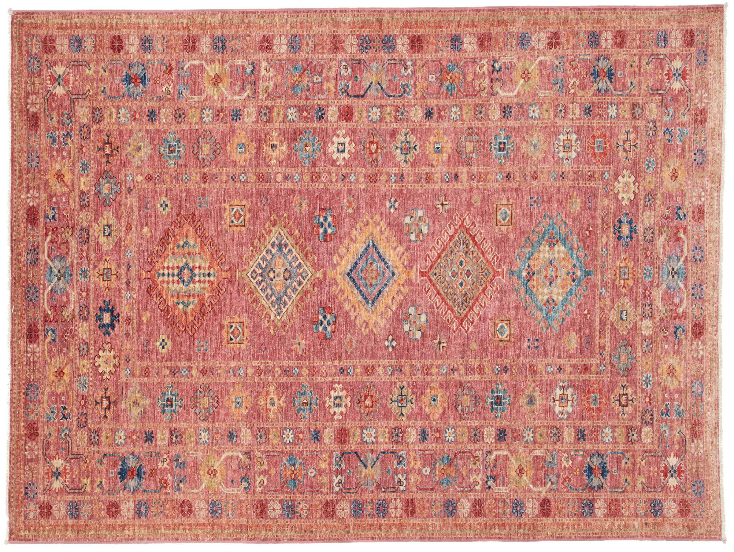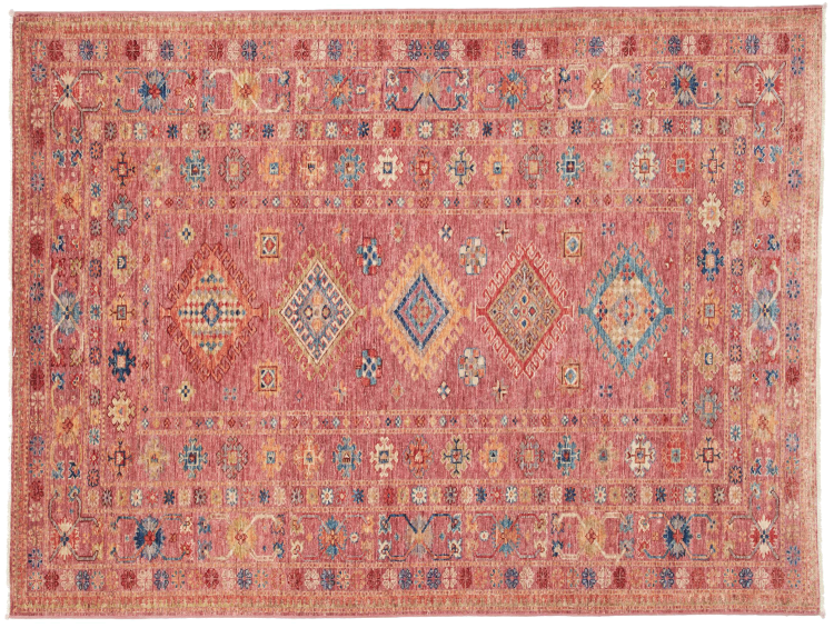 Dette håndknyttede Kazak er håndknyttet i stil med kaukasiske tæpper og imponerer med sin høje robusthed og levende farver. Det afspejler således kulturen i Kaukasus i en smuk komposition. En kultur, der i århundreder har mestret kunsten at væve tæpper og præsenterer den for omverdenen med charmerende enkle former i imponerende levende farver.