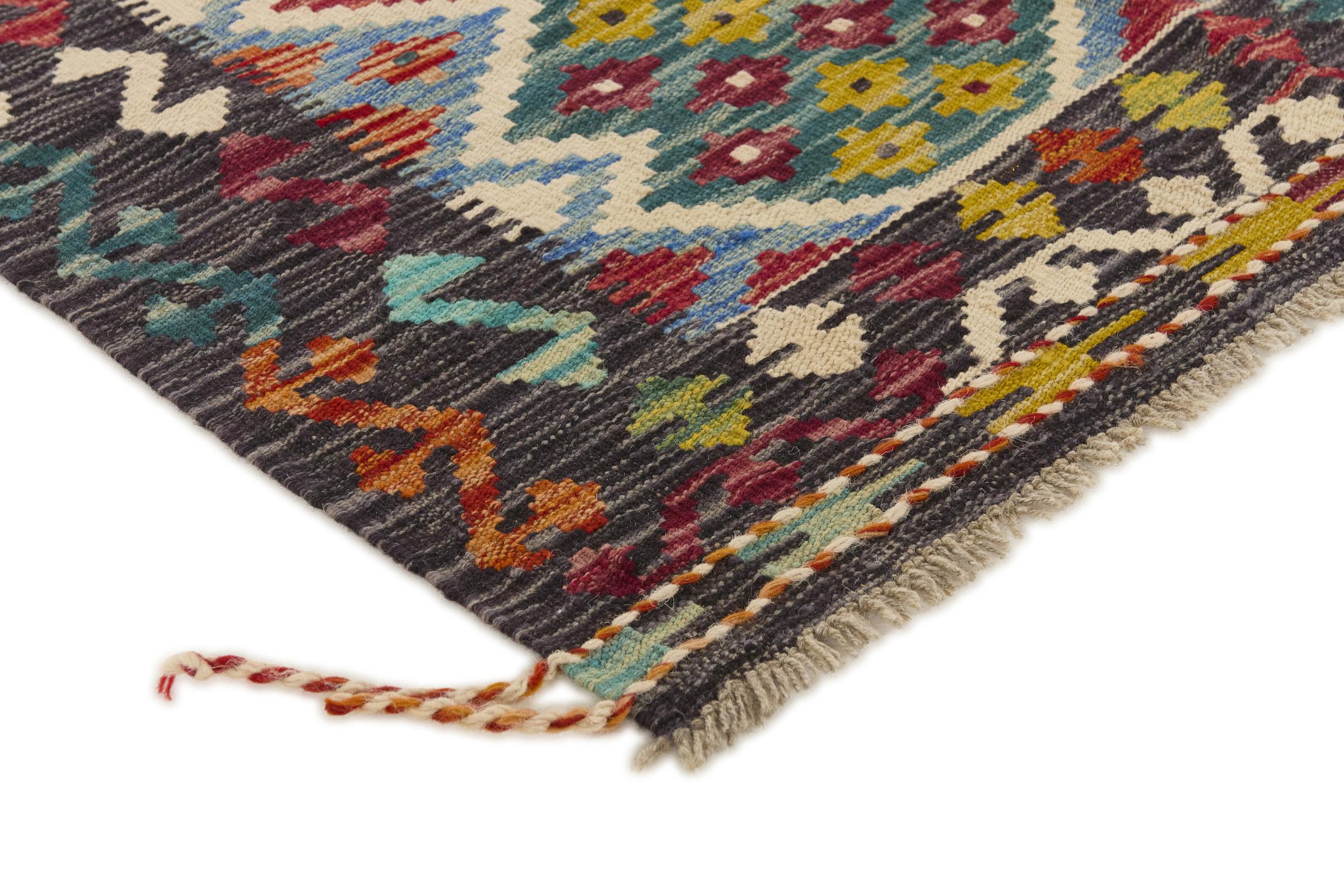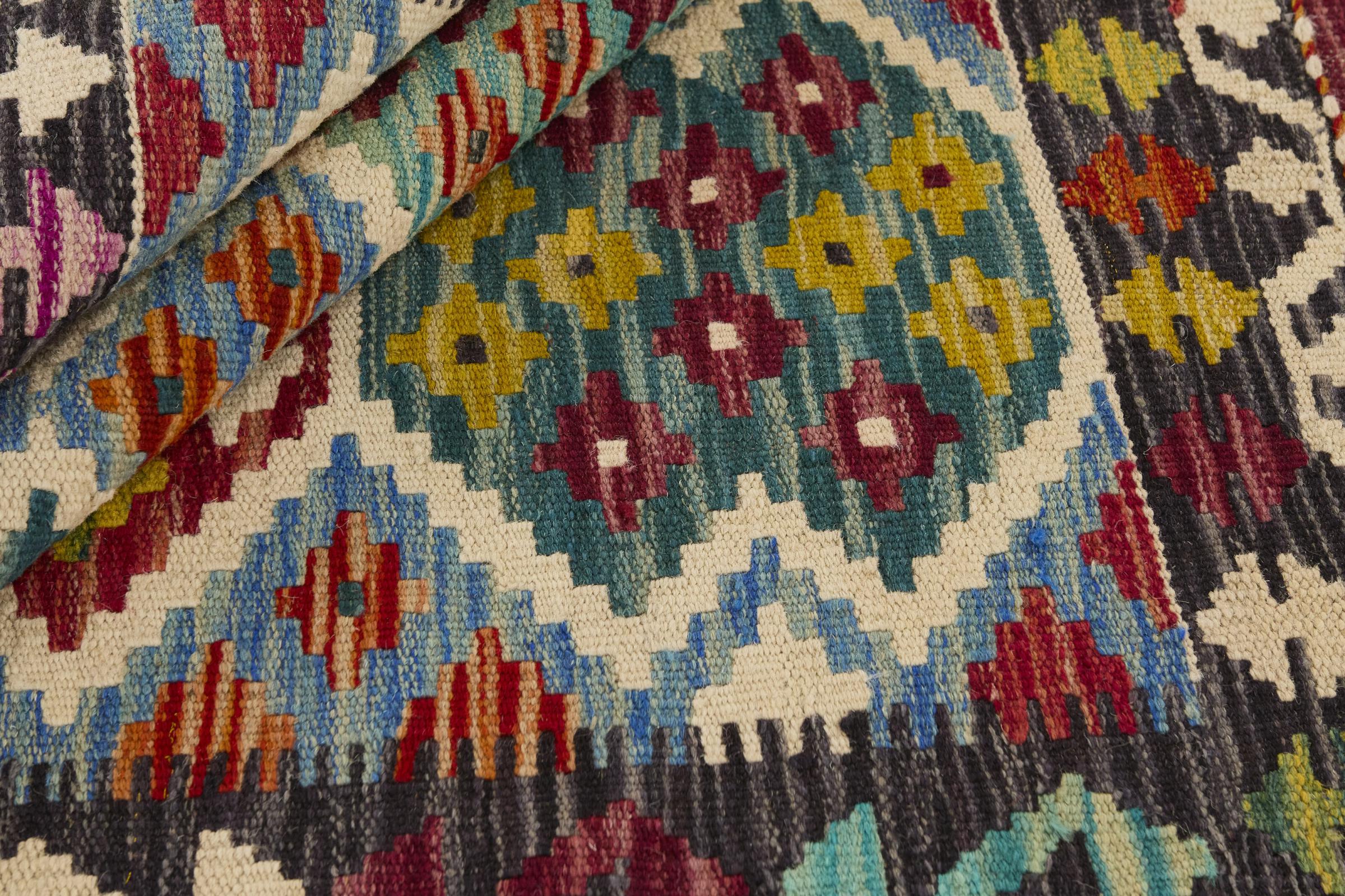 Denne håndvævede afghanske kelim er smuk takket være dens mangefacetterede farver og typiske mønster. Det er vævet i hånden i Afghanistan af 100 % fåreuld. Det er derfor uden tvivl mere robust og holdbart end maskinproducerede tæpper. Denne kelim har også sin helt egen karakter. Et unikt stykke til dig og dit hjem, som du ikke finder igen på præcis samme måde.