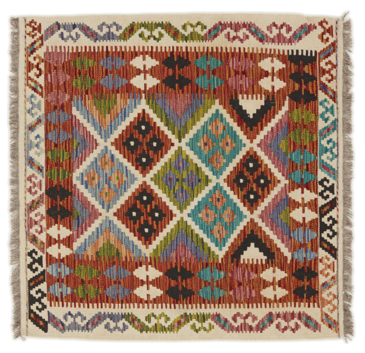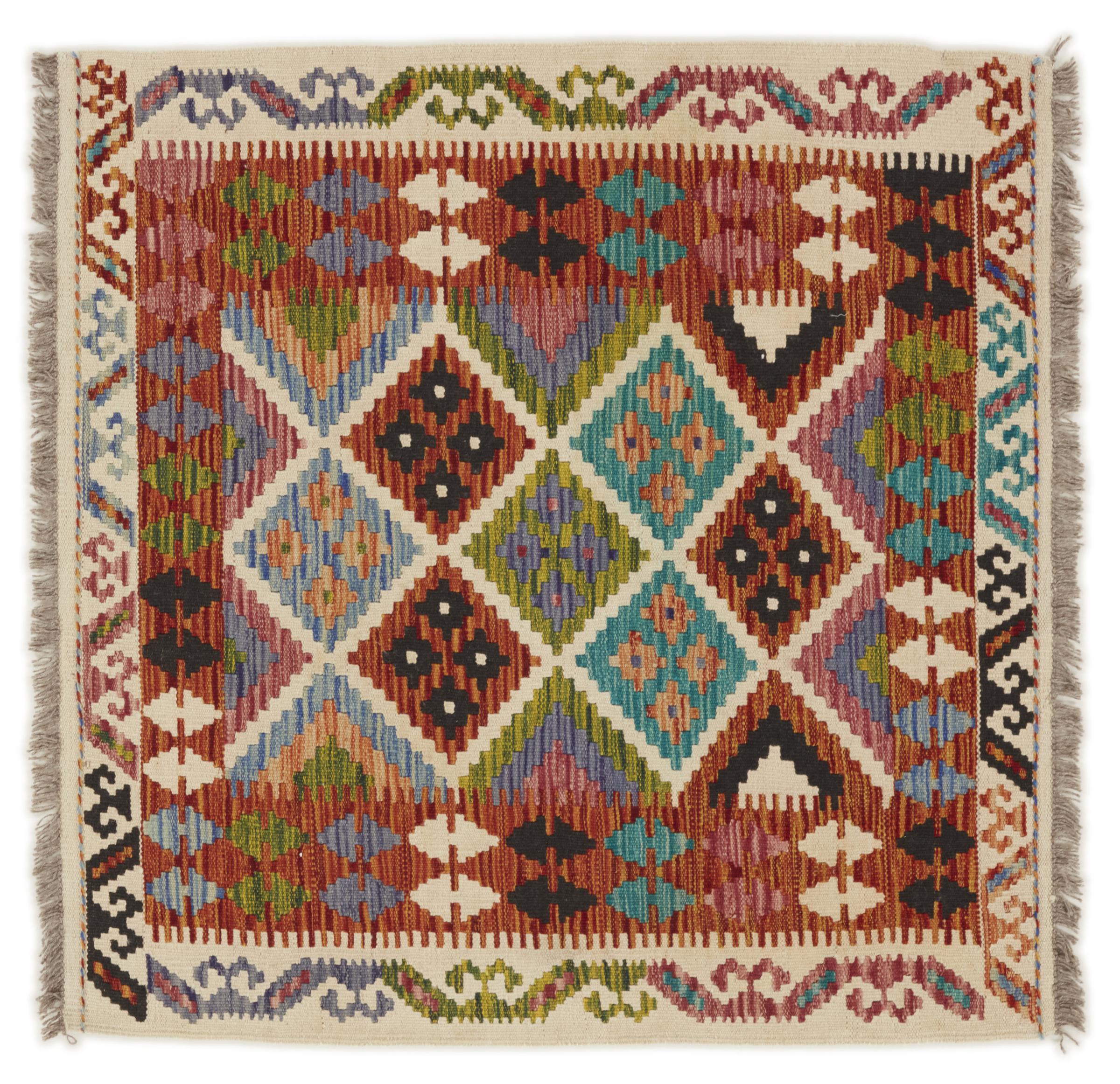Tæppe-nr.: 291963004017193 Størrelse: 104x104 cm Tykkelse: ca. 3 mm Forarbejdelse: Håndvævet Luv: Håndspunden uld Kæde: Uld Oprindelse: Afghanistan Alder: Ny Vægt: ca. 2 kg Antal på lager: Unik - Kun 1 tilbage på lager