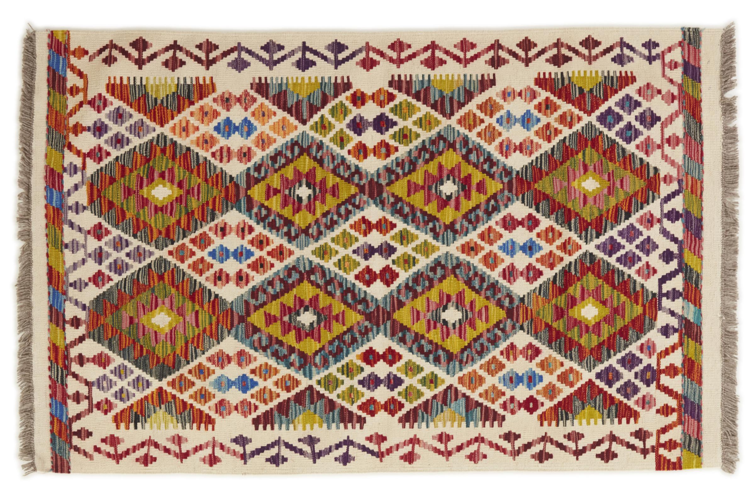 Denne håndvævede afghanske kelim er smuk takket være dens mangefacetterede farver og typiske mønster. Det er vævet i hånden i Afghanistan af 100 % fåreuld. Det er derfor uden tvivl mere robust og holdbart end maskinproducerede tæpper. Denne kelim har også sin helt egen karakter. Et unikt stykke til dig og dit hjem, som du ikke finder igen på præcis samme måde.