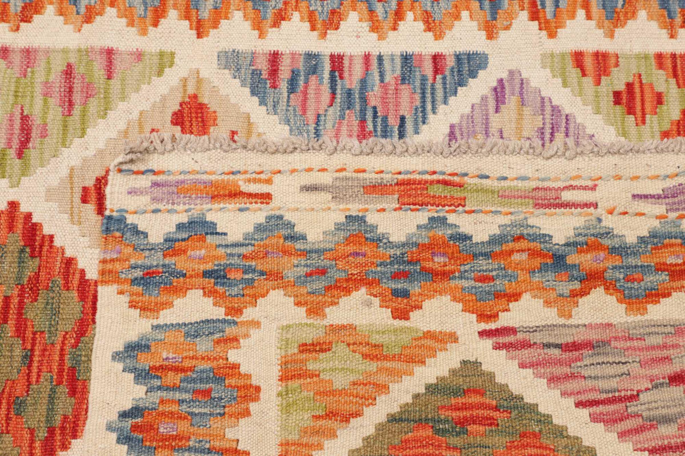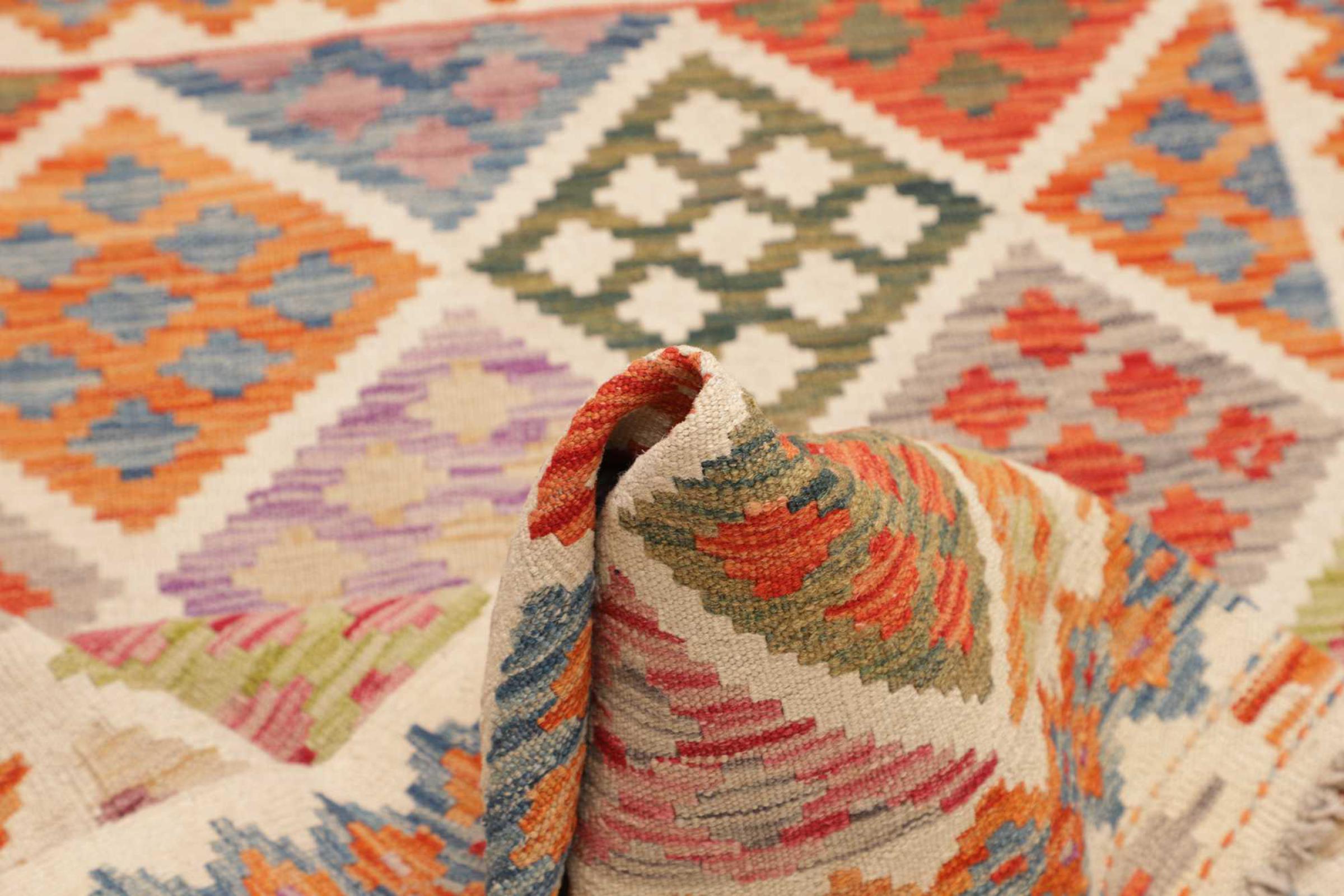 Denne håndvævede afghanske kelim er smuk takket være dens mangefacetterede farver og typiske mønster. Det er vævet i hånden i Afghanistan af 100 % fåreuld. Det er derfor uden tvivl mere robust og holdbart end maskinproducerede tæpper. Denne kelim har også sin helt egen karakter. Et unikt stykke til dig og dit hjem, som du ikke finder igen på præcis samme måde.