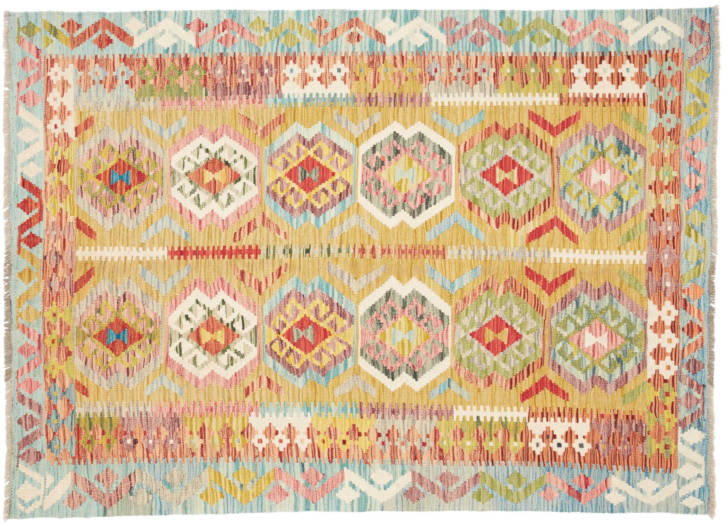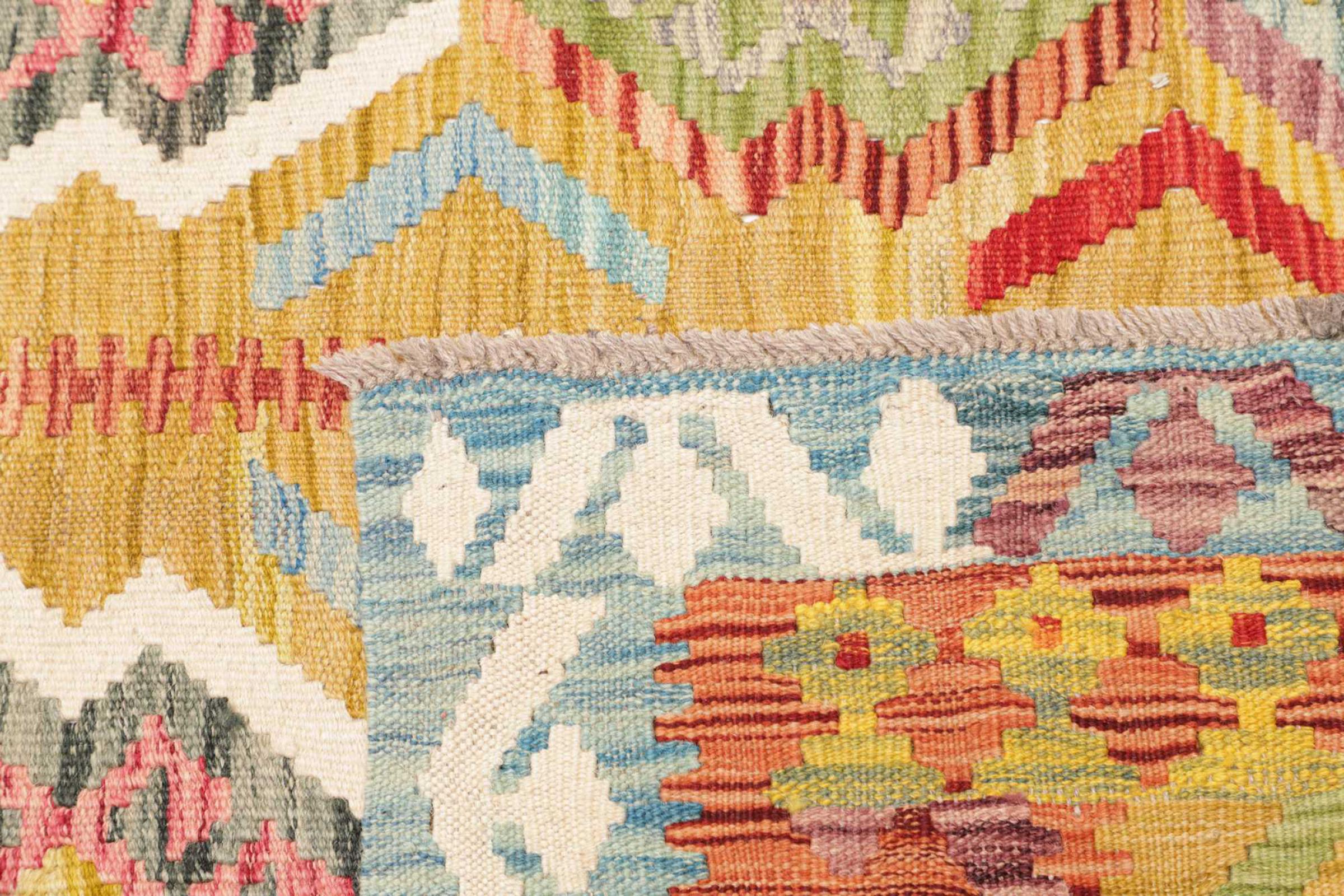 Denne håndvævede afghanske kelim er smuk takket være dens mangefacetterede farver og typiske mønster. Det er vævet i hånden i Afghanistan af 100 % fåreuld. Det er derfor uden tvivl mere robust og holdbart end maskinproducerede tæpper. Denne kelim har også sin helt egen karakter. Et unikt stykke til dig og dit hjem, som du ikke finder igen på præcis samme måde.