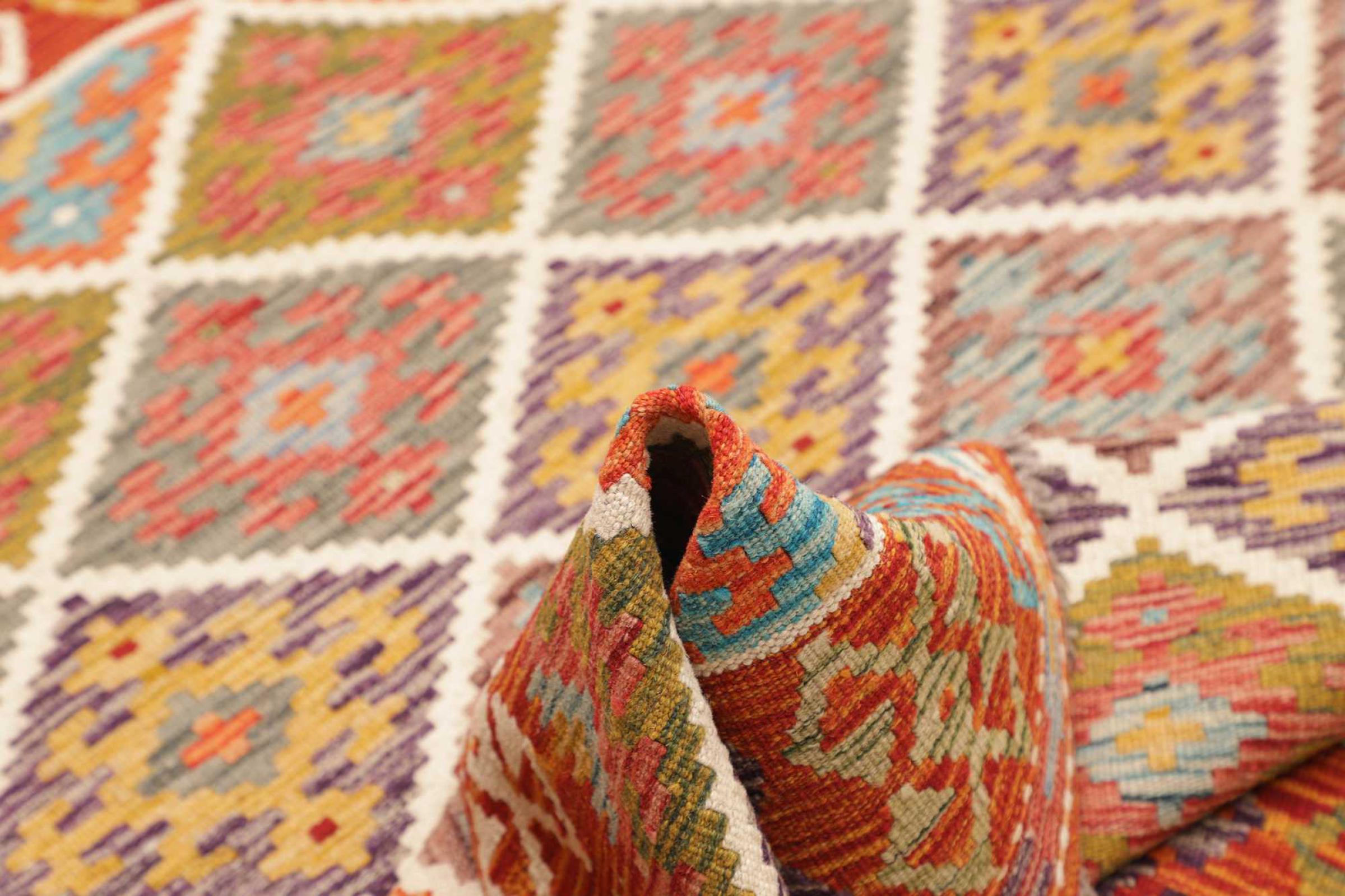 Denne håndvævede afghanske kelim er smuk takket være dens mangefacetterede farver og typiske mønster. Det er vævet i hånden i Afghanistan af 100 % fåreuld. Det er derfor uden tvivl mere robust og holdbart end maskinproducerede tæpper. Denne kelim har også sin helt egen karakter. Et unikt stykke til dig og dit hjem, som du ikke finder igen på præcis samme måde.