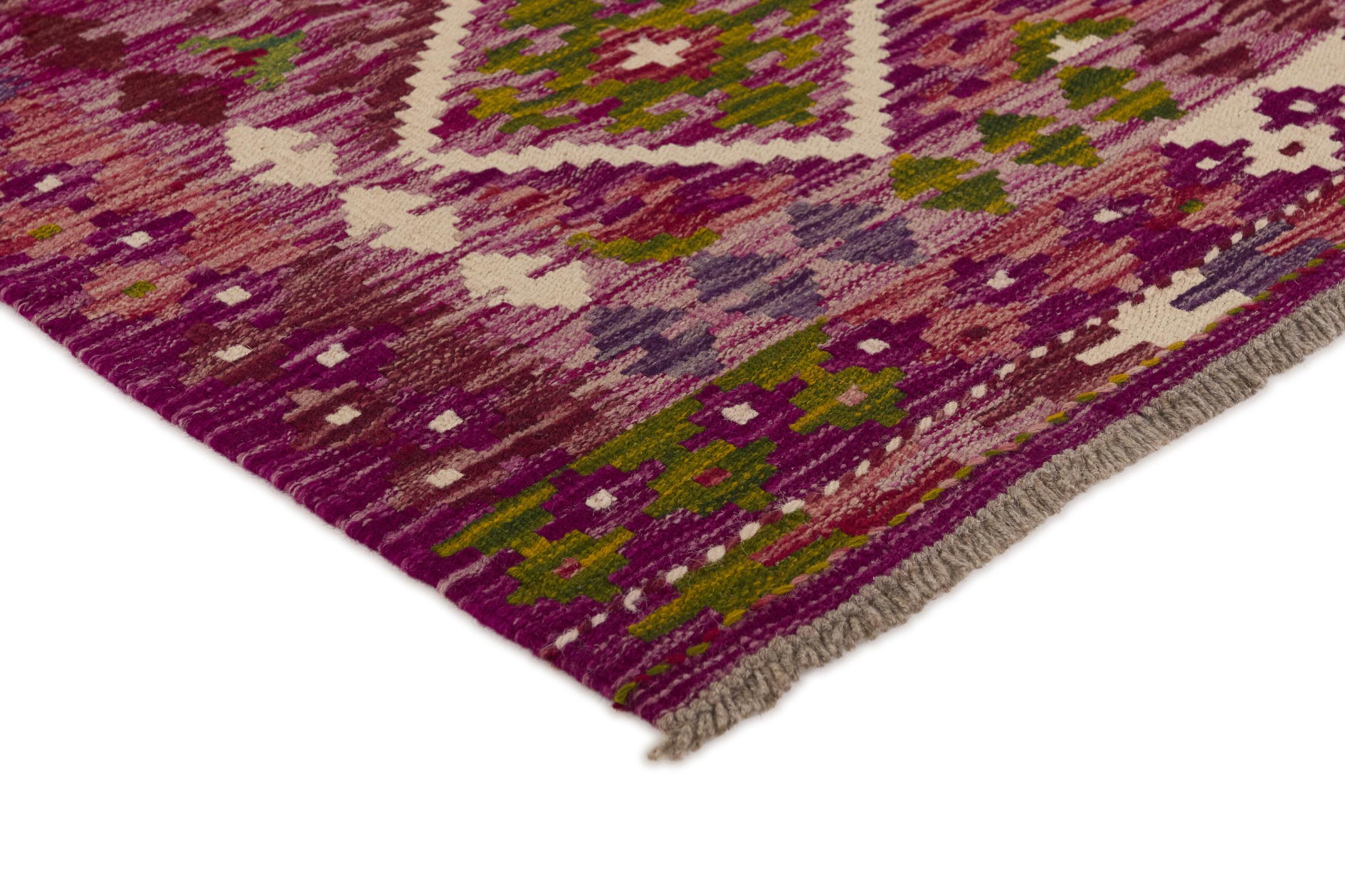 Denne håndvævede afghanske kelim er smuk takket være dens mangefacetterede farver og typiske mønster. Det er vævet i hånden i Afghanistan af 100 % fåreuld. Det er derfor uden tvivl mere robust og holdbart end maskinproducerede tæpper. Denne kelim har også sin helt egen karakter. Et unikt stykke til dig og dit hjem, som du ikke finder igen på præcis samme måde.