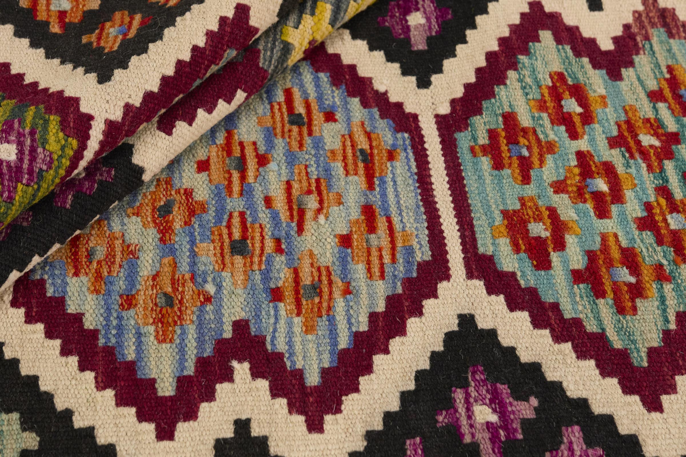 Denne håndvævede afghanske kelim er smuk takket være dens mangefacetterede farver og typiske mønster. Det er vævet i hånden i Afghanistan af 100 % fåreuld. Det er derfor uden tvivl mere robust og holdbart end maskinproducerede tæpper. Denne kelim har også sin helt egen karakter. Et unikt stykke til dig og dit hjem, som du ikke finder igen på præcis samme måde.