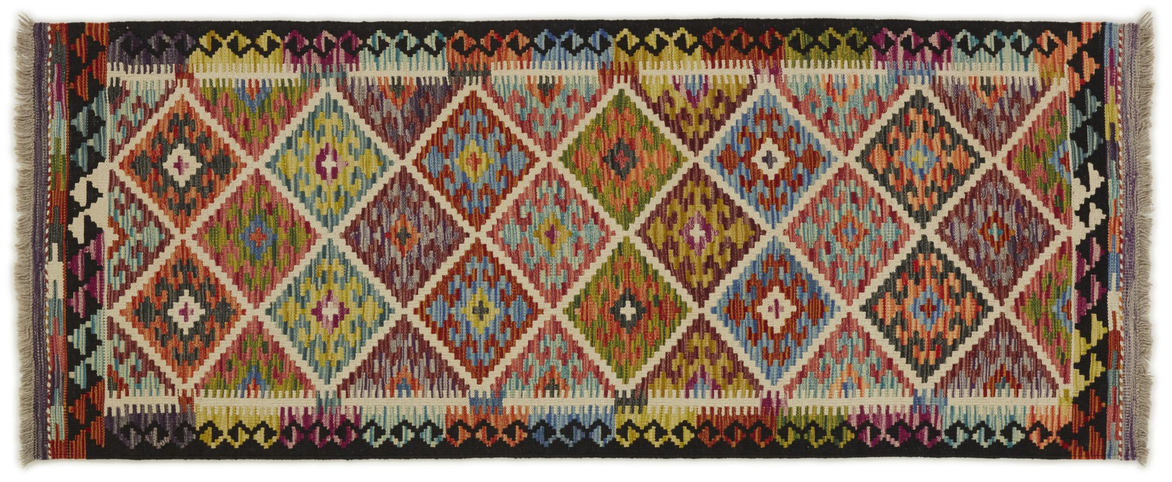 Denne håndvævede afghanske kelim er smuk takket være dens mangefacetterede farver og typiske mønster. Det er vævet i hånden i Afghanistan af 100 % fåreuld. Det er derfor uden tvivl mere robust og holdbart end maskinproducerede tæpper. Denne kelim har også sin helt egen karakter. Et unikt stykke til dig og dit hjem, som du ikke finder igen på præcis samme måde.