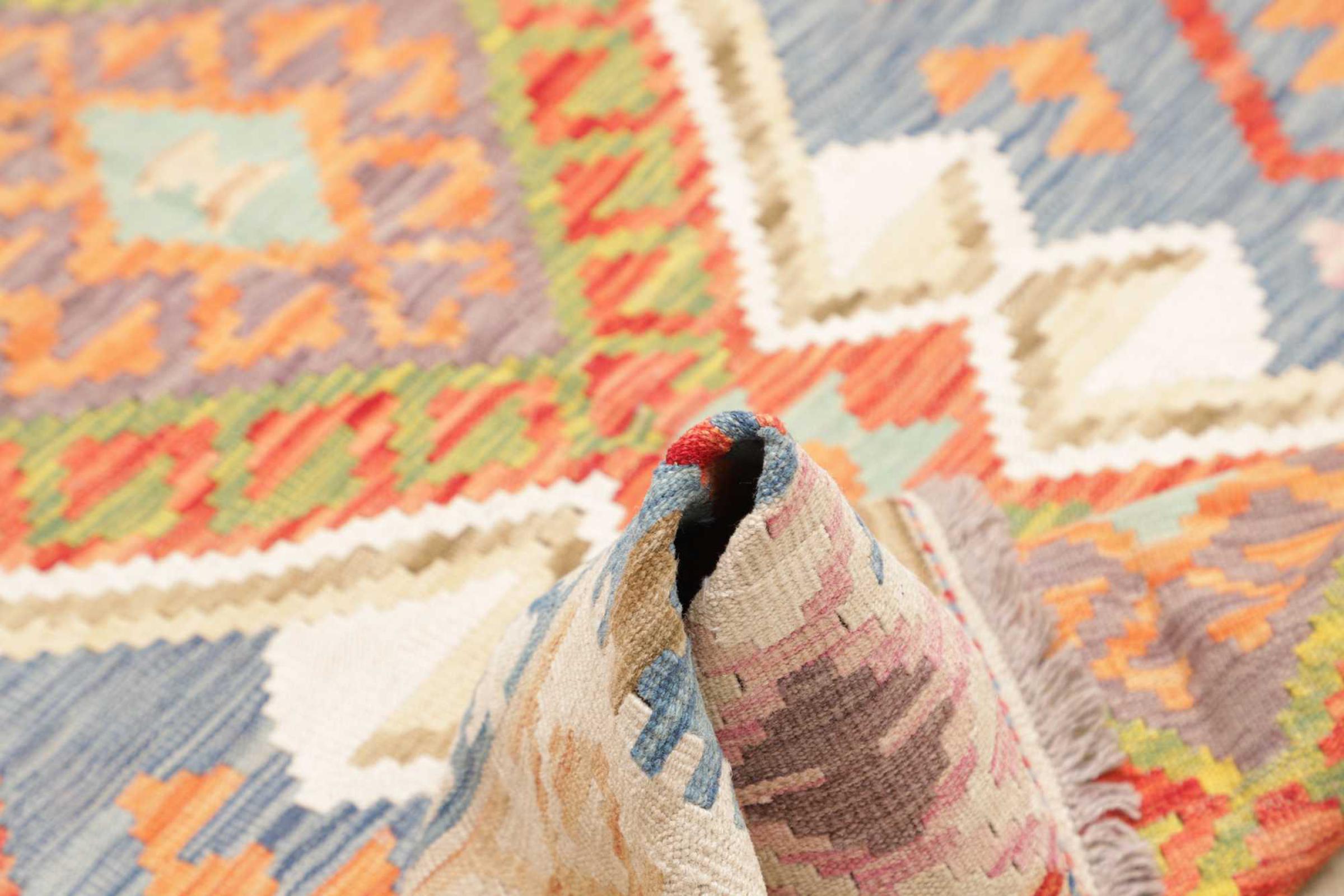 Denne håndvævede afghanske kelim er smuk takket være dens mangefacetterede farver og typiske mønster. Det er vævet i hånden i Afghanistan af 100 % fåreuld. Det er derfor uden tvivl mere robust og holdbart end maskinproducerede tæpper. Denne kelim har også sin helt egen karakter. Et unikt stykke til dig og dit hjem, som du ikke finder igen på præcis samme måde.