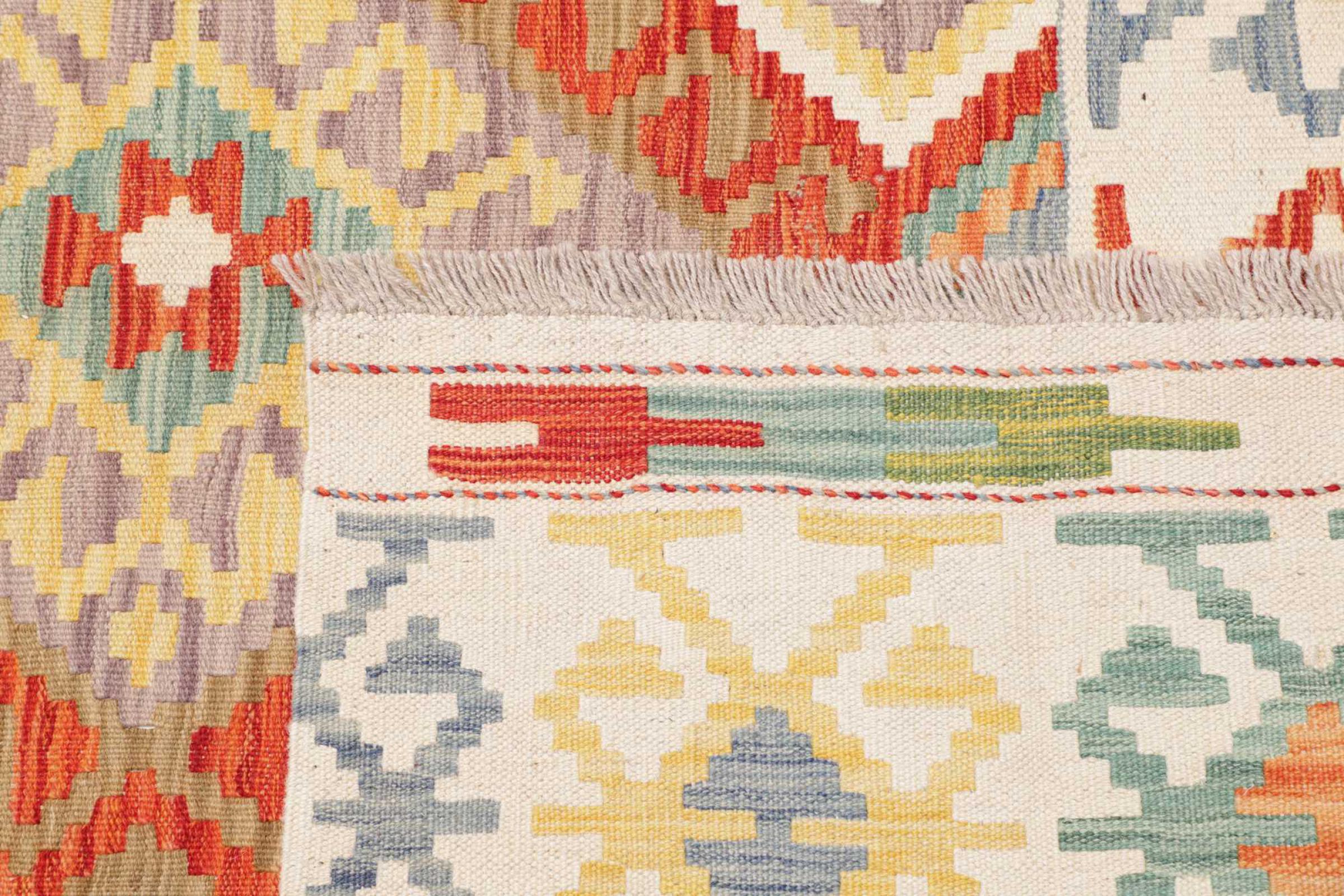 Denne håndvævede afghanske kelim er smuk takket være dens mangefacetterede farver og typiske mønster. Det er vævet i hånden i Afghanistan af 100 % fåreuld. Det er derfor uden tvivl mere robust og holdbart end maskinproducerede tæpper. Denne kelim har også sin helt egen karakter. Et unikt stykke til dig og dit hjem, som du ikke finder igen på præcis samme måde.