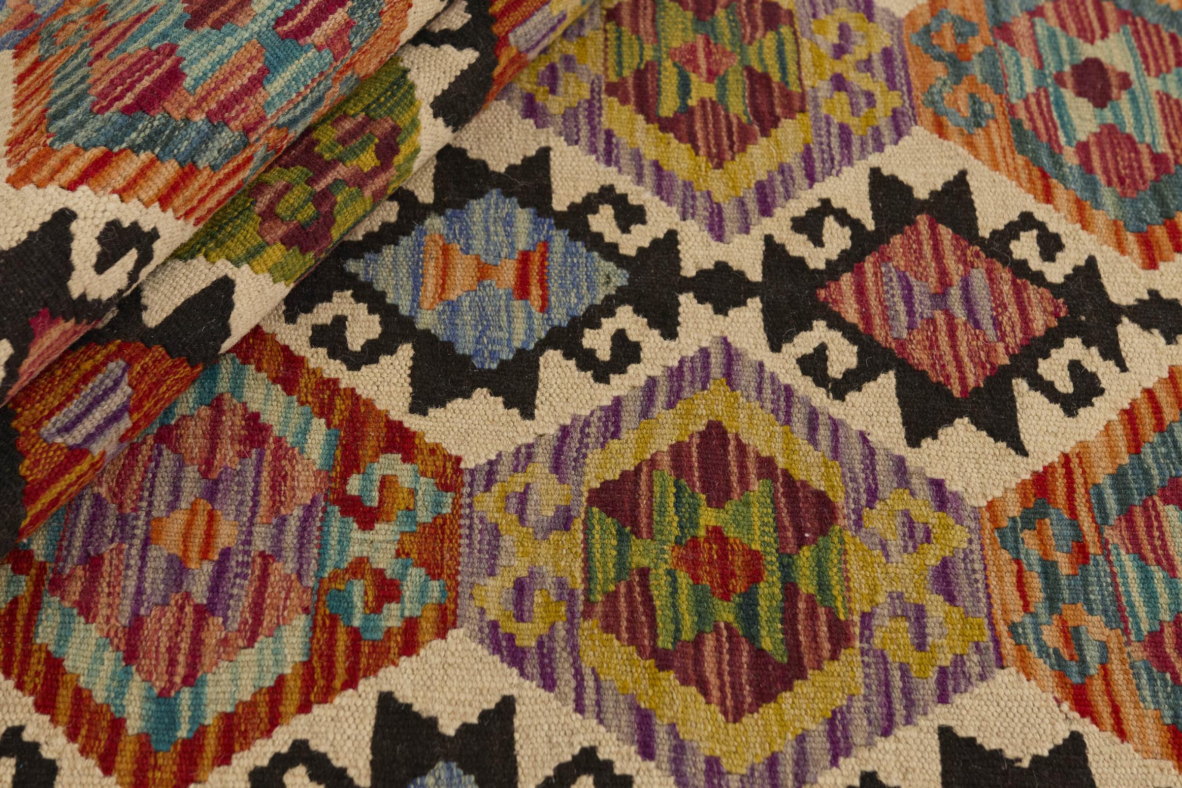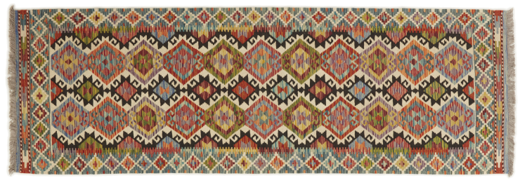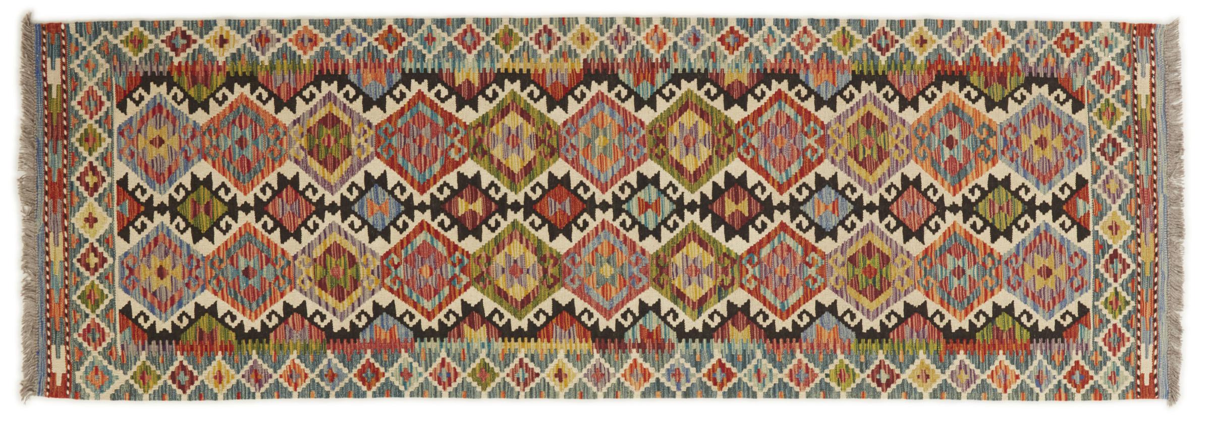 Denne håndvævede afghanske kelim er smuk takket være dens mangefacetterede farver og typiske mønster. Det er vævet i hånden i Afghanistan af 100 % fåreuld. Det er derfor uden tvivl mere robust og holdbart end maskinproducerede tæpper. Denne kelim har også sin helt egen karakter. Et unikt stykke til dig og dit hjem, som du ikke finder igen på præcis samme måde.
