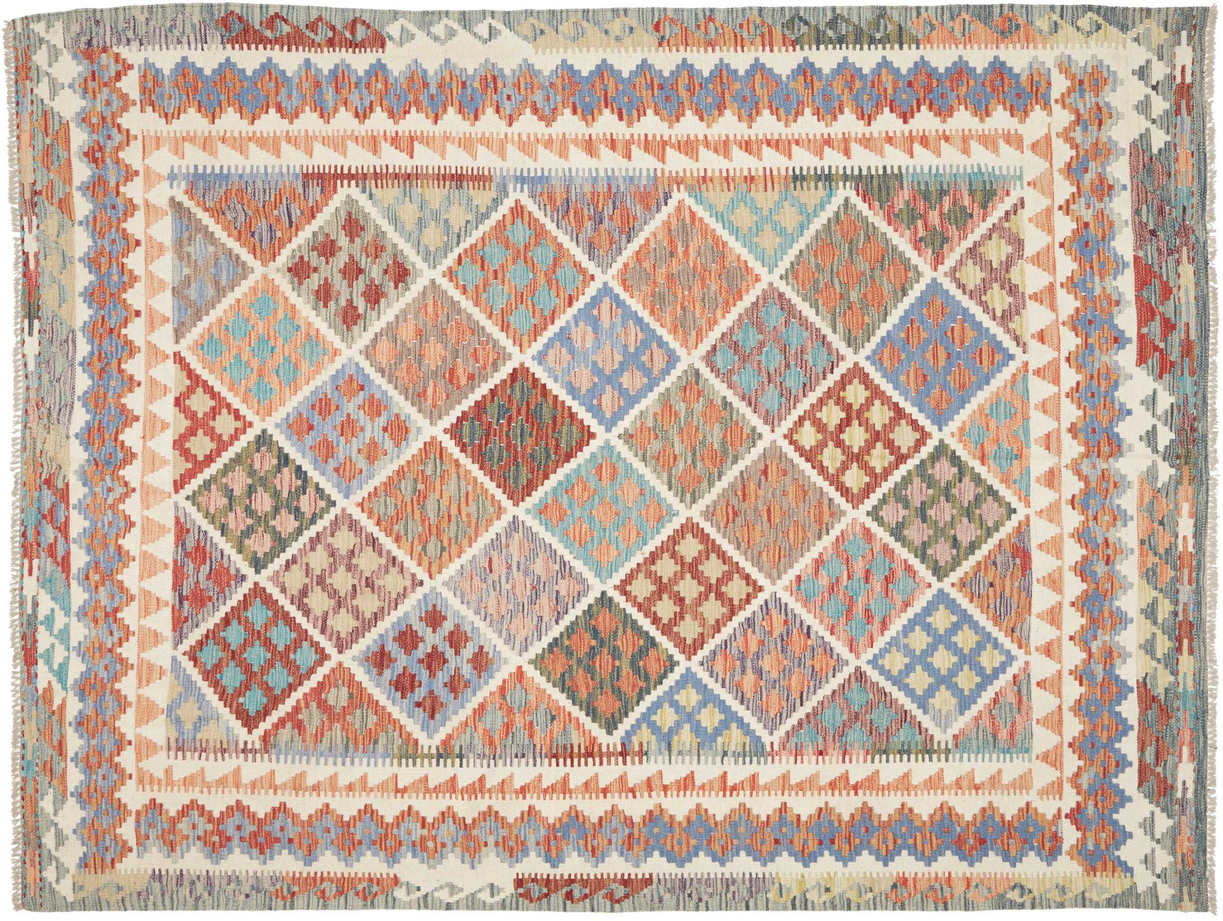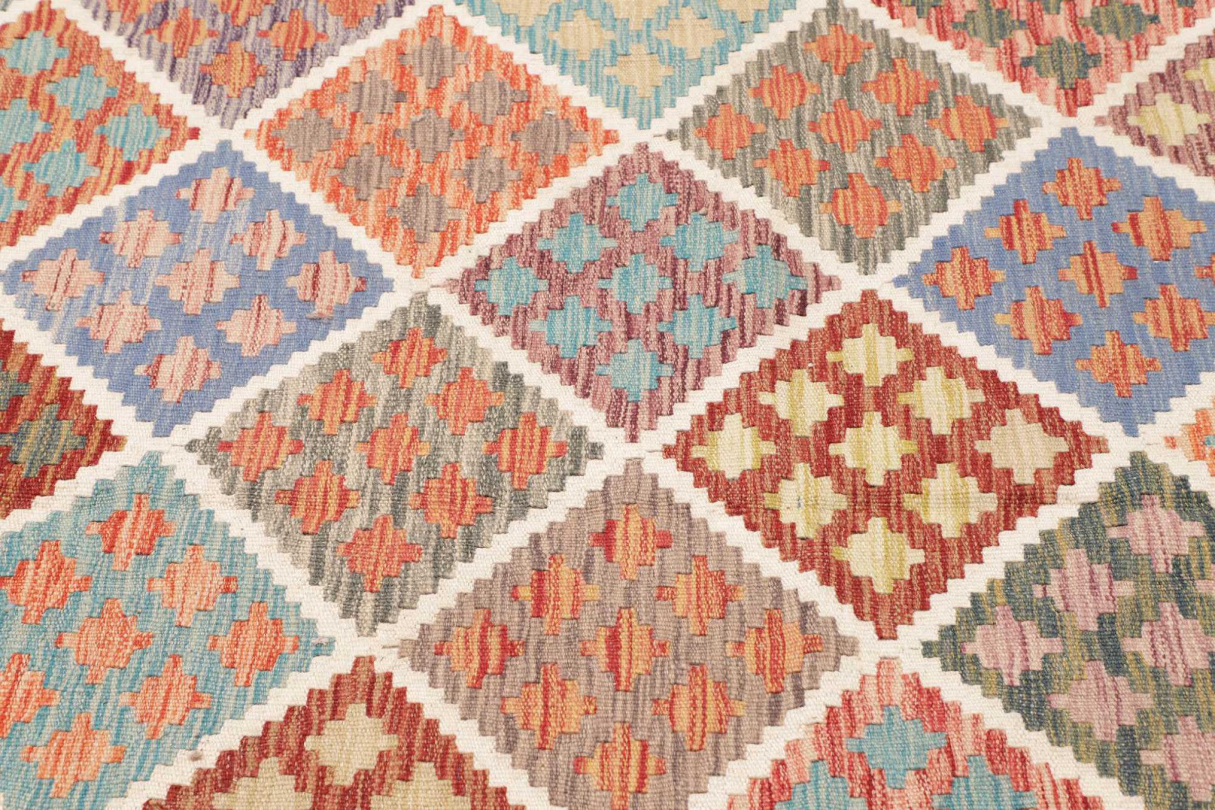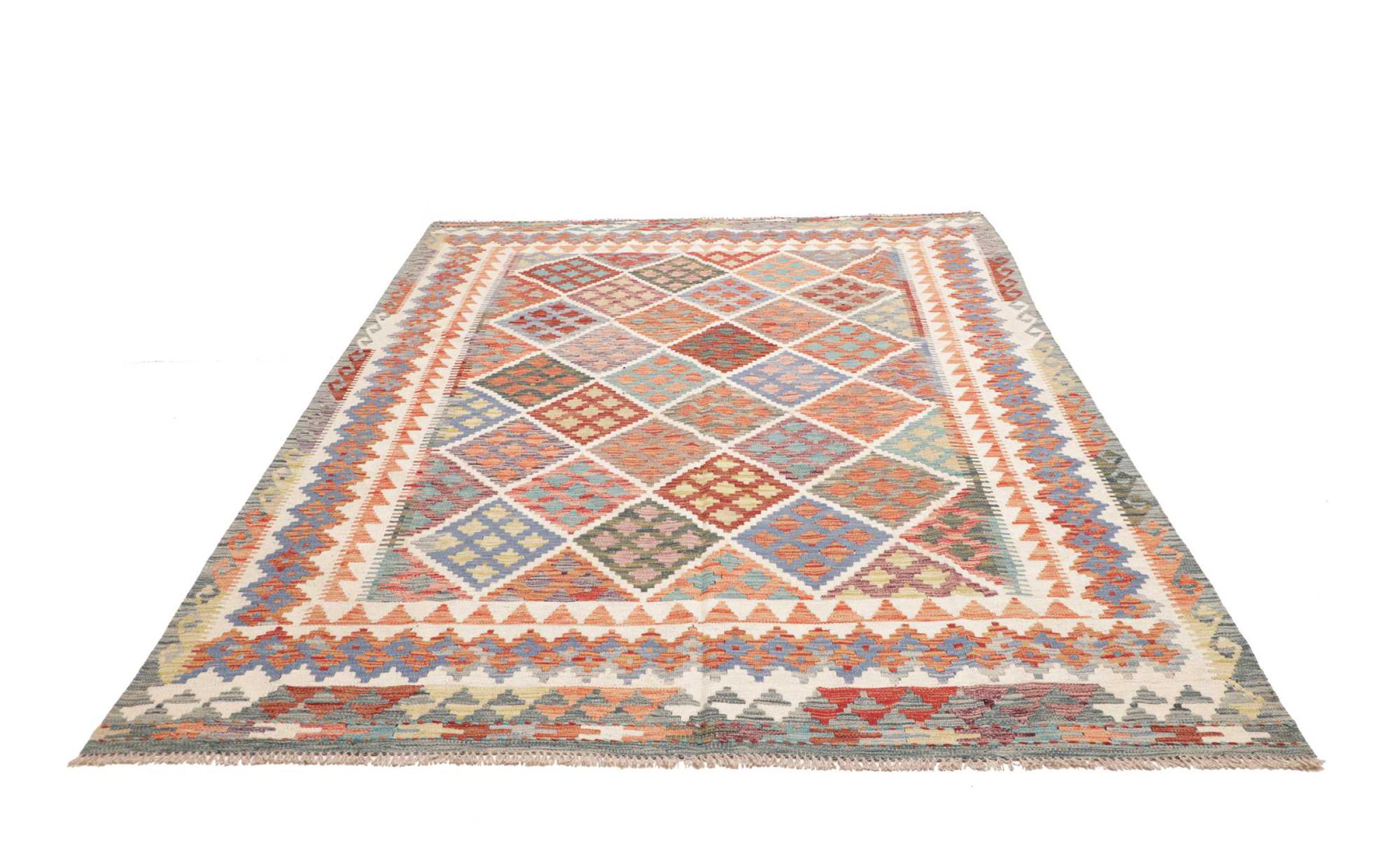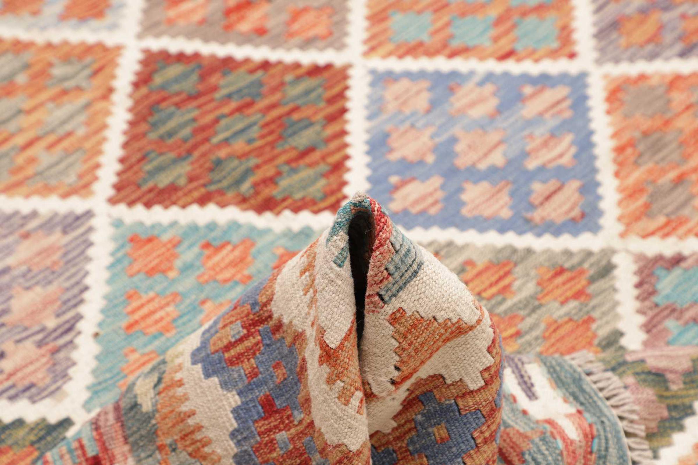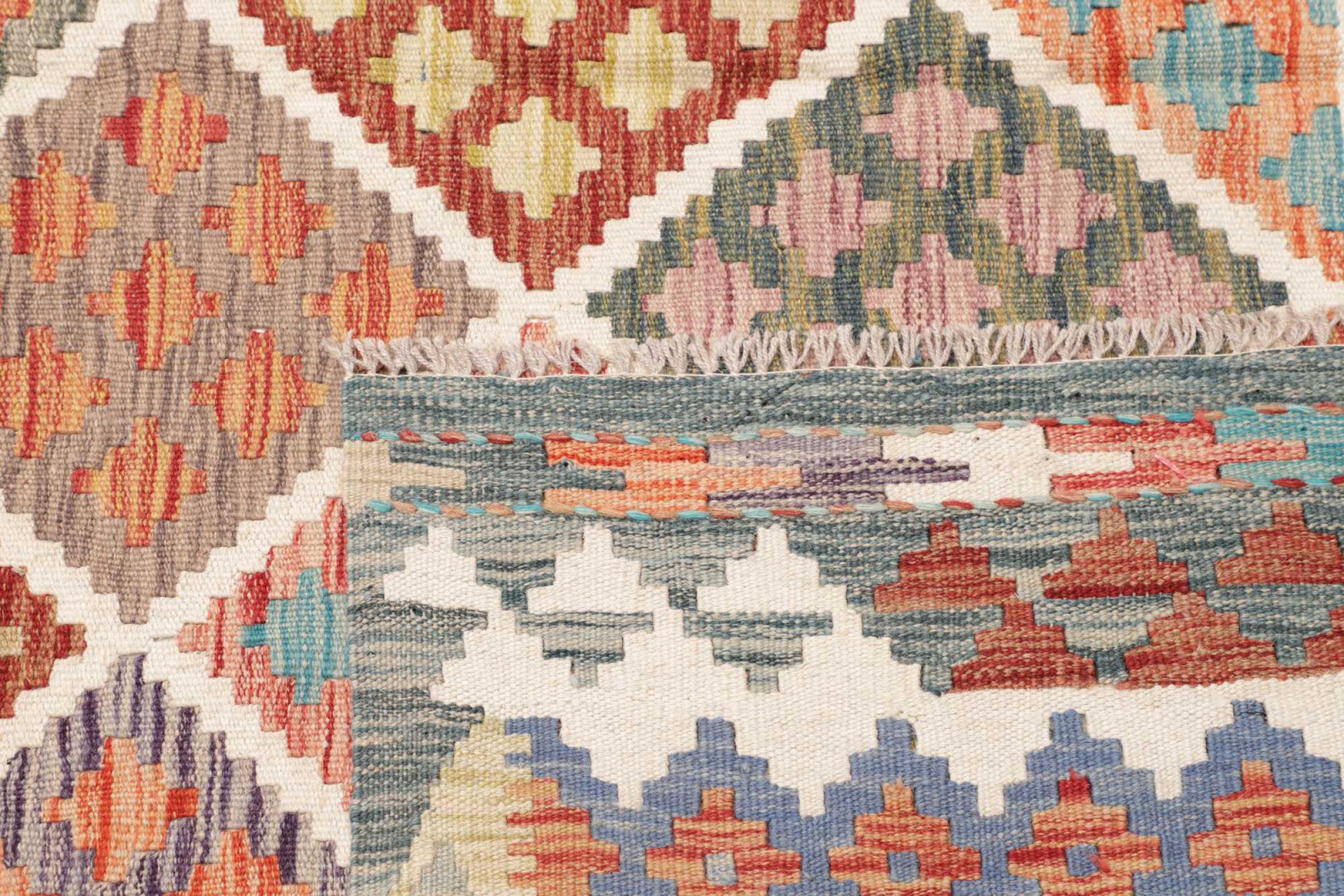 Denne håndvævede afghanske kelim er smuk takket være dens mangefacetterede farver og typiske mønster. Det er vævet i hånden i Afghanistan af 100 % fåreuld. Det er derfor uden tvivl mere robust og holdbart end maskinproducerede tæpper. Denne kelim har også sin helt egen karakter. Et unikt stykke til dig og dit hjem, som du ikke finder igen på præcis samme måde.