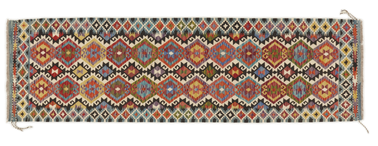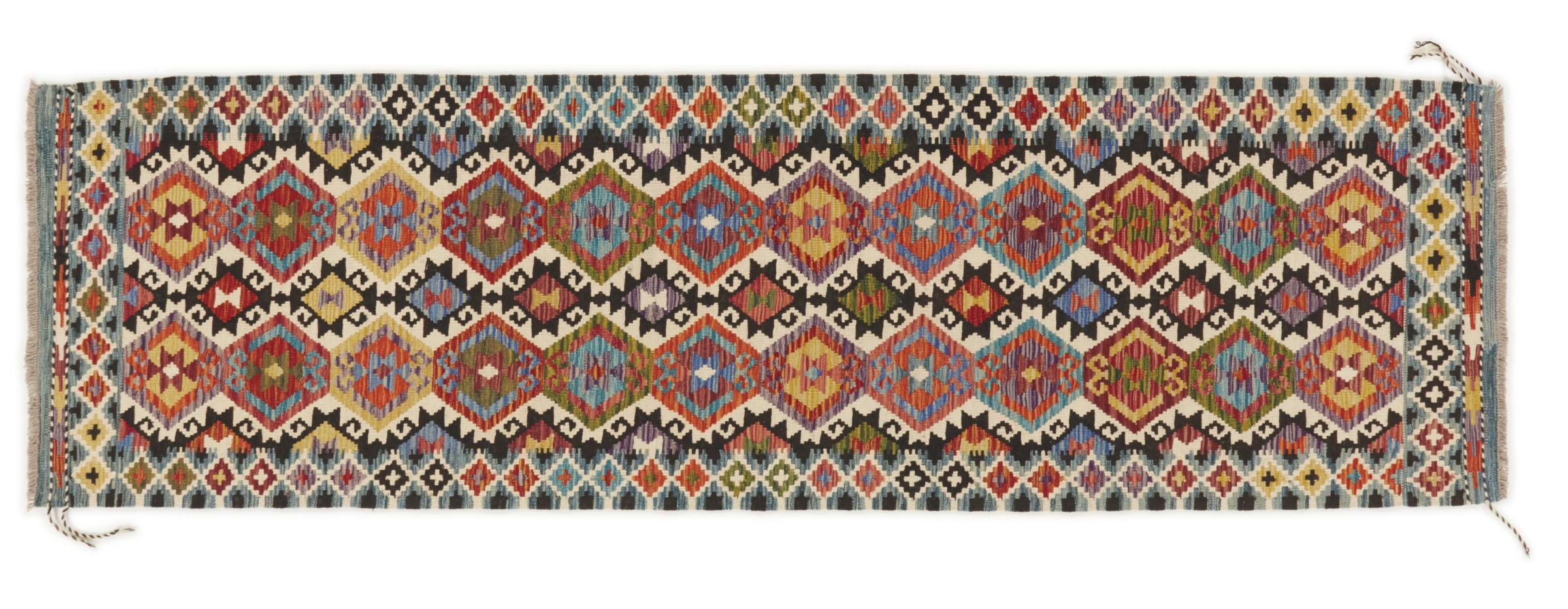 Denne håndvævede afghanske kelim er smuk takket være dens mangefacetterede farver og typiske mønster. Det er vævet i hånden i Afghanistan af 100 % fåreuld. Det er derfor uden tvivl mere robust og holdbart end maskinproducerede tæpper. Denne kelim har også sin helt egen karakter. Et unikt stykke til dig og dit hjem, som du ikke finder igen på præcis samme måde.