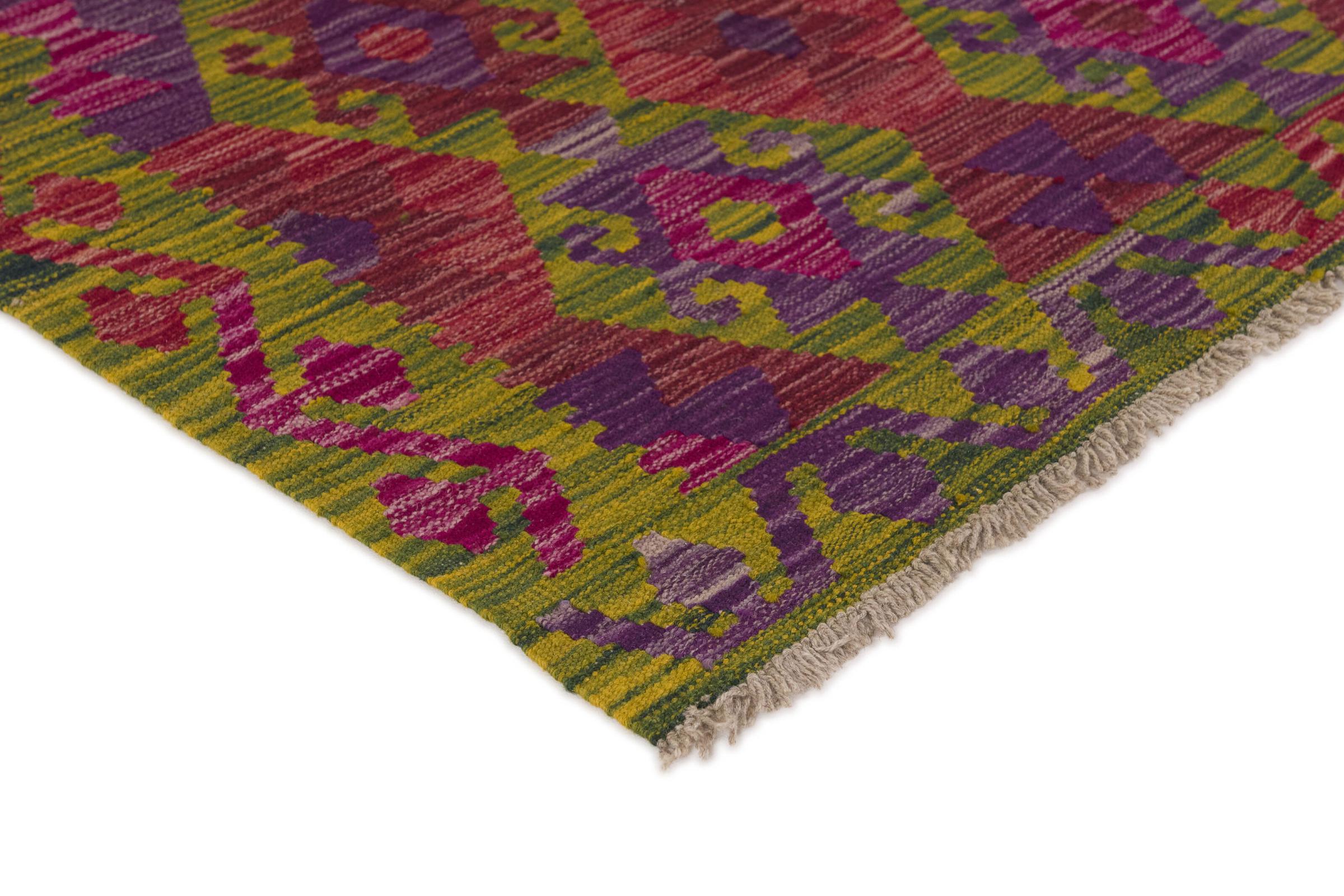 Denne håndvævede afghanske kelim er smuk takket være dens mangefacetterede farver og typiske mønster. Det er vævet i hånden i Afghanistan af 100 % fåreuld. Det er derfor uden tvivl mere robust og holdbart end maskinproducerede tæpper. Denne kelim har også sin helt egen karakter. Et unikt stykke til dig og dit hjem, som du ikke finder igen på præcis samme måde.