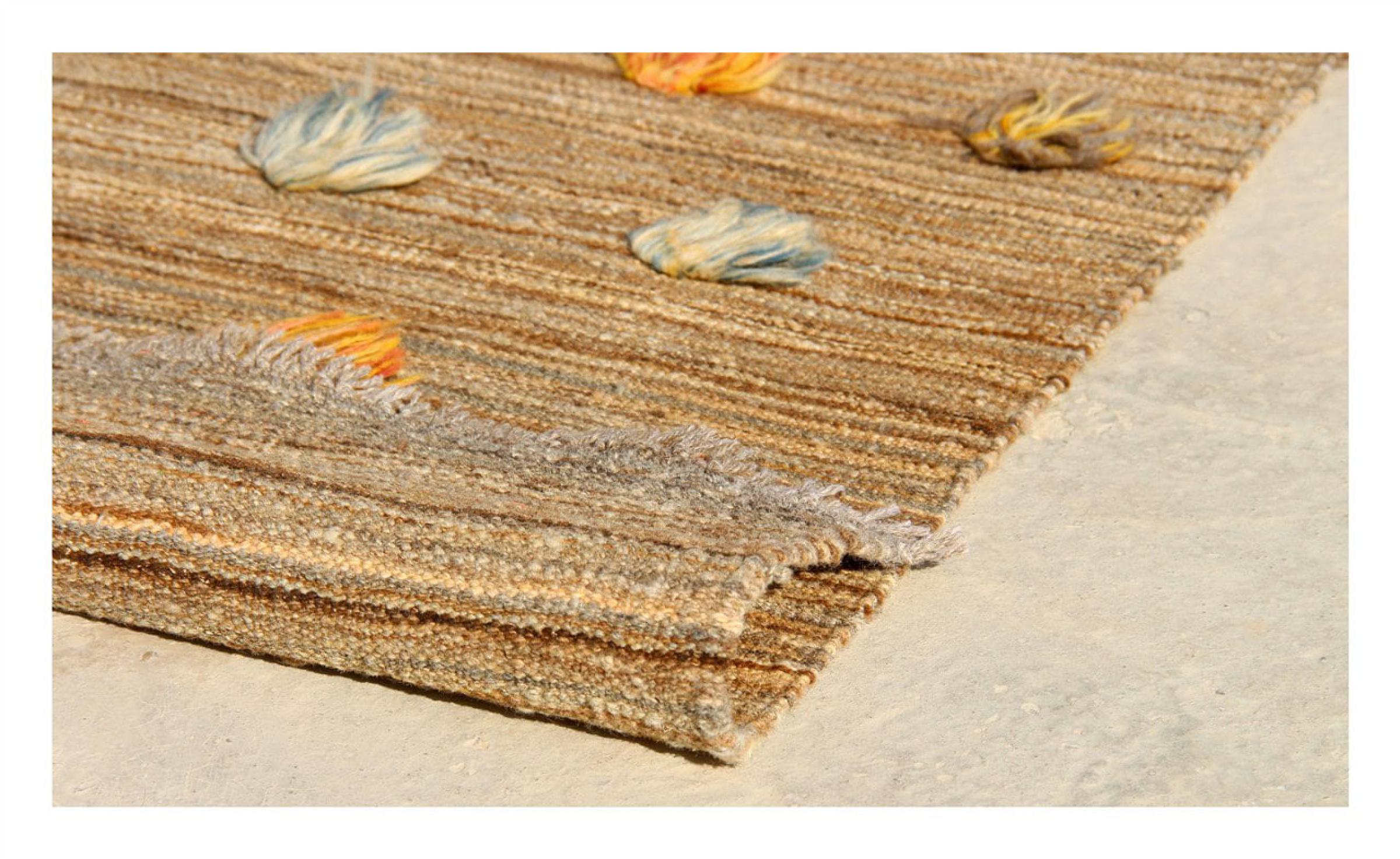 Dette tæppe består af håndspundet fåruld af højeste kvalitet. Især i Iran (tidligere Persien), Afghanistan og Pakistan spindes uld med hånden, før tæppet faktisk knuses. Uld har bevist sig som et naturligt og ekstremt slidstærkt materiale gennem århundreder. Det har blandt andet snavsafvisende og varmeisolerende egenskaber. Samtidig er uld uforlignelig blød og bringer en naturlig glans.