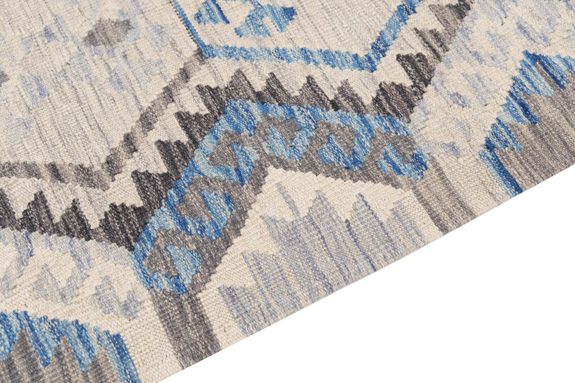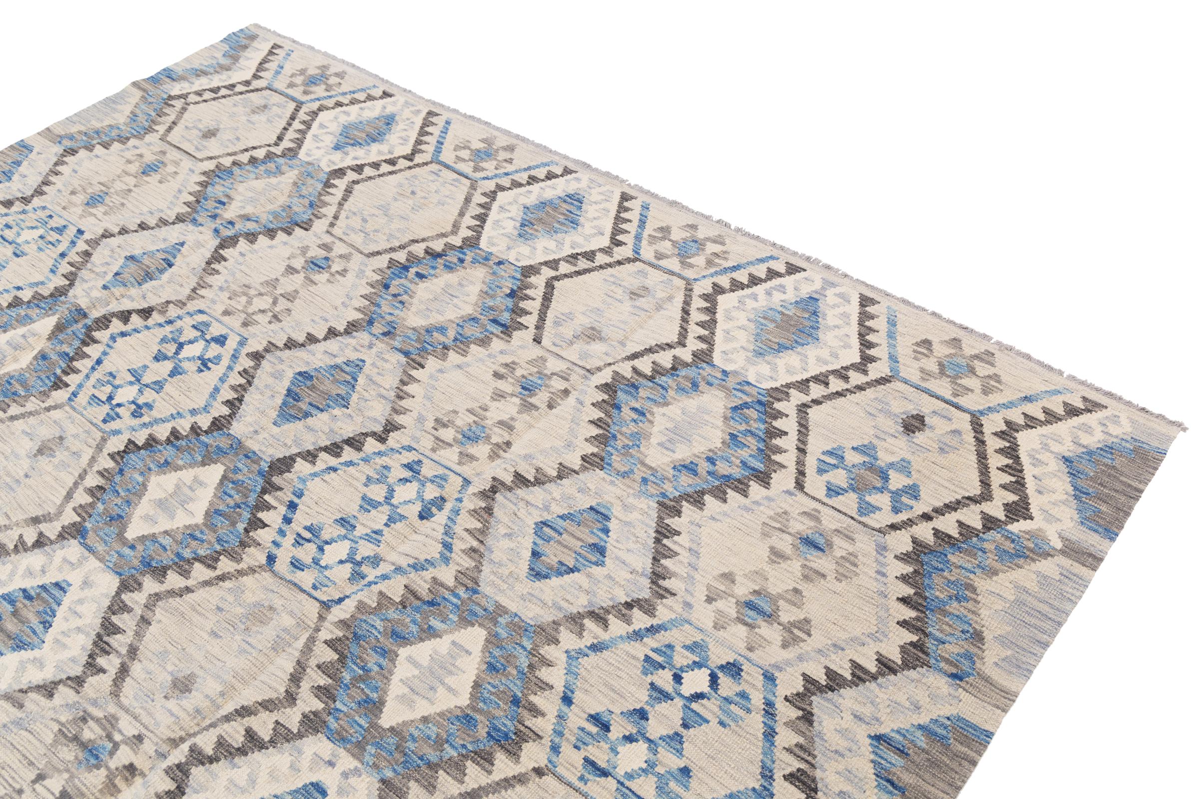 Dette kelim tæppe er meget specielt, fordi det ikke kun er vævet i hånden, men dets uld er også spundet i hånden. Kilim Heritage-kollektionen byder på et højmoderne design i pastelfarver og i kombination med det mest traditionelle kunsthåndværk fra Orienten. Stor værdi og helt overkommelig. Du vil ikke finde et unikt stykke som dette igen.