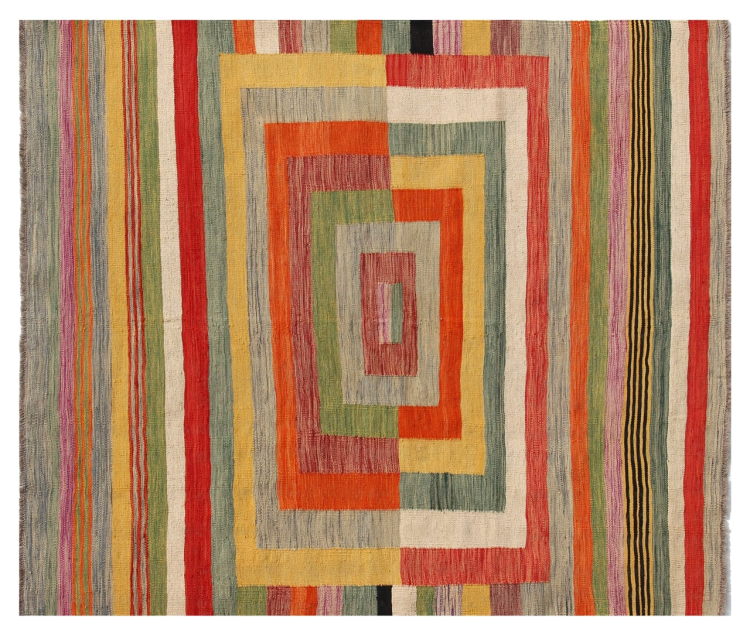 Denne moderne kelim imponerer med sit højkvalitets håndværk, som er baseret på den præcise væveteknik fra orientalske nomader. Det kombinerer århundreder gammel tæppetradition med moderne designpåvirkninger. Naturlig fåreuld giver den en robust, letplejet struktur med en behagelig fornemmelse. Kelimen har et moderne design, der harmonerer med tidens boligtrends såvel som med den klassiske indretningsstil.