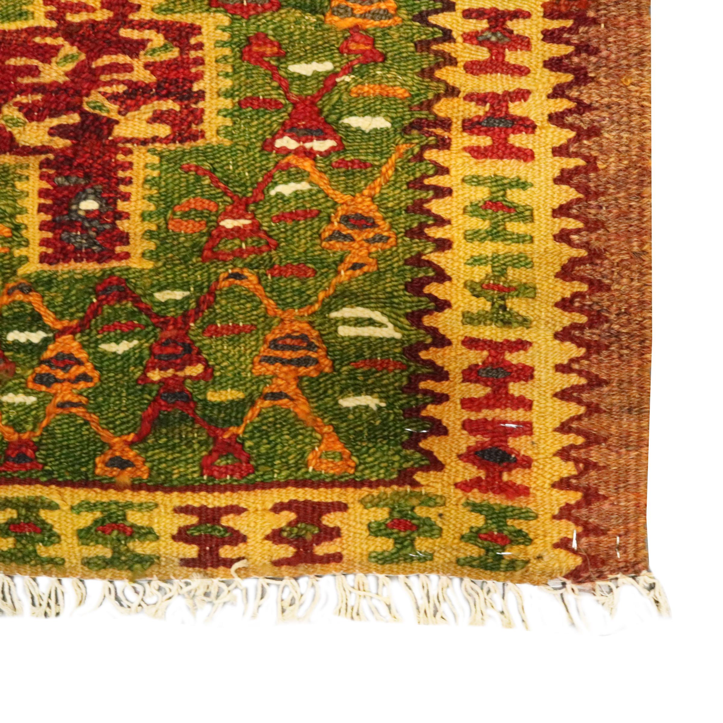 Dette tæppe fremstilles for hånd på væven som en flad væv. Flatweaves er tæpper, der ikke har nogen bunker. Som navnet antyder er disse tæpper vævet og ikke knudede. Dette resulterer i et fladt tæppe med en struktureret overflade. Flade væv er ikke så bløde og for det meste tyndere end knyttede tæpper. På samme tid er de betydeligt mindre komplekse at fremstille og kan normalt designes fra begge sider (for og bag). Deres mønstre er normalt geometriske, hvilket skyldes stoffet.