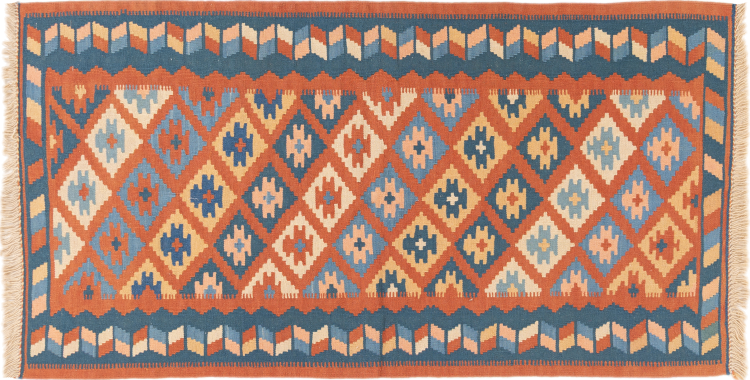 Denne håndvævede kelim fars kombinerer persiske mønstre og ornamenter med traditionen med flade vævninger. En fantastisk og moderne kombination af de mest populære koncepter fra Orienten. Dette skaber et tæppe med en bred vifte af anvendelser. Hvad enten det er som sengetæppe eller som tæppe foran sofaen – en Fars kelim gør det muligt og kan nu findes i de mest kendte indretningsmagasiner. Kilim Fars-tæpper er vævet i hånden i Iran og er derfor blandt kelimer af højeste kvalitet.