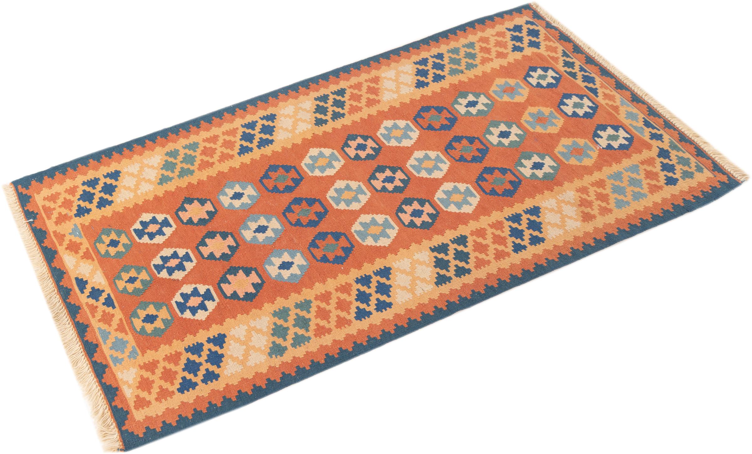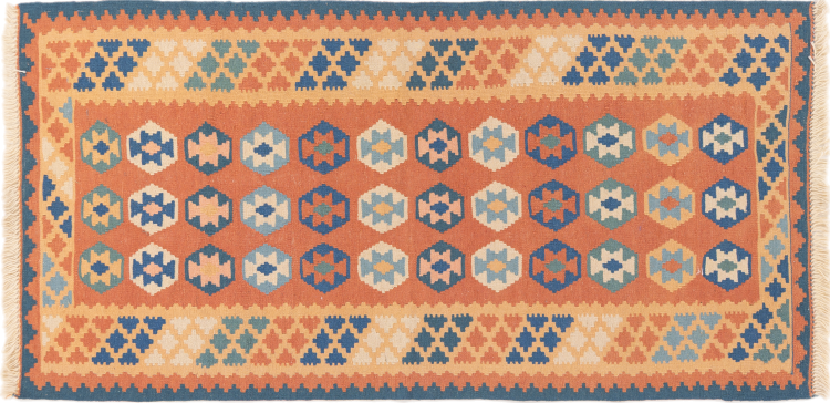 Denne håndvævede kelim fars kombinerer persiske mønstre og ornamenter med traditionen med flade vævninger. En fantastisk og moderne kombination af de mest populære koncepter fra Orienten. Dette skaber et tæppe med en bred vifte af anvendelser. Hvad enten det er som sengetæppe eller som tæppe foran sofaen – en Fars kelim gør det muligt og kan nu findes i de mest kendte indretningsmagasiner. Kilim Fars-tæpper er vævet i hånden i Iran og er derfor blandt kelimer af højeste kvalitet.
