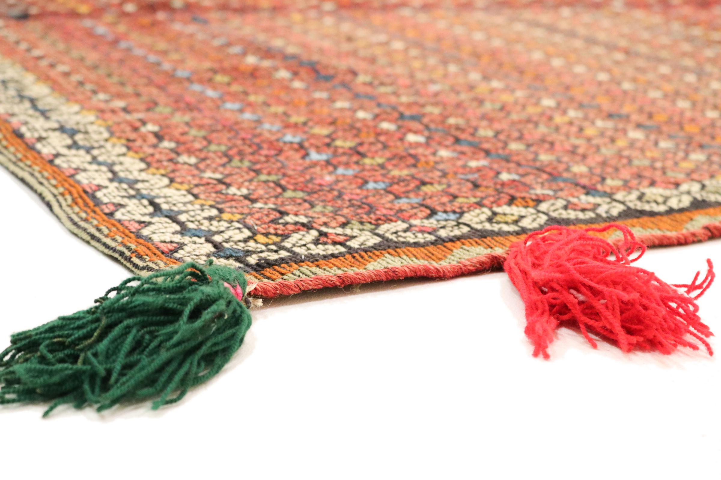Denne håndvævede kelim fars kombinerer persiske mønstre og ornamenter med traditionen med flade vævninger. En fantastisk og moderne kombination af de mest populære koncepter fra Orienten. Dette skaber et tæppe med en bred vifte af anvendelser. Hvad enten det er som sengetæppe eller som tæppe foran sofaen – en Fars kelim gør det muligt og kan nu findes i de mest kendte indretningsmagasiner. Kilim Fars-tæpper er vævet i hånden i Iran og er derfor blandt kelimer af højeste kvalitet.