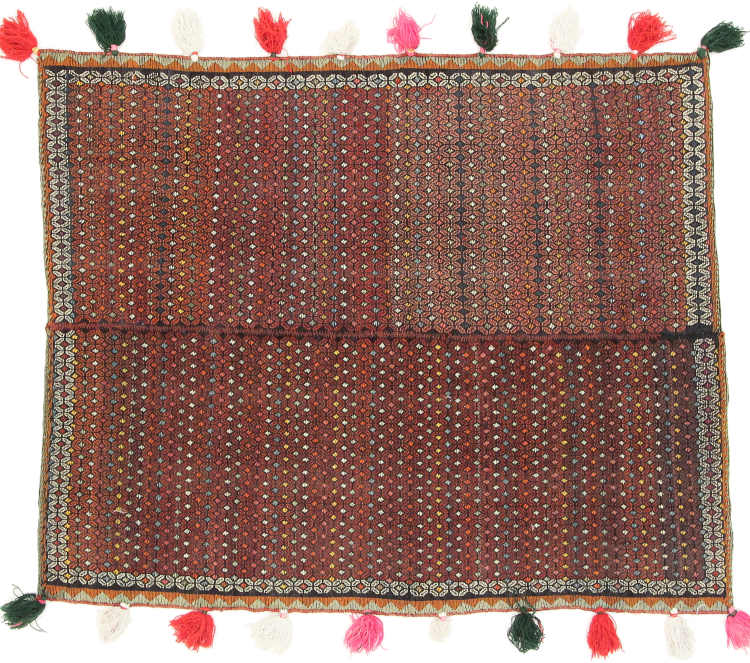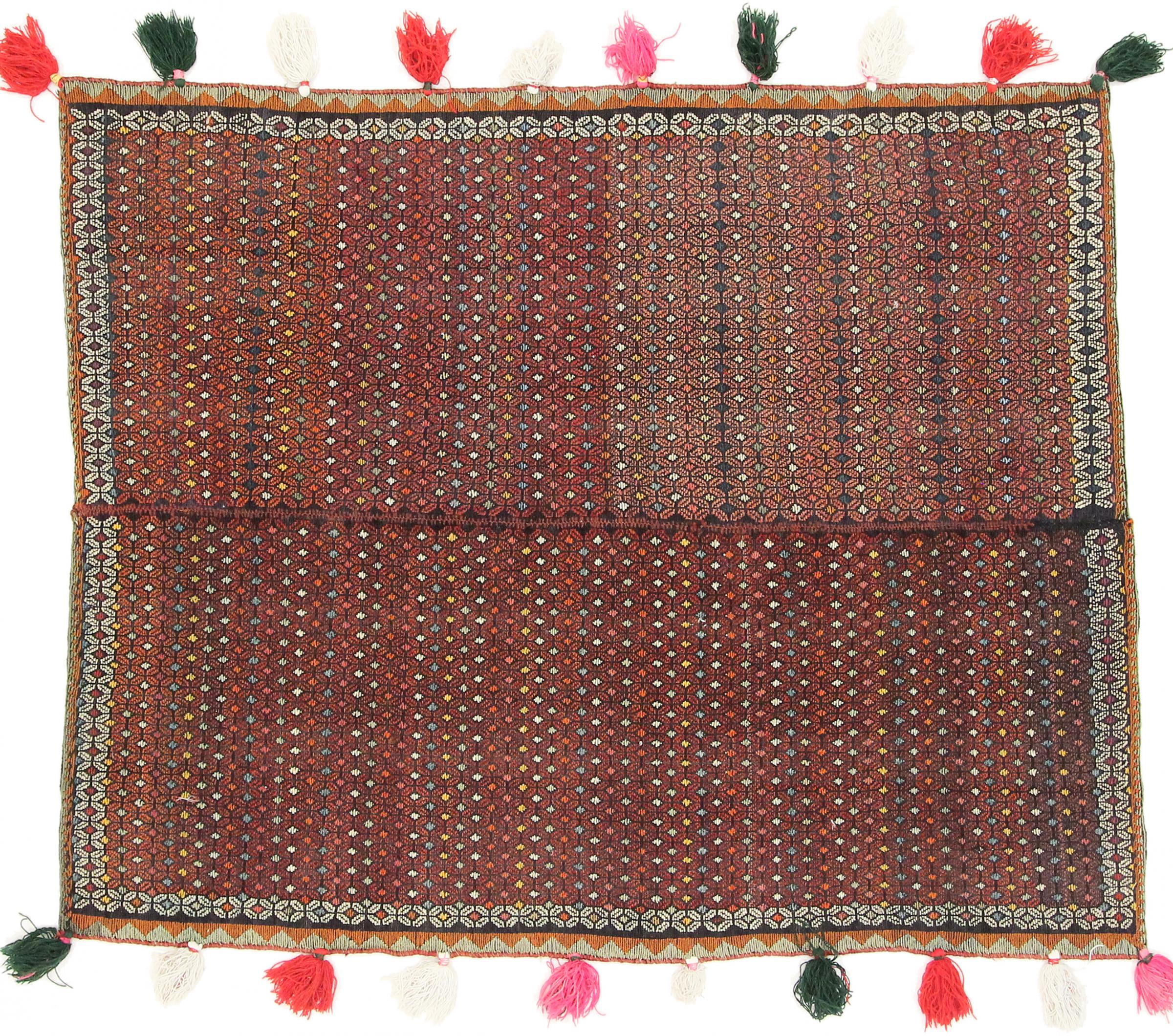 Dette tæppe fremstilles for hånd på væven som en flad væv. Flatweaves er tæpper, der ikke har nogen bunker. Som navnet antyder er disse tæpper vævet og ikke knudede. Dette resulterer i et fladt tæppe med en struktureret overflade. Flade væv er ikke så bløde og for det meste tyndere end knyttede tæpper. På samme tid er de betydeligt mindre komplekse at fremstille og kan normalt designes fra begge sider (for og bag). Deres mønstre er normalt geometriske, hvilket skyldes stoffet.