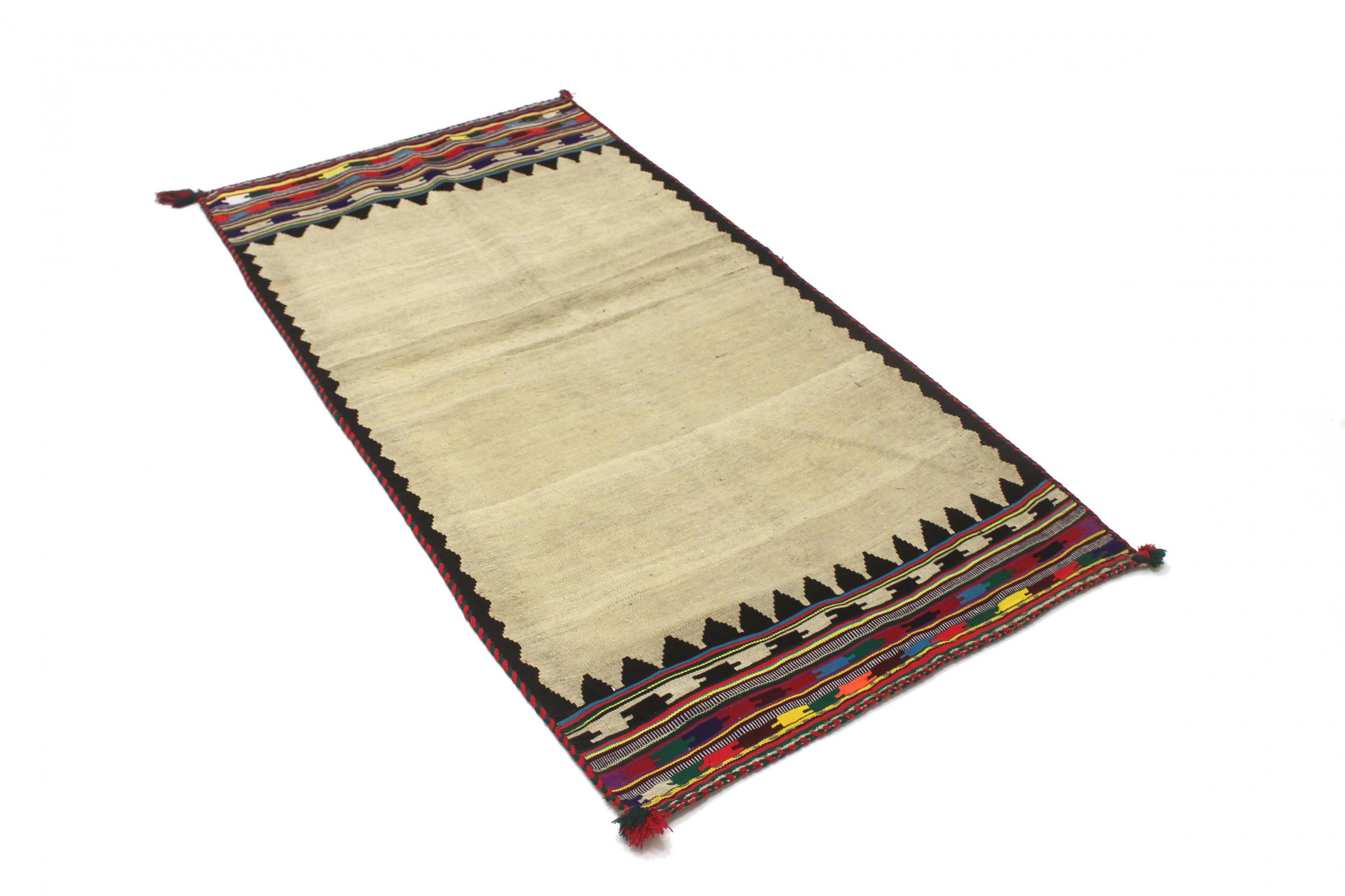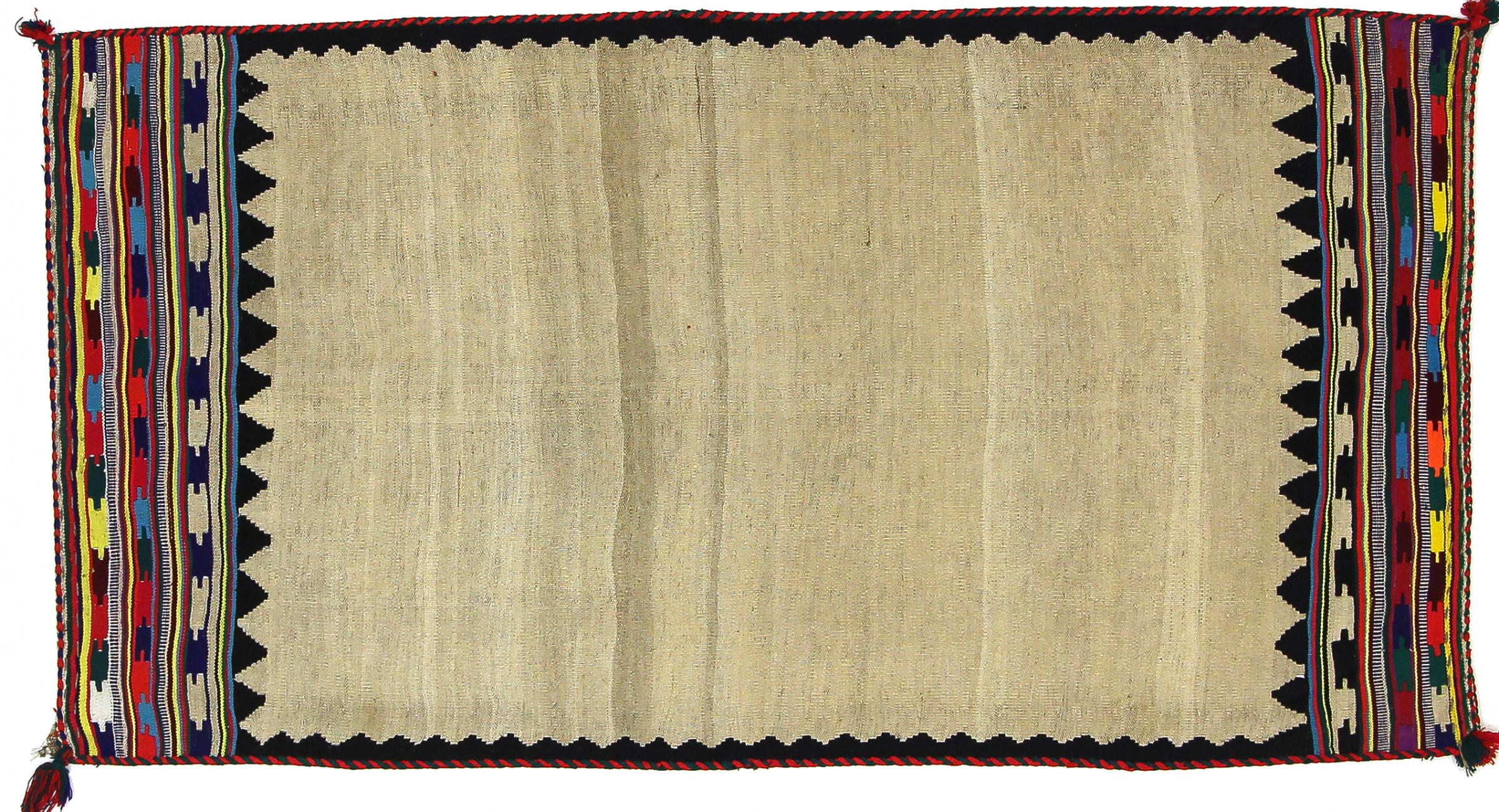 Dette tæppe fremstilles for hånd på væven som en flad væv. Flatweaves er tæpper, der ikke har nogen bunker. Som navnet antyder er disse tæpper vævet og ikke knudede. Dette resulterer i et fladt tæppe med en struktureret overflade. Flade væv er ikke så bløde og for det meste tyndere end knyttede tæpper. På samme tid er de betydeligt mindre komplekse at fremstille og kan normalt designes fra begge sider (for og bag). Deres mønstre er normalt geometriske, hvilket skyldes stoffet.