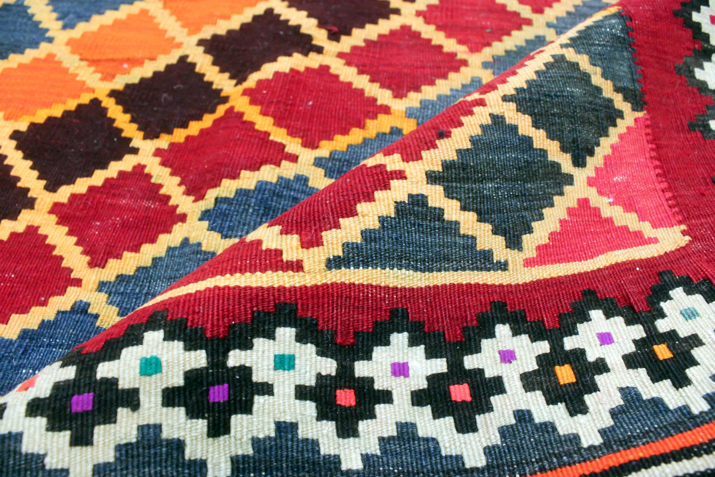 Denne håndvævede kelim fars kombinerer persiske mønstre og ornamenter med traditionen med flade vævninger. En fantastisk og moderne kombination af de mest populære koncepter fra Orienten. Dette skaber et tæppe med en bred vifte af anvendelser. Hvad enten det er som sengetæppe eller som tæppe foran sofaen – en Fars kelim gør det muligt og kan nu findes i de mest kendte indretningsmagasiner. Kilim Fars-tæpper er vævet i hånden i Iran og er derfor blandt kelimer af højeste kvalitet.