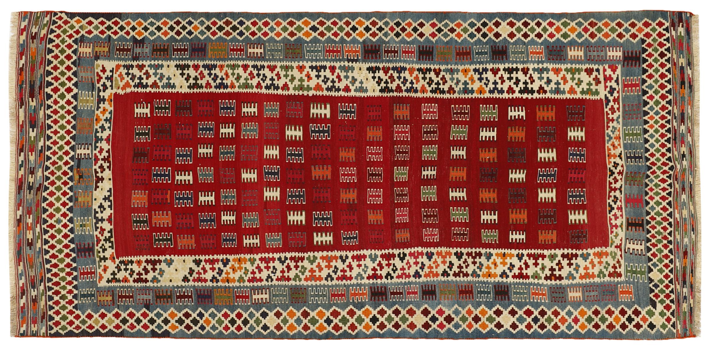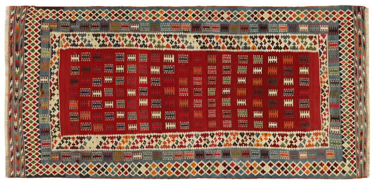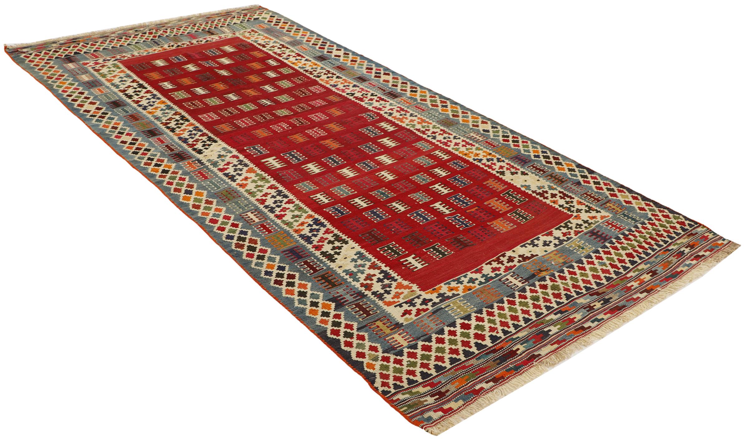 Denne håndvævede kelim fars kombinerer persiske mønstre og ornamenter med traditionen med flade vævninger. En fantastisk og moderne kombination af de mest populære koncepter fra Orienten. Dette skaber et tæppe med en bred vifte af anvendelser. Hvad enten det er som sengetæppe eller som tæppe foran sofaen – en Fars kelim gør det muligt og kan nu findes i de mest kendte indretningsmagasiner. Kilim Fars-tæpper er vævet i hånden i Iran og er derfor blandt kelimer af højeste kvalitet.