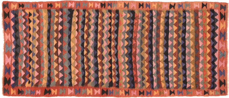 Dette tæppe fremstilles for hånd på væven som en flad væv. Flatweaves er tæpper, der ikke har nogen bunker. Som navnet antyder er disse tæpper vævet og ikke knudede. Dette resulterer i et fladt tæppe med en struktureret overflade. Flade væv er ikke så bløde og for det meste tyndere end knyttede tæpper. På samme tid er de betydeligt mindre komplekse at fremstille og kan normalt designes fra begge sider (for og bag). Deres mønstre er normalt geometriske, hvilket skyldes stoffet.