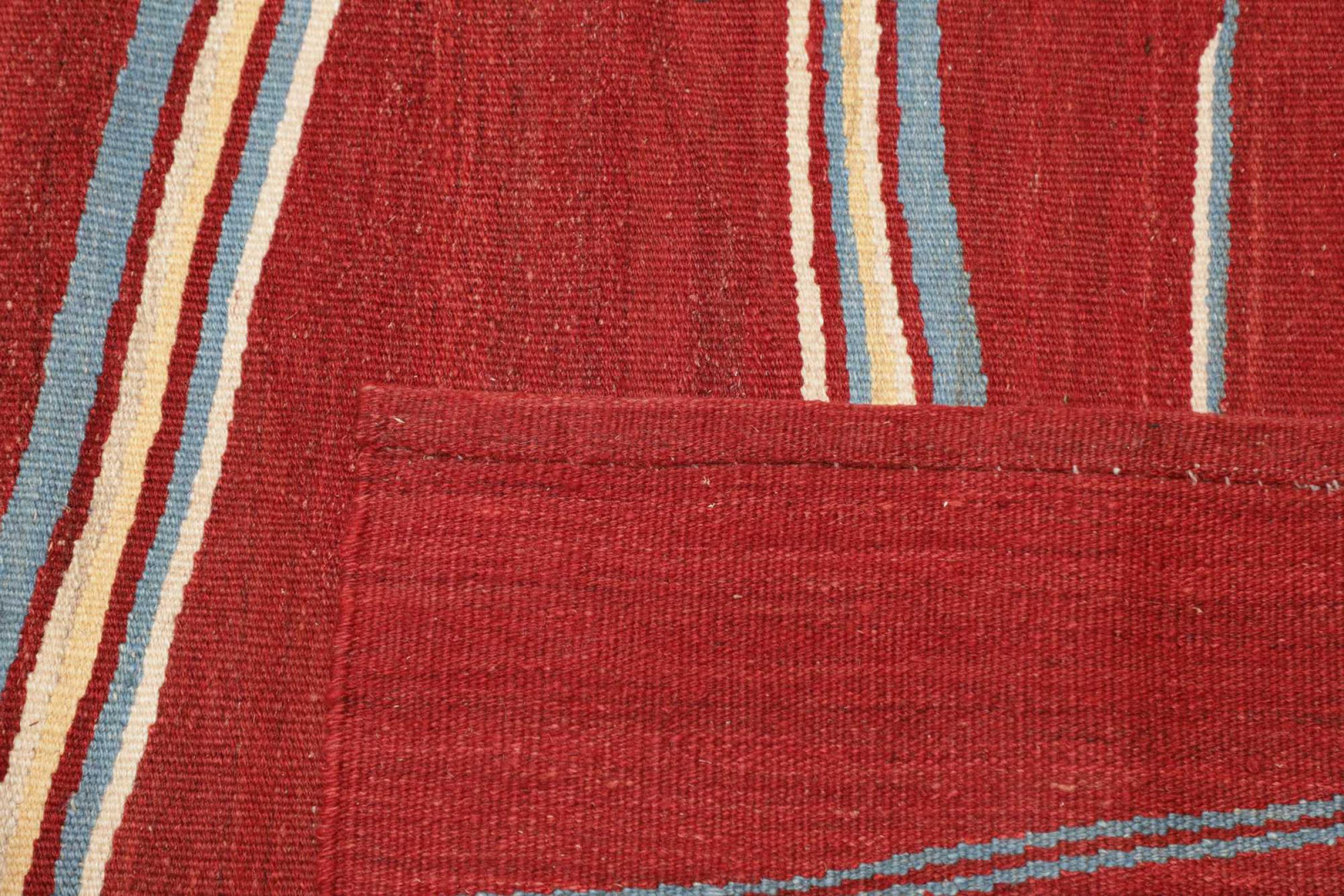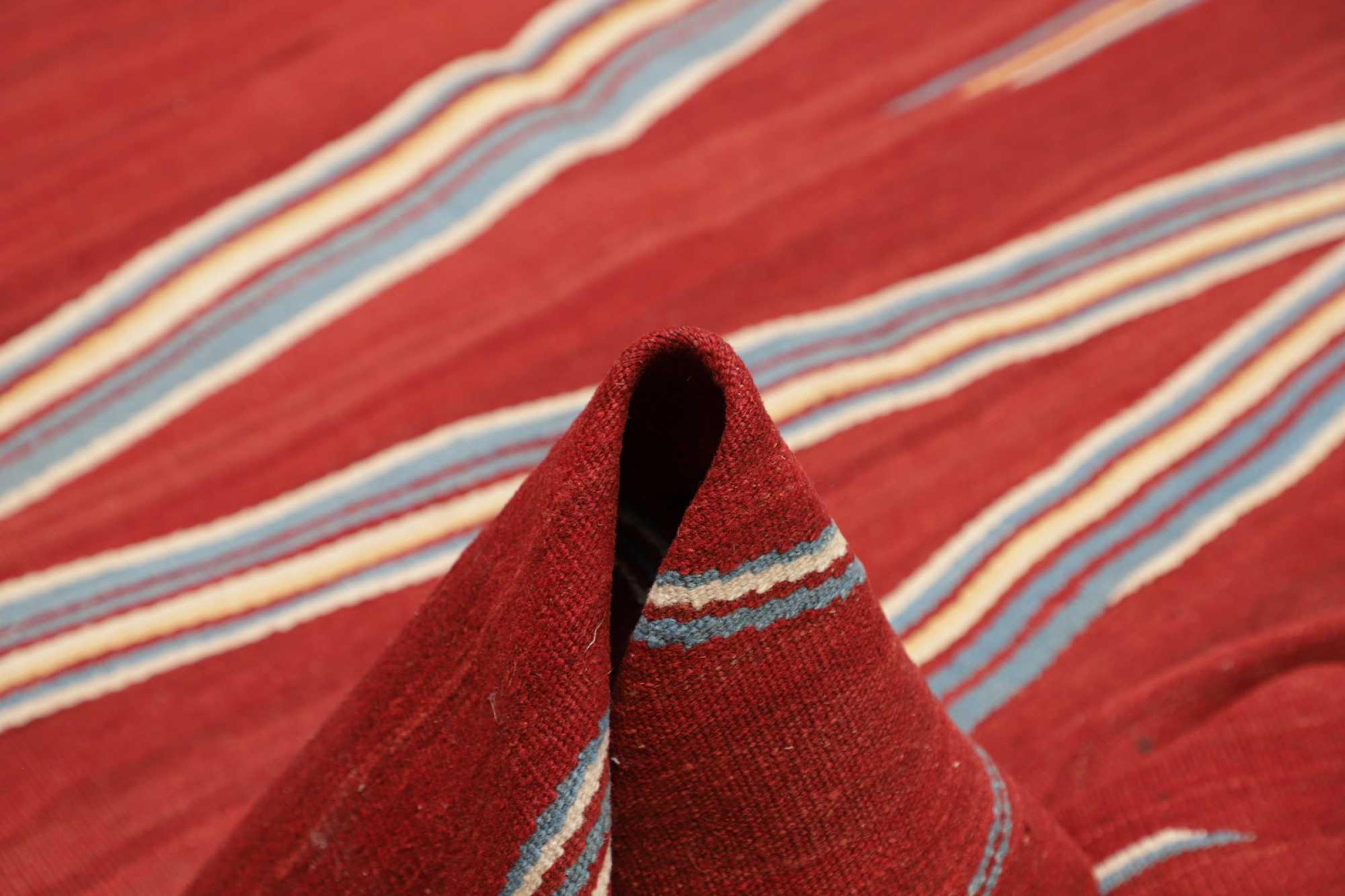 Dette tæppe fremstilles for hånd på væven som en flad væv. Flatweaves er tæpper, der ikke har nogen bunker. Som navnet antyder er disse tæpper vævet og ikke knudede. Dette resulterer i et fladt tæppe med en struktureret overflade. Flade væv er ikke så bløde og for det meste tyndere end knyttede tæpper. På samme tid er de betydeligt mindre komplekse at fremstille og kan normalt designes fra begge sider (for og bag). Deres mønstre er normalt geometriske, hvilket skyldes stoffet.