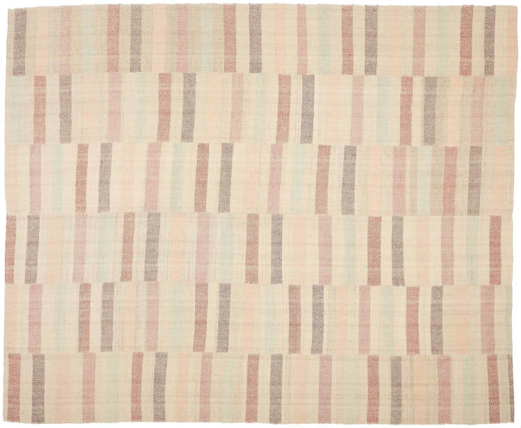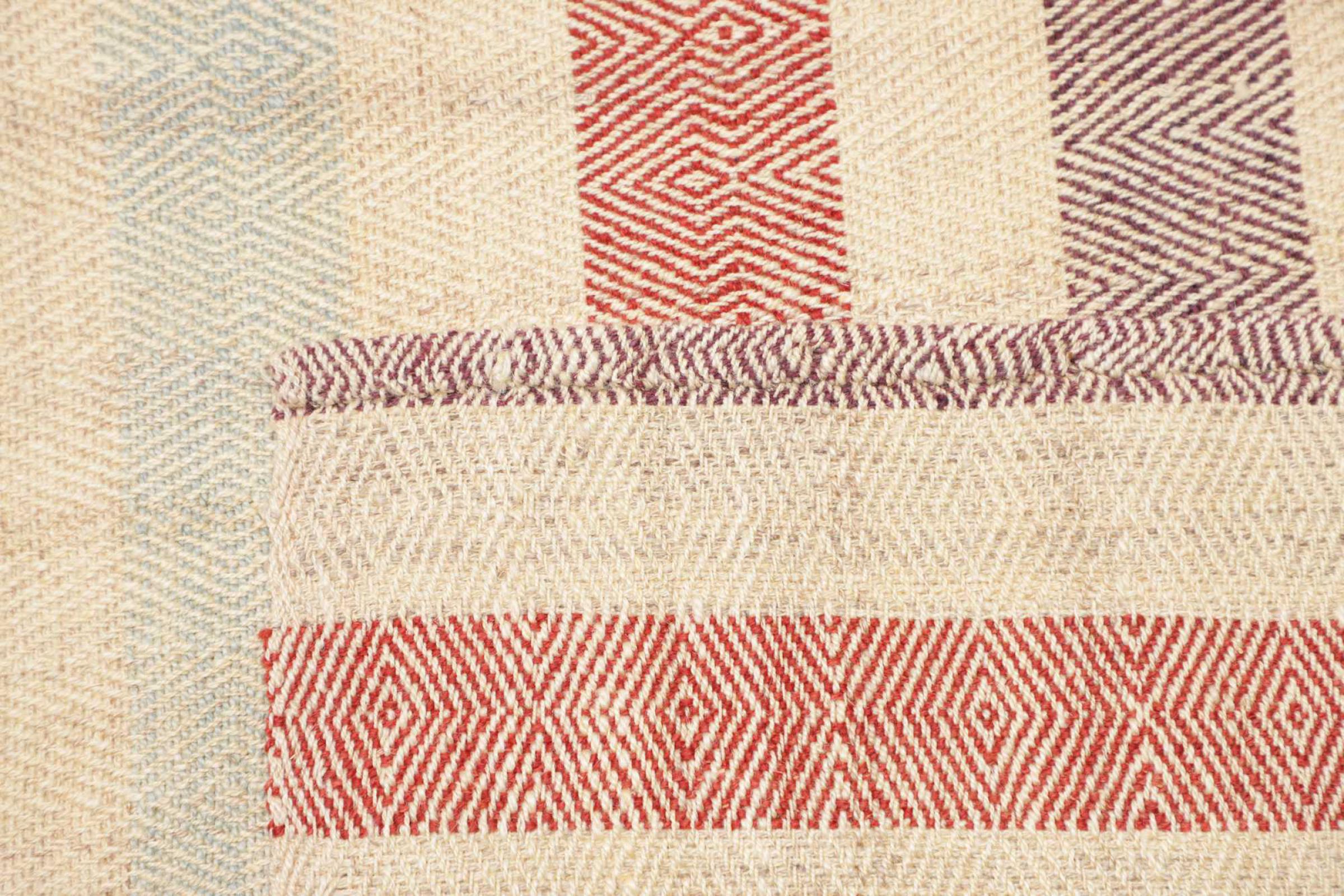 Dette tæppe fremstilles for hånd på væven som en flad væv. Flatweaves er tæpper, der ikke har nogen bunker. Som navnet antyder er disse tæpper vævet og ikke knudede. Dette resulterer i et fladt tæppe med en struktureret overflade. Flade væv er ikke så bløde og for det meste tyndere end knyttede tæpper. På samme tid er de betydeligt mindre komplekse at fremstille og kan normalt designes fra begge sider (for og bag). Deres mønstre er normalt geometriske, hvilket skyldes stoffet.