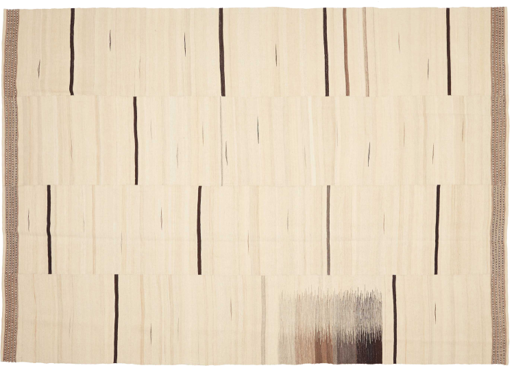 Dette tæppe fremstilles for hånd på væven som en flad væv. Flatweaves er tæpper, der ikke har nogen bunker. Som navnet antyder er disse tæpper vævet og ikke knudede. Dette resulterer i et fladt tæppe med en struktureret overflade. Flade væv er ikke så bløde og for det meste tyndere end knyttede tæpper. På samme tid er de betydeligt mindre komplekse at fremstille og kan normalt designes fra begge sider (for og bag). Deres mønstre er normalt geometriske, hvilket skyldes stoffet.