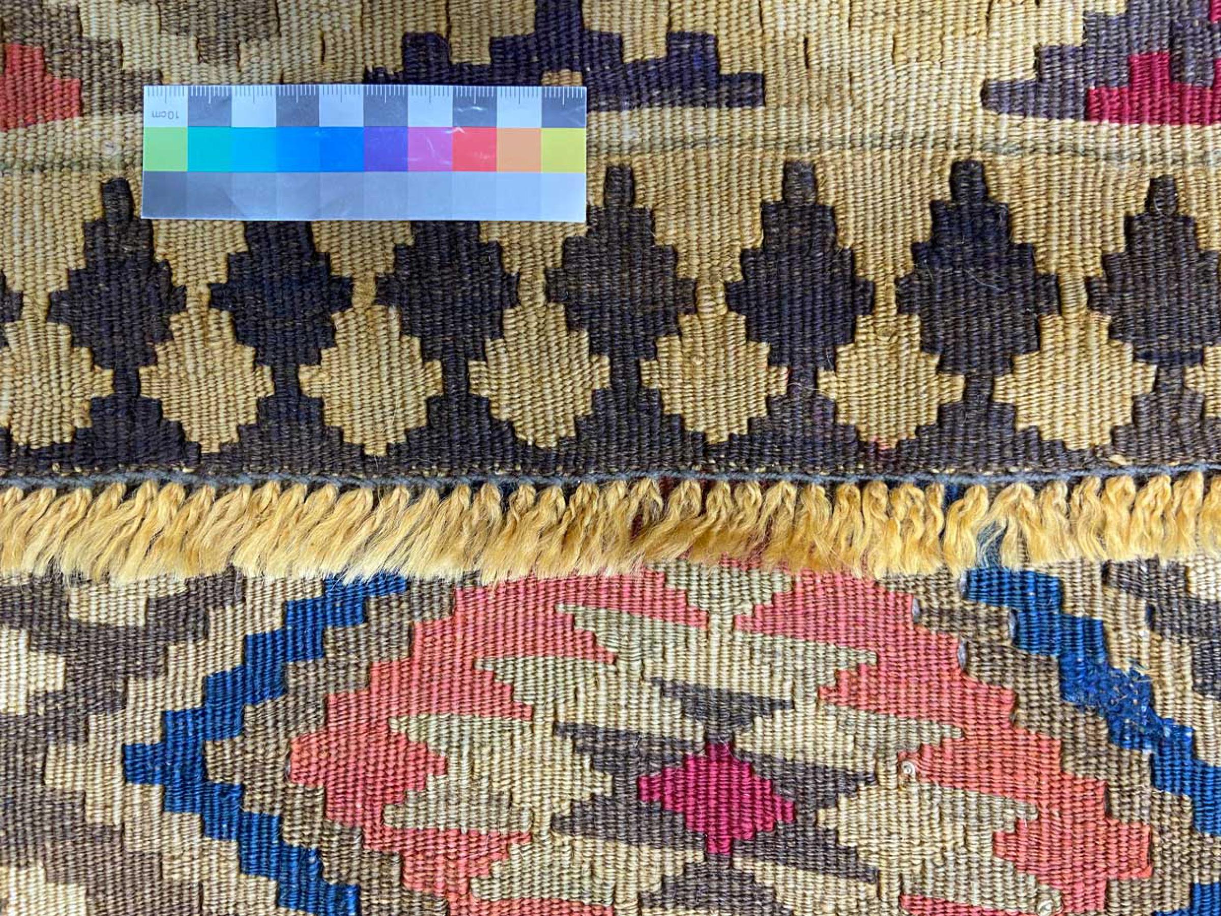 Dette tæppe fremstilles for hånd på væven som en flad væv. Flatweaves er tæpper, der ikke har nogen bunker. Som navnet antyder er disse tæpper vævet og ikke knudede. Dette resulterer i et fladt tæppe med en struktureret overflade. Flade væv er ikke så bløde og for det meste tyndere end knyttede tæpper. På samme tid er de betydeligt mindre komplekse at fremstille og kan normalt designes fra begge sider (for og bag). Deres mønstre er normalt geometriske, hvilket skyldes stoffet.