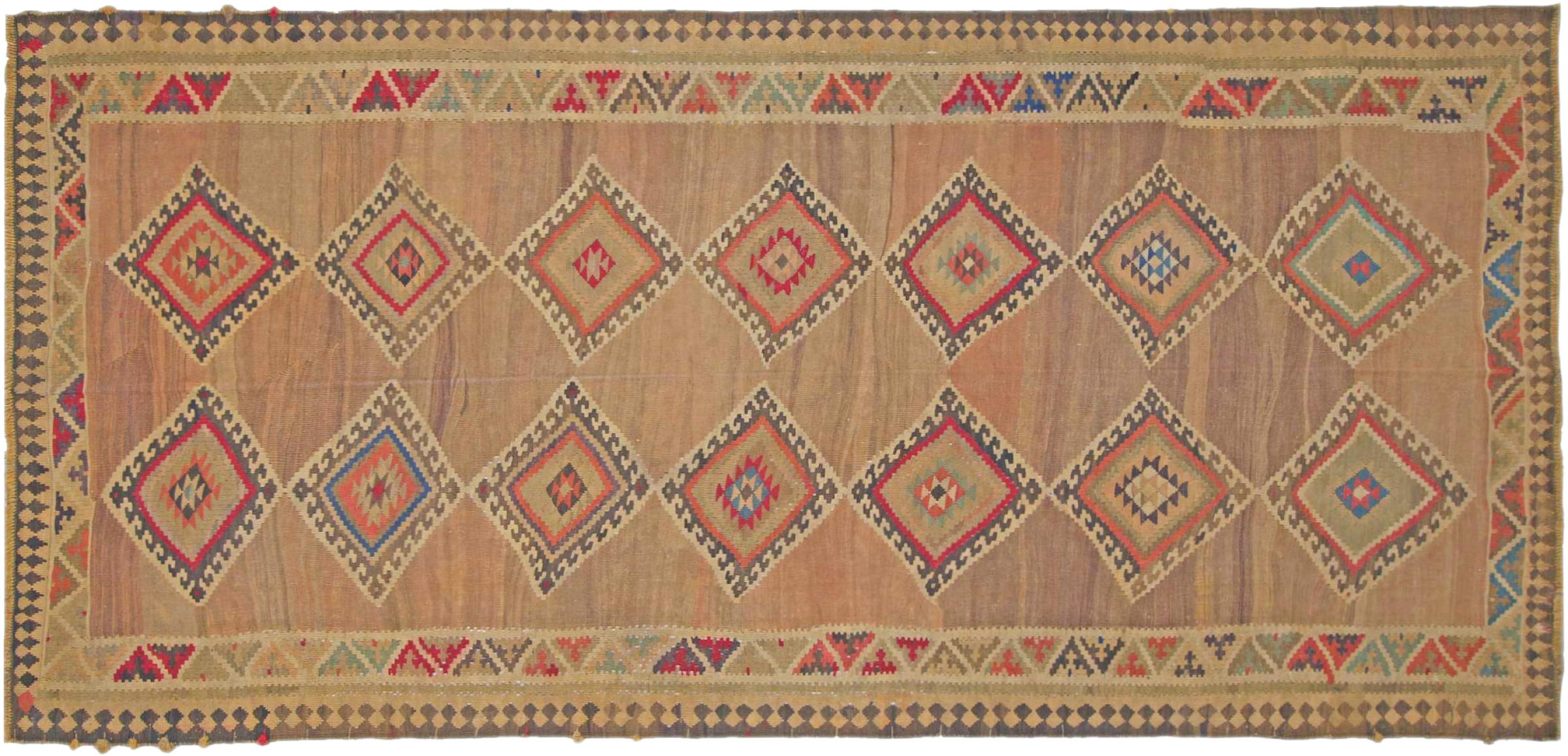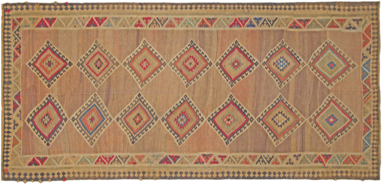 Denne håndvævede kelim fars kombinerer persiske mønstre og ornamenter med traditionen med flade vævninger. En fantastisk og moderne kombination af de mest populære koncepter fra Orienten. Dette skaber et tæppe med en bred vifte af anvendelser. Hvad enten det er som sengetæppe eller som tæppe foran sofaen – en Fars kelim gør det muligt og kan nu findes i de mest kendte indretningsmagasiner. Kilim Fars-tæpper er vævet i hånden i Iran og er derfor blandt kelimer af højeste kvalitet.