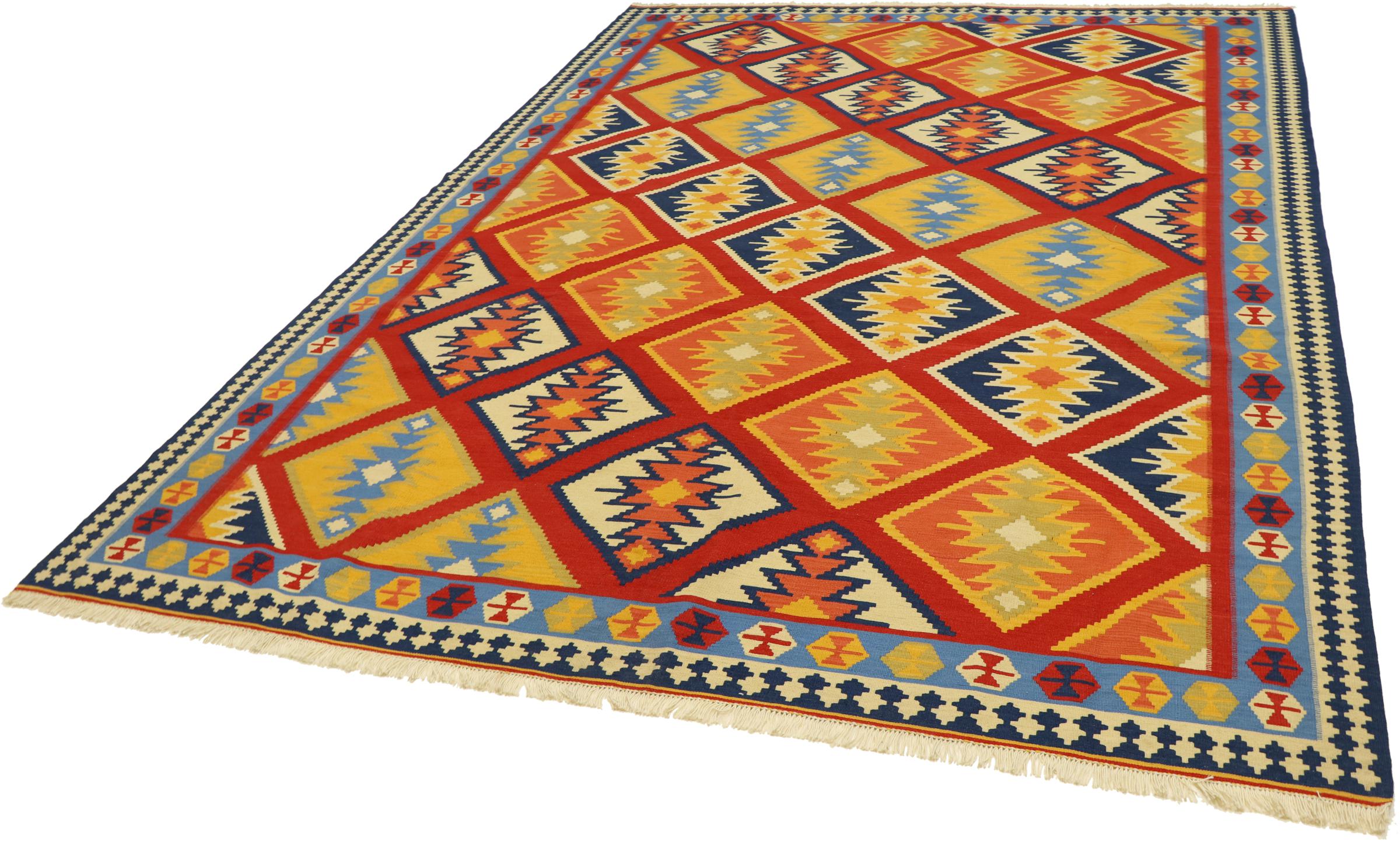 Denne håndvævede kelim fars kombinerer persiske mønstre og ornamenter med traditionen med flade vævninger. En fantastisk og moderne kombination af de mest populære koncepter fra Orienten. Dette skaber et tæppe med en bred vifte af anvendelser. Hvad enten det er som sengetæppe eller som tæppe foran sofaen – en Fars kelim gør det muligt og kan nu findes i de mest kendte indretningsmagasiner. Kilim Fars-tæpper er vævet i hånden i Iran og er derfor blandt kelimer af højeste kvalitet.