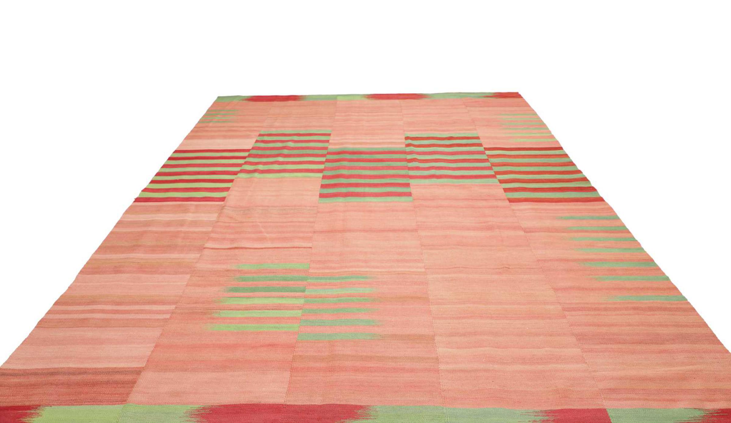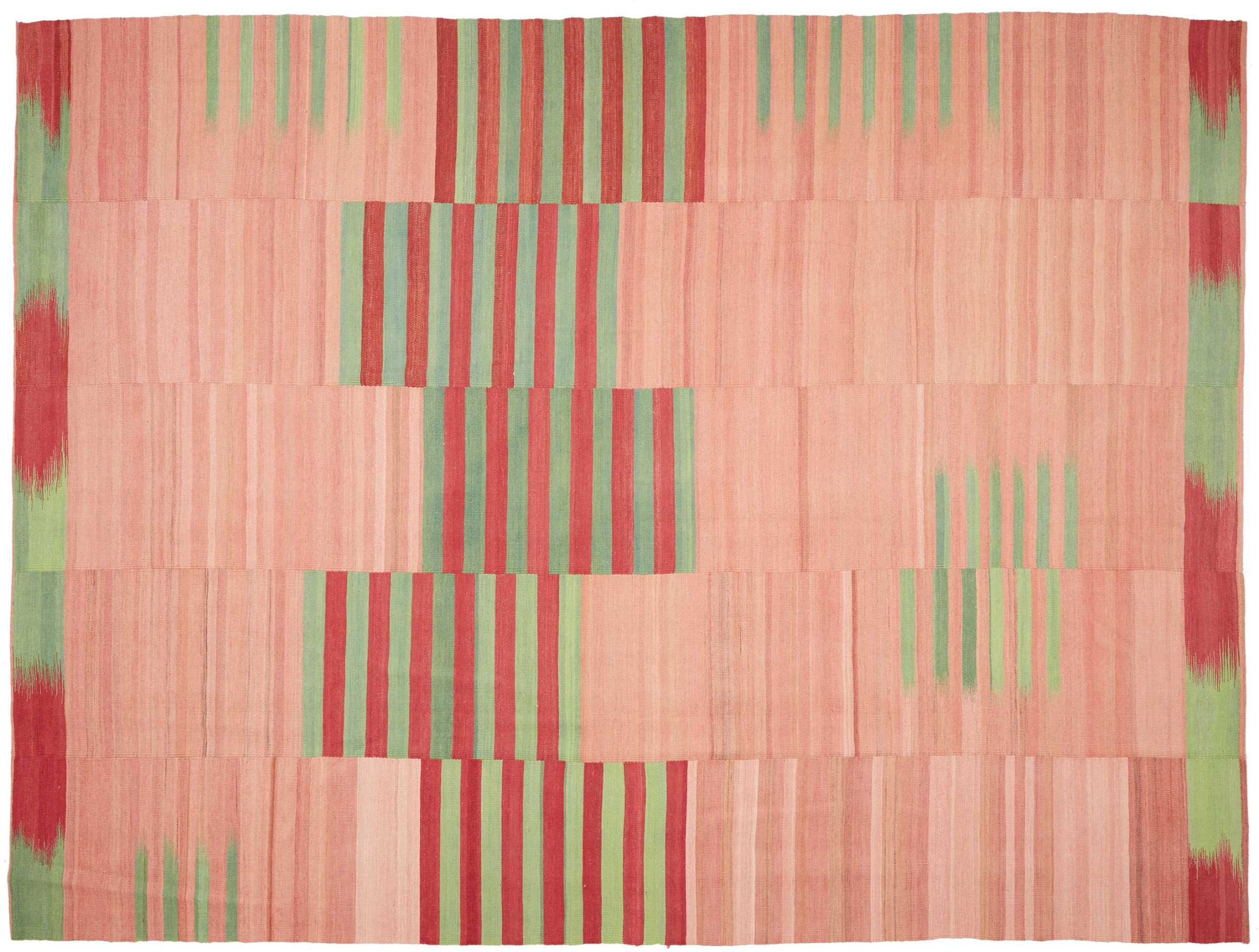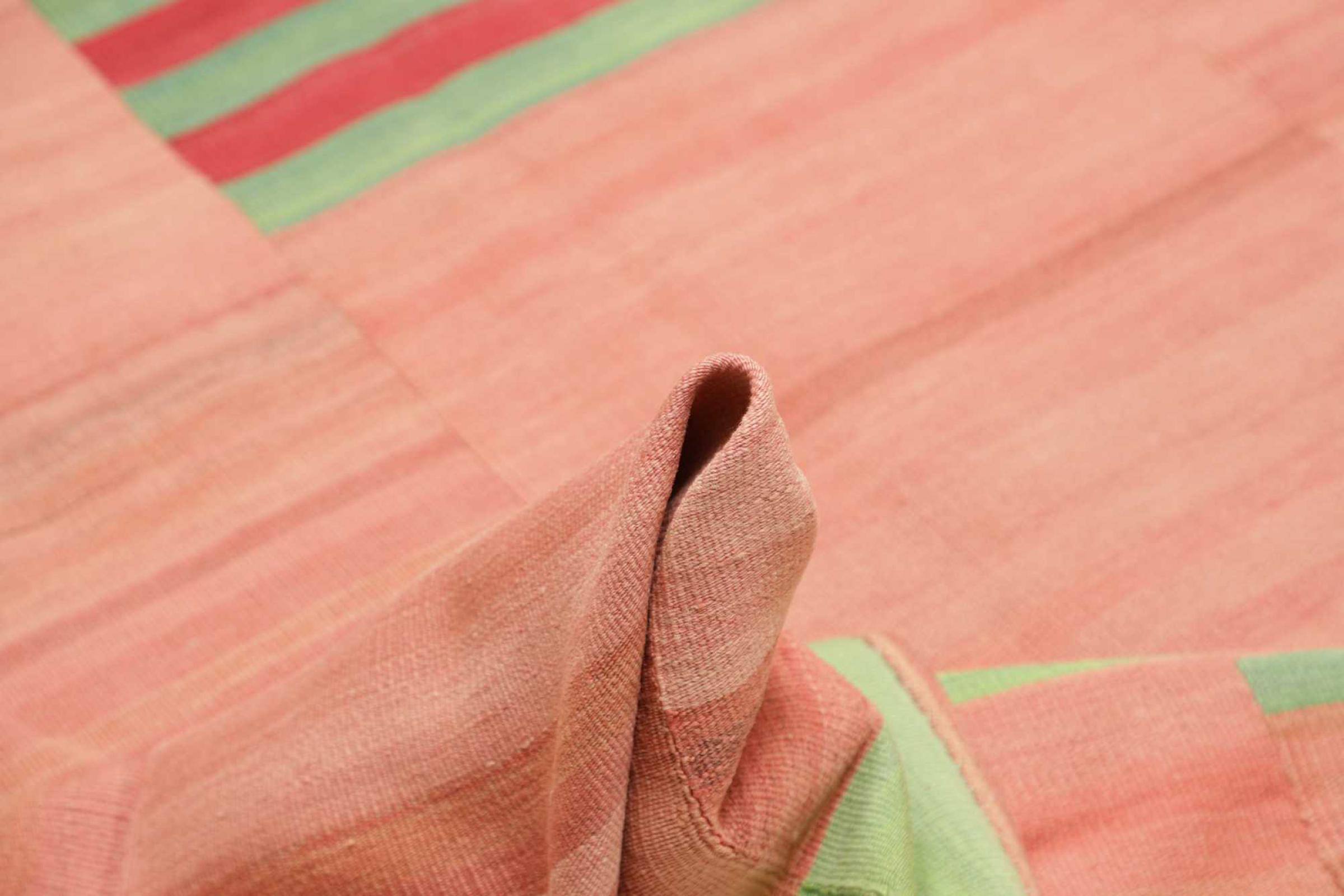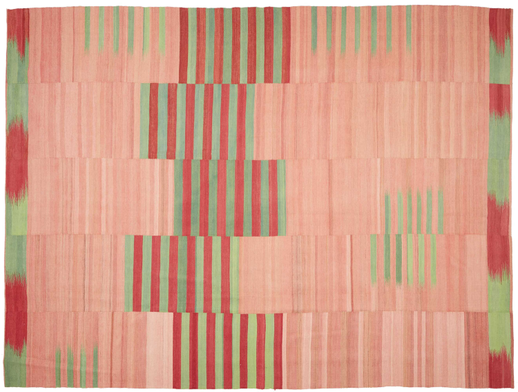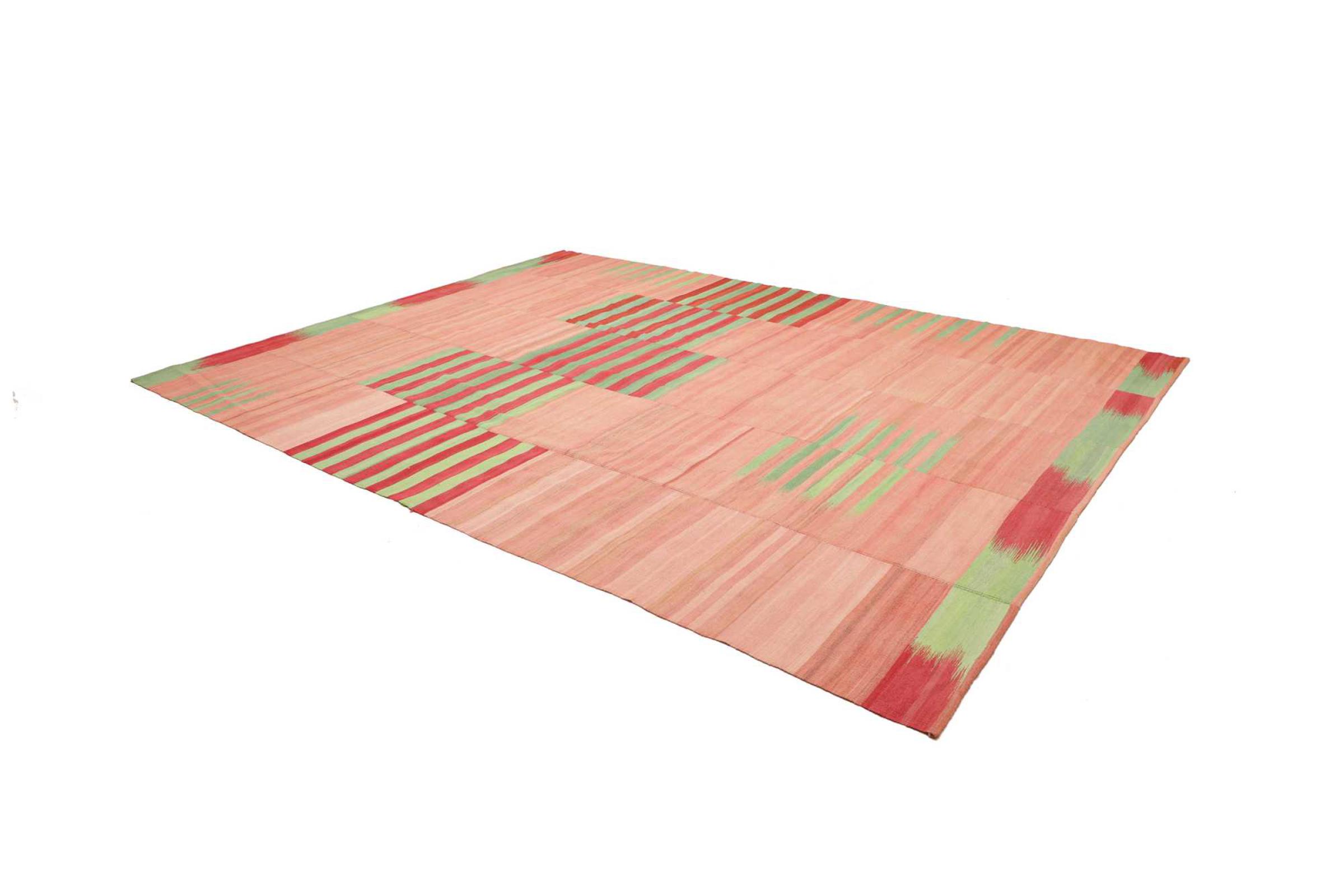 Dette tæppe fremstilles for hånd på væven som en flad væv. Flatweaves er tæpper, der ikke har nogen bunker. Som navnet antyder er disse tæpper vævet og ikke knudede. Dette resulterer i et fladt tæppe med en struktureret overflade. Flade væv er ikke så bløde og for det meste tyndere end knyttede tæpper. På samme tid er de betydeligt mindre komplekse at fremstille og kan normalt designes fra begge sider (for og bag). Deres mønstre er normalt geometriske, hvilket skyldes stoffet.